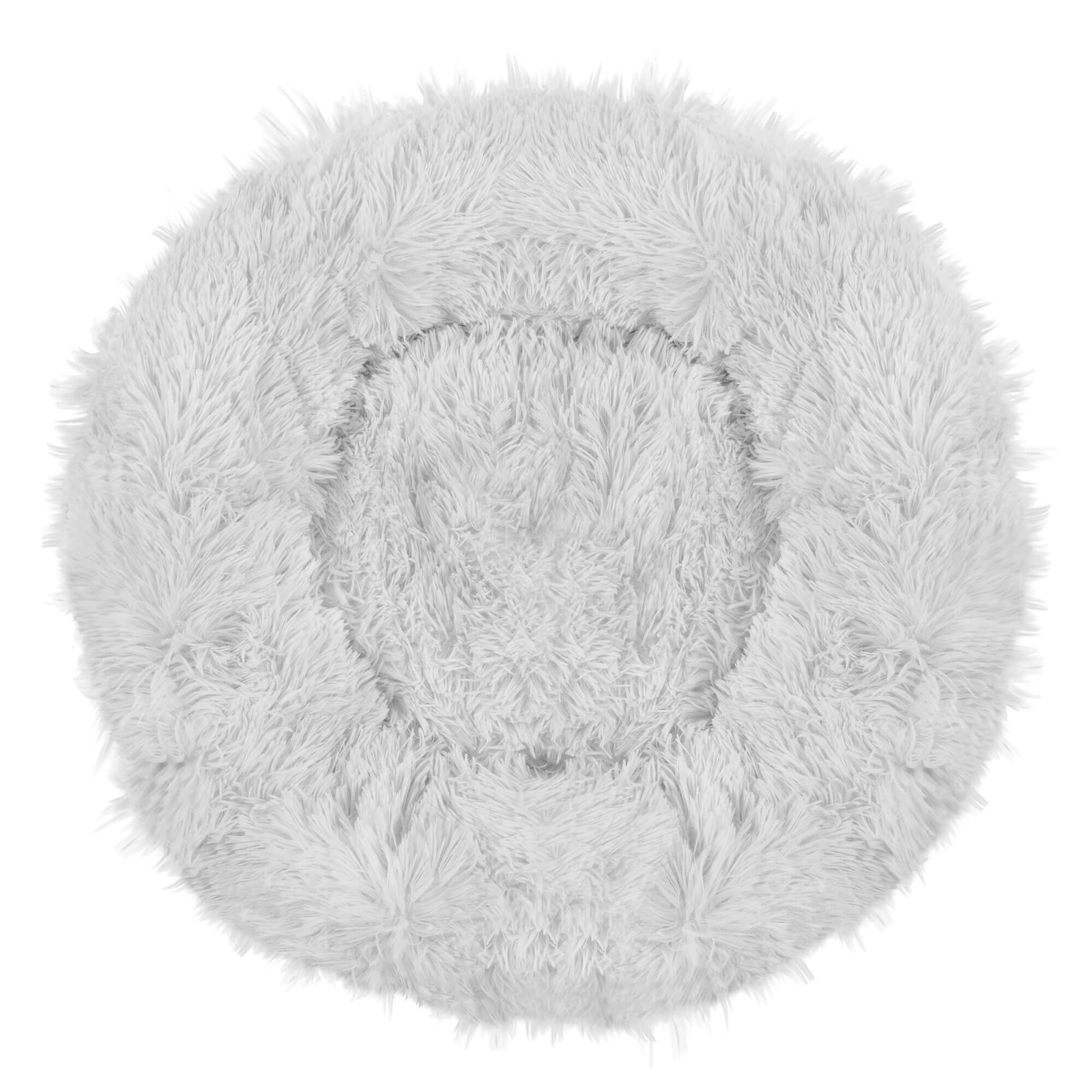 Material: poliester Culoare: gri Forma: rotunda Diametru: 120 cm Potrivit pentru catei/pisici cu talie: mai mica de 40 kg Baza antiderapanta. Acest pat pufos pentru catei...