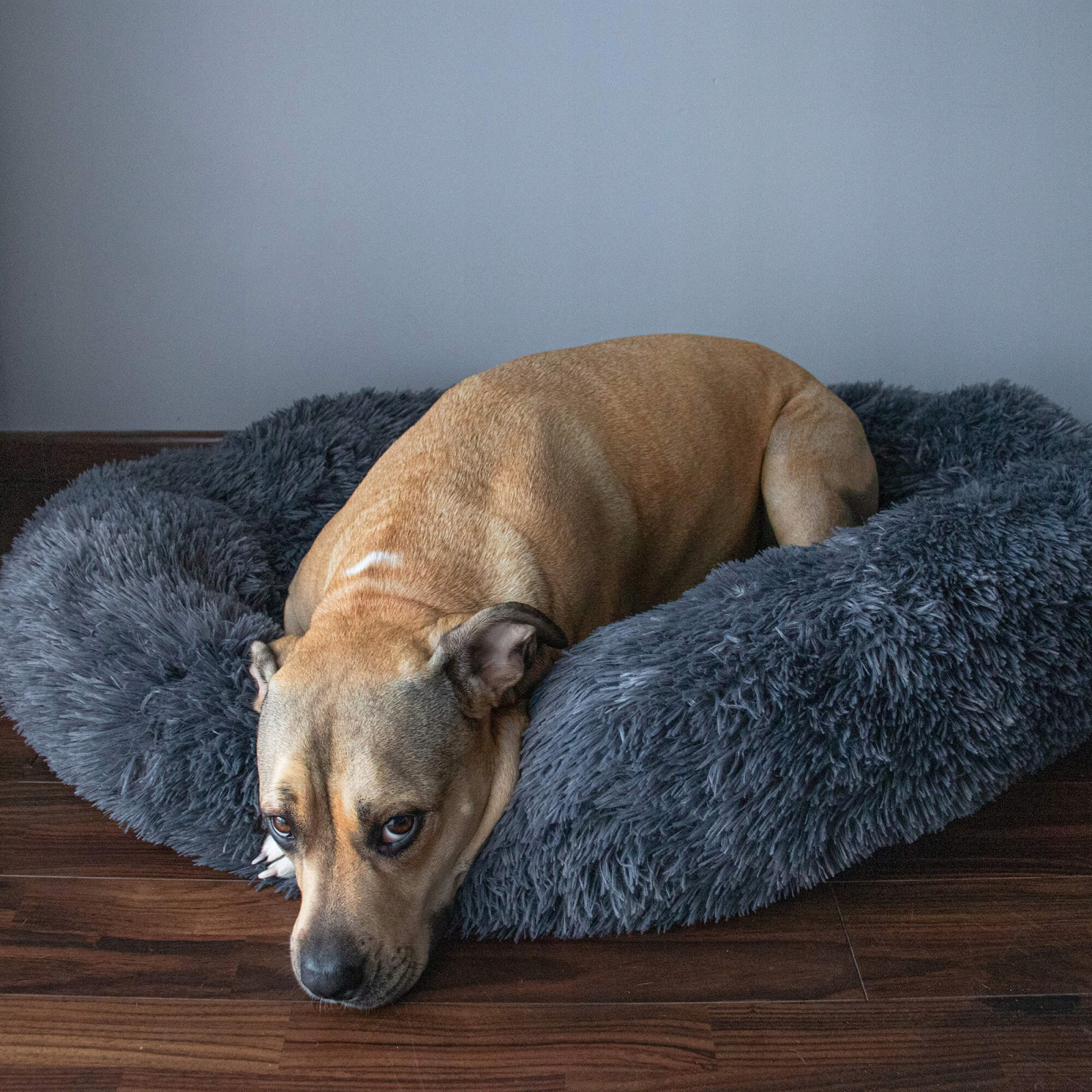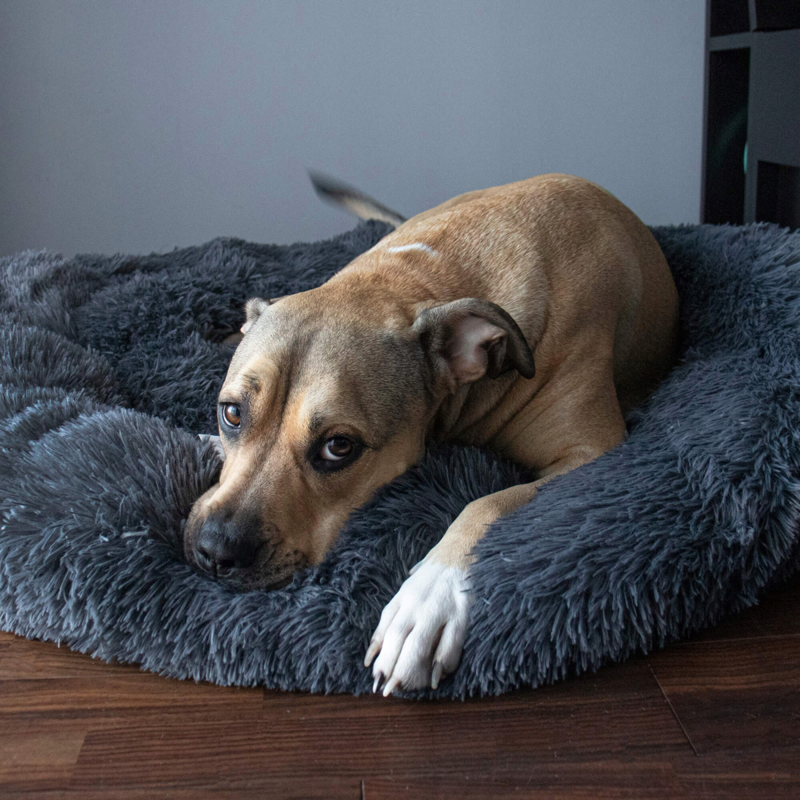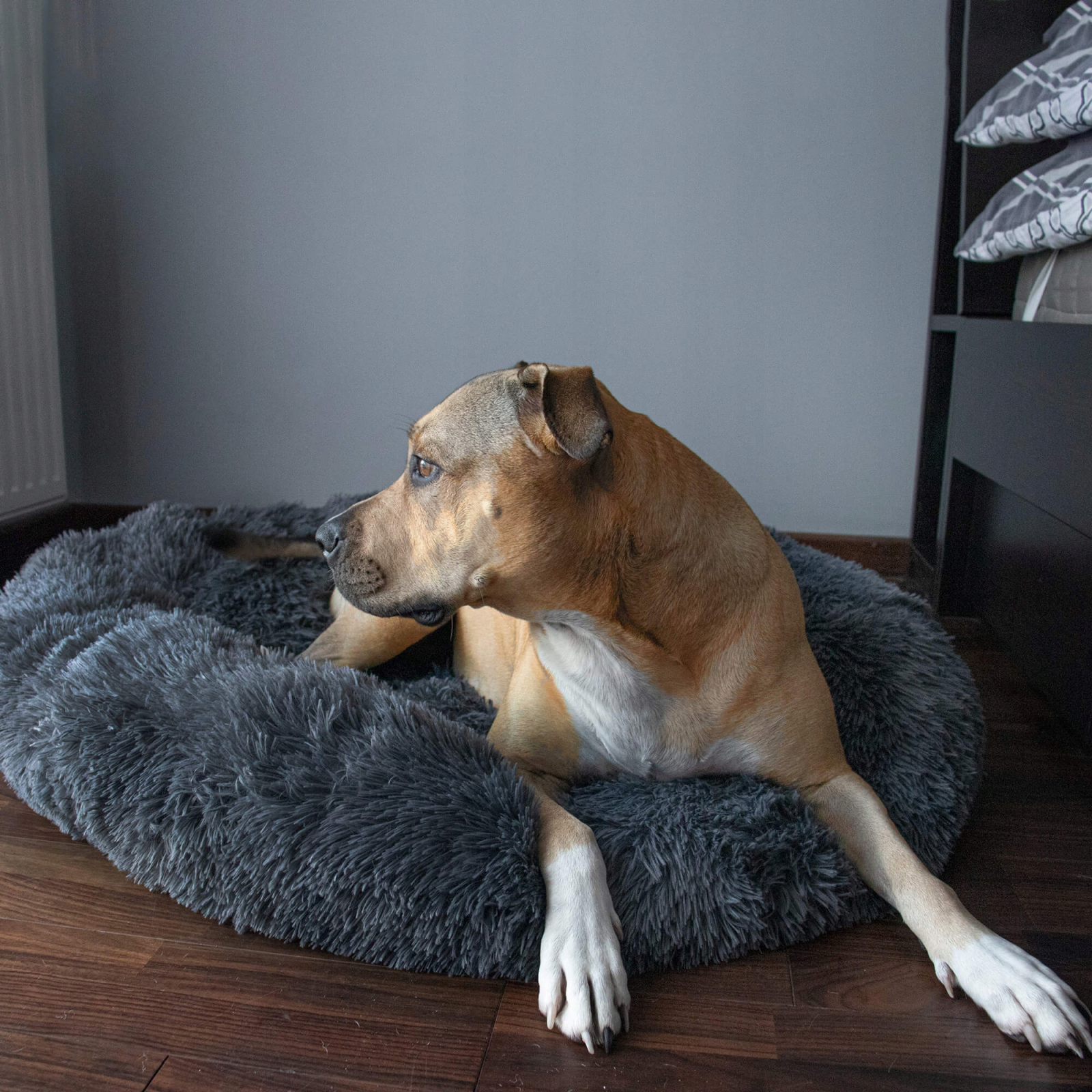 Material: poliester Culoare: gri inchis Forma: rotunda Diametru: 80 cm Potrivit pentru catei/pisici cu talie: mai mica de 17 kg Baza antiderapanta Acest pat pufos...