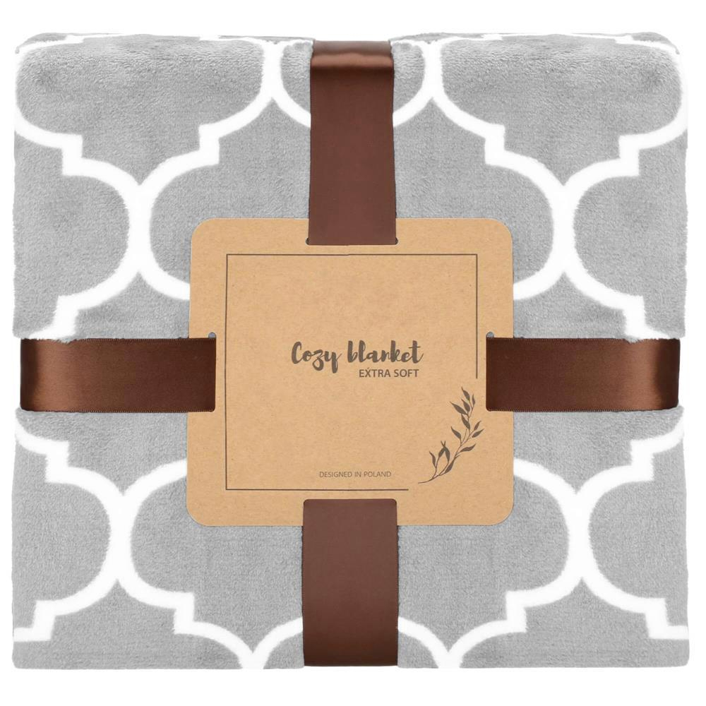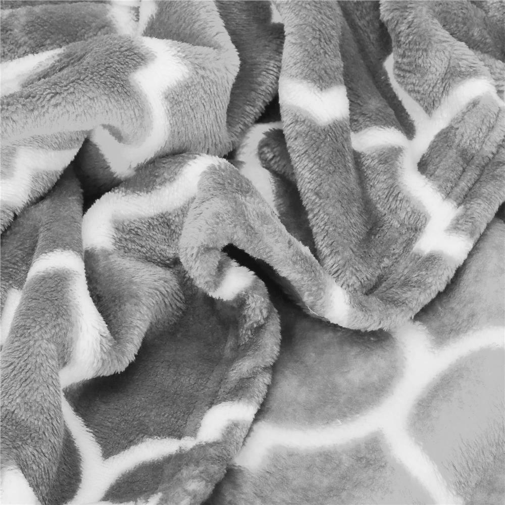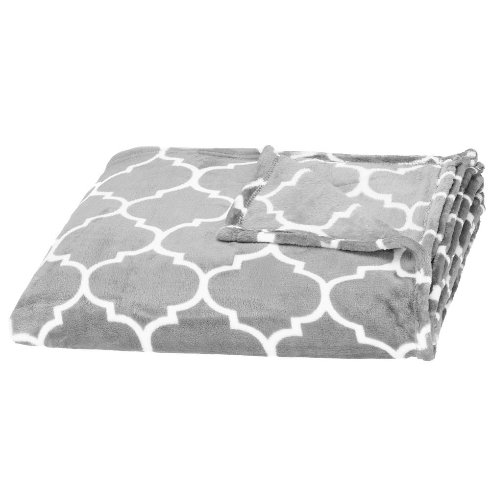 PATURA PUFOASA Material: poliester Culoare: nuante de gri, alb Dimensiuni: 200x220 cm Model: trifoi marocan Patura moale si placuta este solutia perfecta pentru serile lungi...