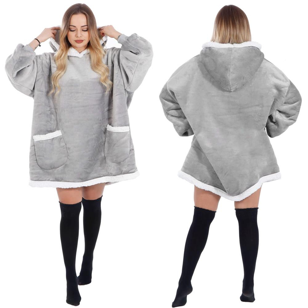 Patura tip hanorac, cu maneci, gluga si buzunare, material plus, marime universala, gri