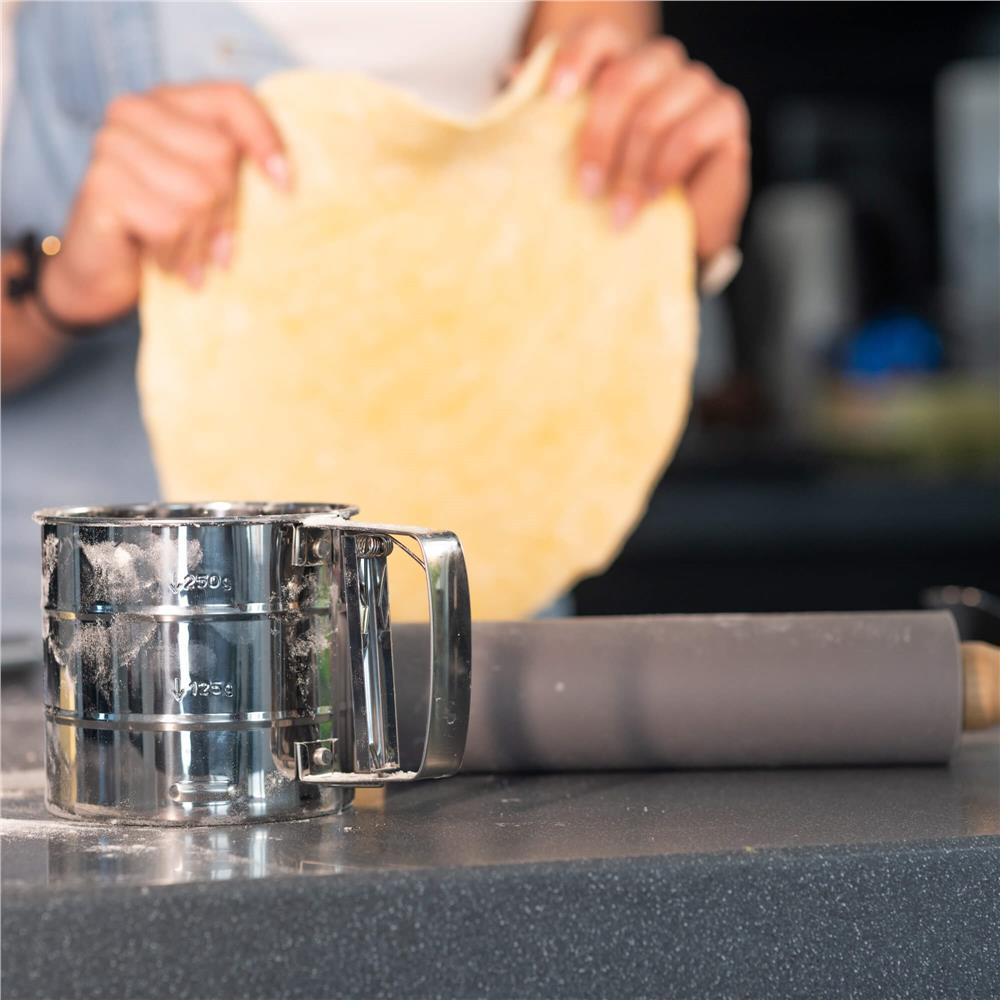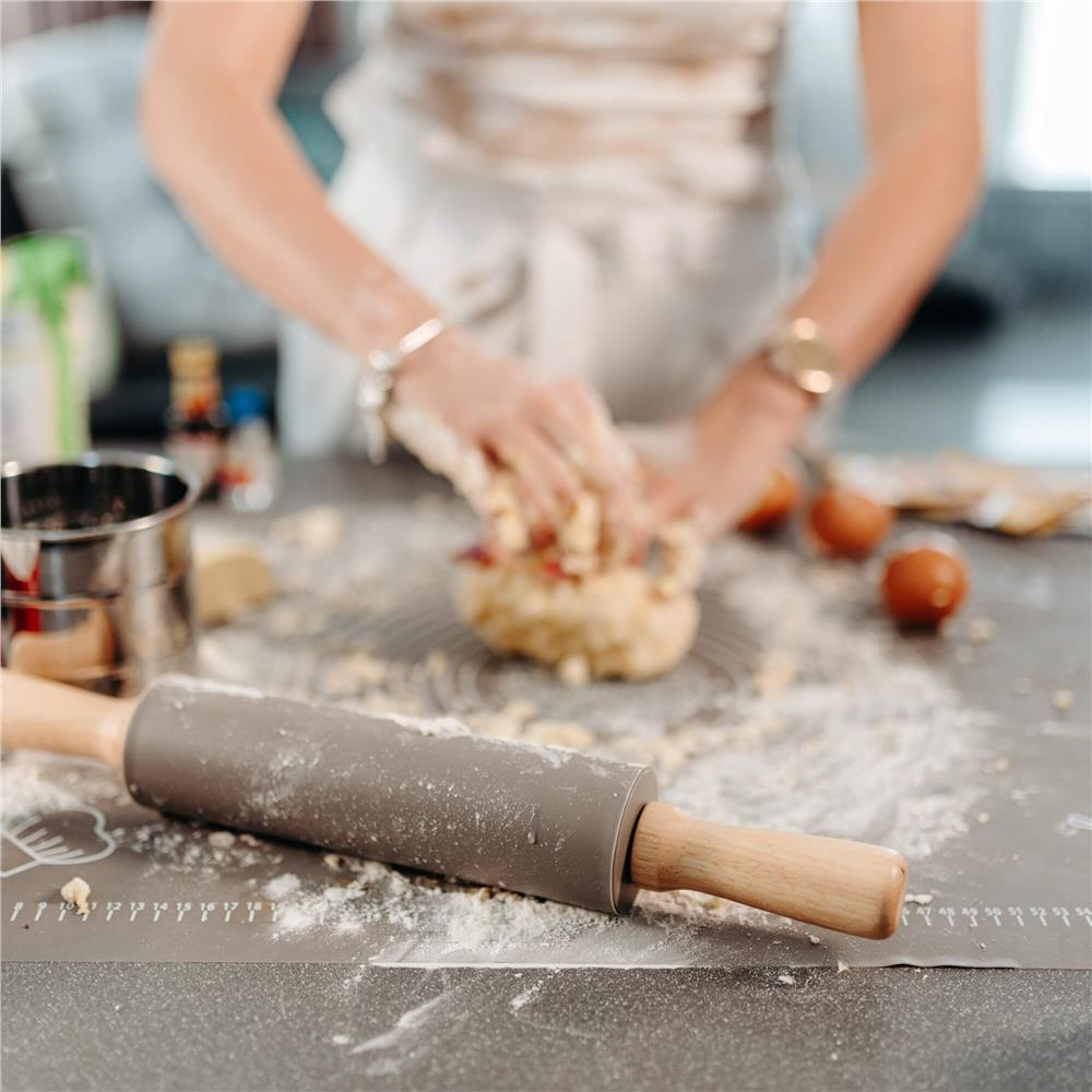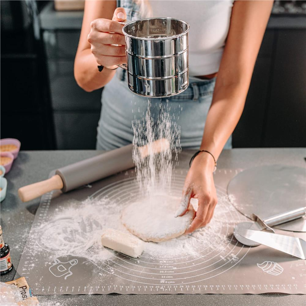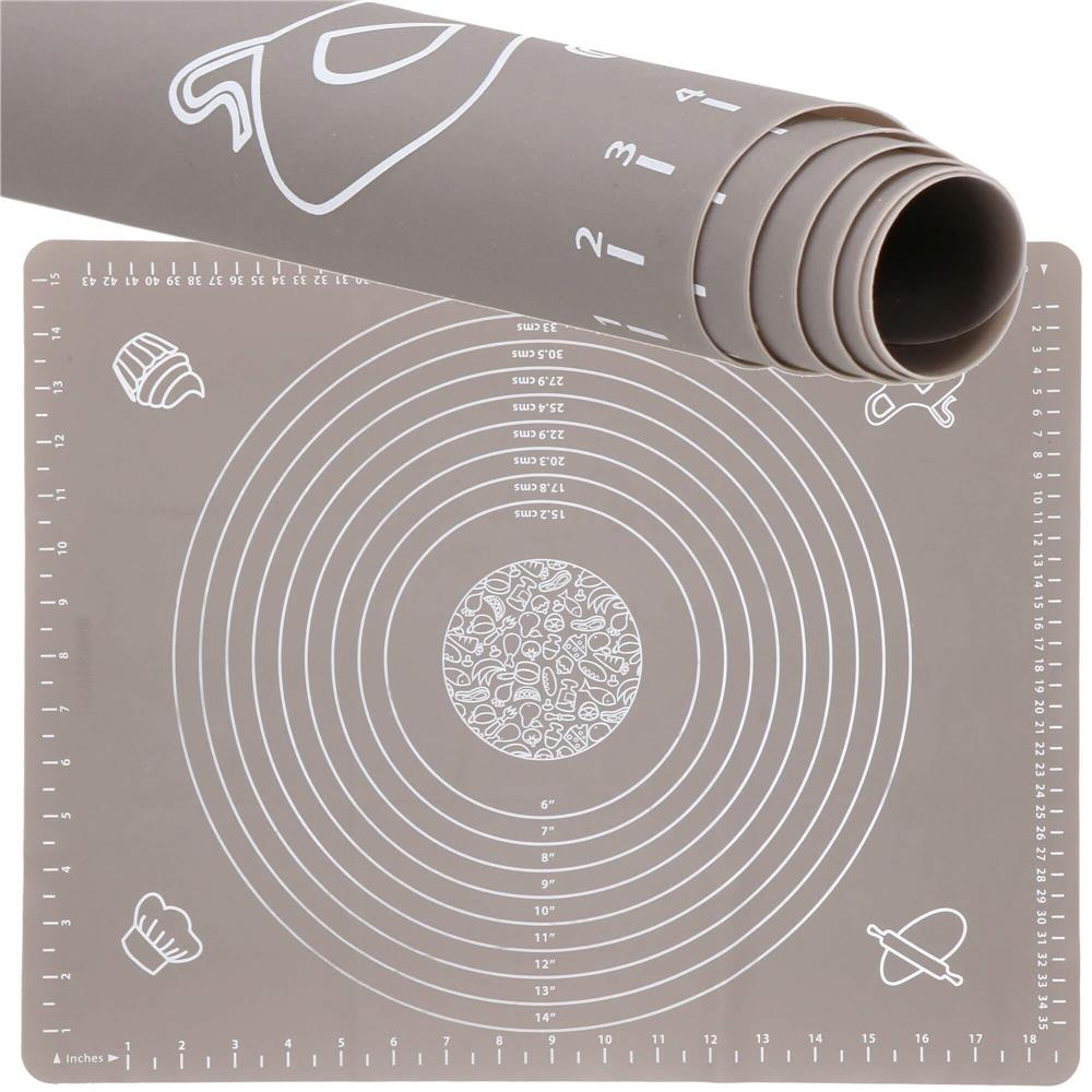 Culoare: Gri Dimensiune: 50 x 40 cm Latime: 50 cm Inaltime: 40 cm Material: silicon Rezistenta in intervalul de temperatura: 260 pana la -60°C In plus: nu absoarbe mirosurile, ocupa foarte putin spatiu atunci cand este pliata Aceasta plansa din silicon este ideala pentru bucatarii.  Datorita flexibilitatii materialului, aceasta ocupa foarte putin spatiu atunci cand este rulata si poate fi depozitata chiar si intr-un sertar mic. Usor de curatat sub jet de apa Aluatul framantat manual nu se va lipi de silicon Nu necesita ungere Nu absoarbe mirosurile Are gradatii pentru lungime si diametru Nu se va deforma atunci cand este pliat in rulou Poate rezista la temperaturi cuprinse intre 260°C si -60°C, astfel incat puteti pune pe el oale calde Materialul nu se va deteriora atunci cand se decupeaza, de exemplu, prajituri de turta dulce Economiseste timp si spatiu Este antiderapant si nu va aluneca atunci cand framantati aluatul Orice bucatar de casa stie exact cum este sa framanti aluatul care se tot lipeste de blatul de lemn al mesei. Alegand accesoriul nostru din silicon, veti putea face aluat, galuste sau pizza fara niciun stres suplimentar. Cu cei mai mici membri ai familiei, puteti decupa cu usurinta diferite modele pentru turta dulce sau prajituri, iar acestea se vor desprinde de pe covoras fara probleme. Covorasul este fabricat din materiale de cea mai buna calitate. Alegand siliconul, se garanteaza ca nu va absorbi mirosurile sau umezeala din lichidele adaugate pentru prajituri. In plus, acest material este sigur pentru sanatate si neutru din punct de vedere alimentar. Adesea, retetele din cartile de bucate sau de pe bloguri au dimensiuni specifice ale prajiturilor care trebuie facute. Din acest motiv, plansa de patiserie din silicon este dotata cu gradatii de lungime si diametru. De asemenea, merita mentionat faptul ca acestea nu sunt convexe, deci nu se vor vedea pe aluat. Planuiti o excursie cu cortul, iar gatitul este un hobby si intentionati sa va aratati abilitatile in vacanta? Nici o problema! Puteti lua placa de patiserie din silicon cu dvs. pur si simplu rulati-o, astfel incat sa incapa in orice bagaj.