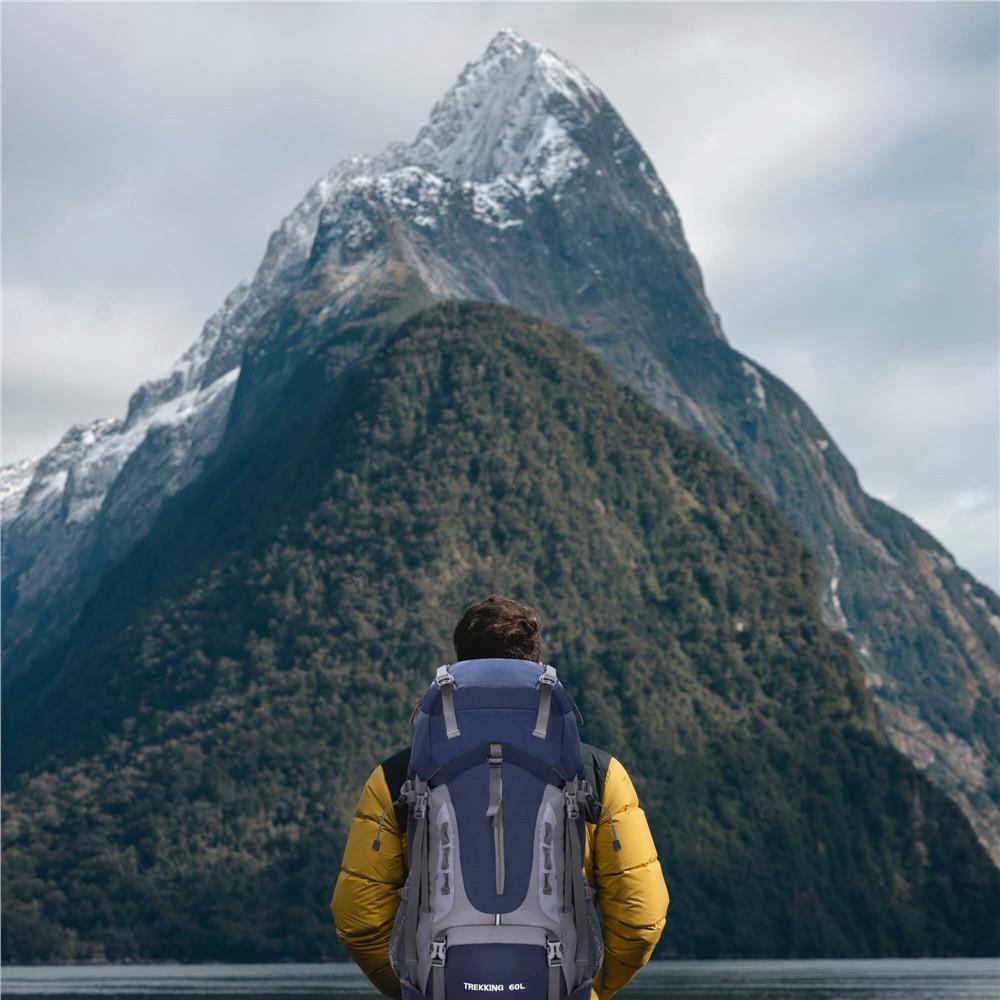 Rucsac tactic militar pentru drumetie, cu husa de ploaie, 60 litri, 25 kg, 70x40x24 cm, gri albastru