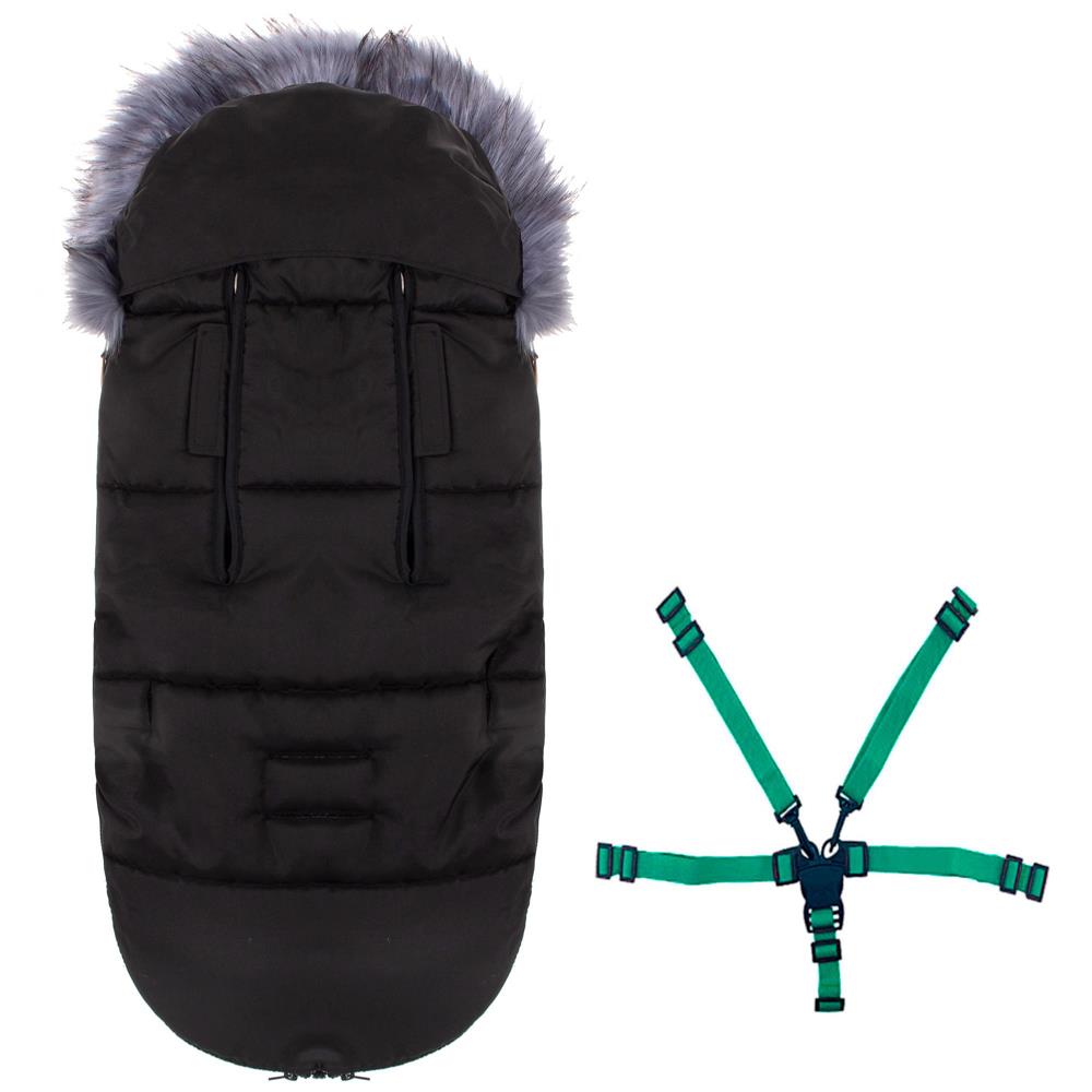 Sac iarna de bebelusi pentru carucior, marime universala, cu gluga, 90x45cm, negru
