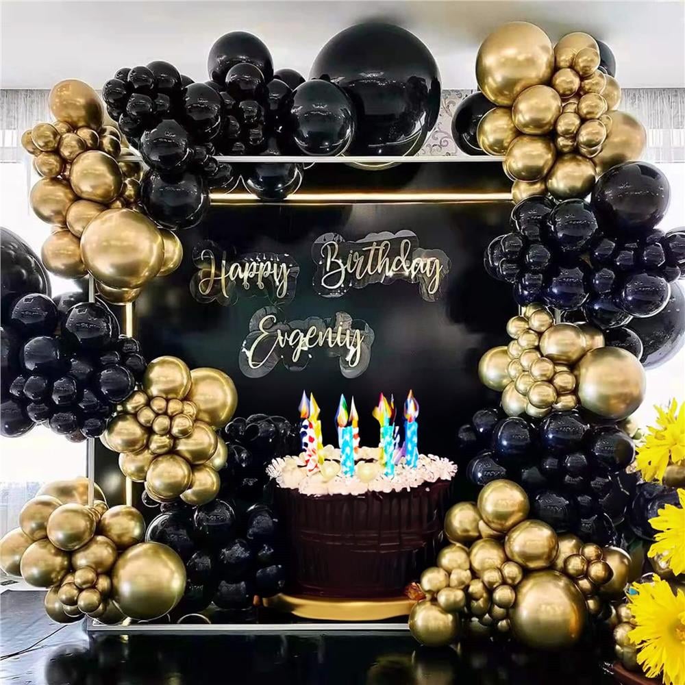 Set 100 baloane pentru petrecere, 40cm, negru auriu