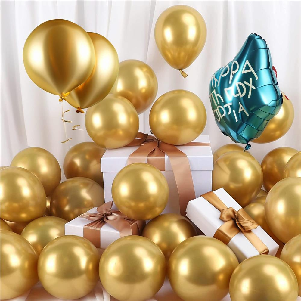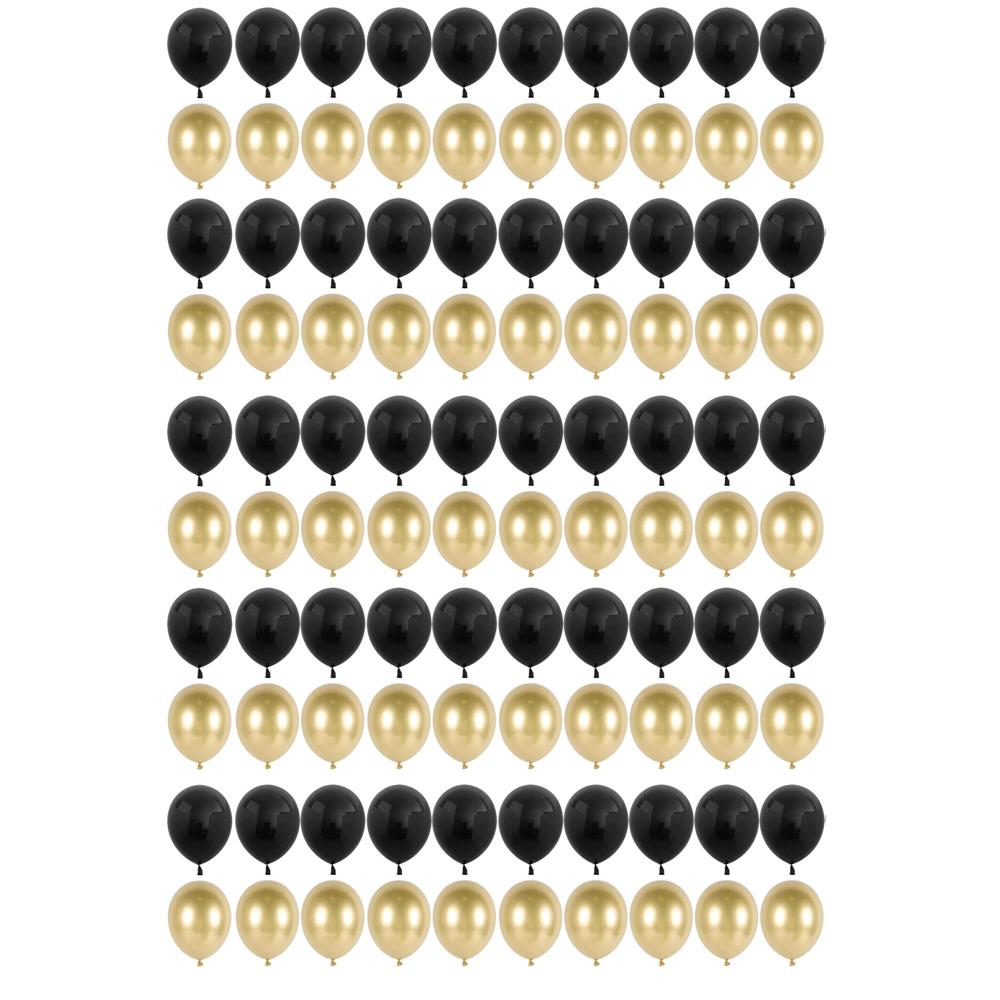 Parametrii: Numar de piese per set: 100 + toleranta +/- 2 bucati Culoare: multicolor Inaltime dupa umflare: aprox. 40 cm Material: latex Baloanele sunt impresionante, ele pot crea decoratiuni multicolore cu un impact vizual mare pe care oaspetii le pot vedea de la intrare, de pe scaun sau dansand. Decoratiunile din baloane dau o deosebita culoare atmosferei, petrecerea va fi magica. Culoare intensa atunci cand baloanele sunt umflate Festivitatea ta va arata gata de instagram-ready! Buchetele mari de baloane colorate dau ringului de dans un farmec aparte. Arcade decorate cu baloane vor pune in prim plan masa sarbatoritilor si intreaga incapere. Indiferent daca doresti sa decorezi o mica petrecere, o receptie sau o nunta, decoratiunile noastre cu baloane vor  transforma evenimentul intr-o experienta extraordinara. Setul include: 50x balon metalic auriu 50x balon negru