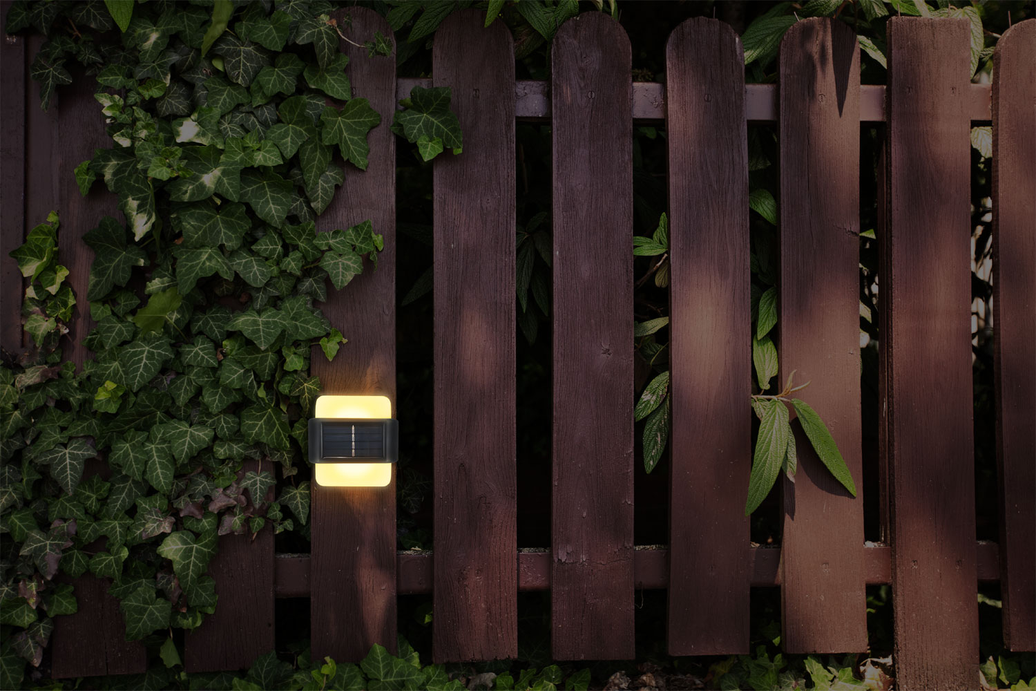 Set 2 lampi solare LED de perete, IP44 pentru exterior, autonomie 12 ore, 9x9x2.3cm, negru