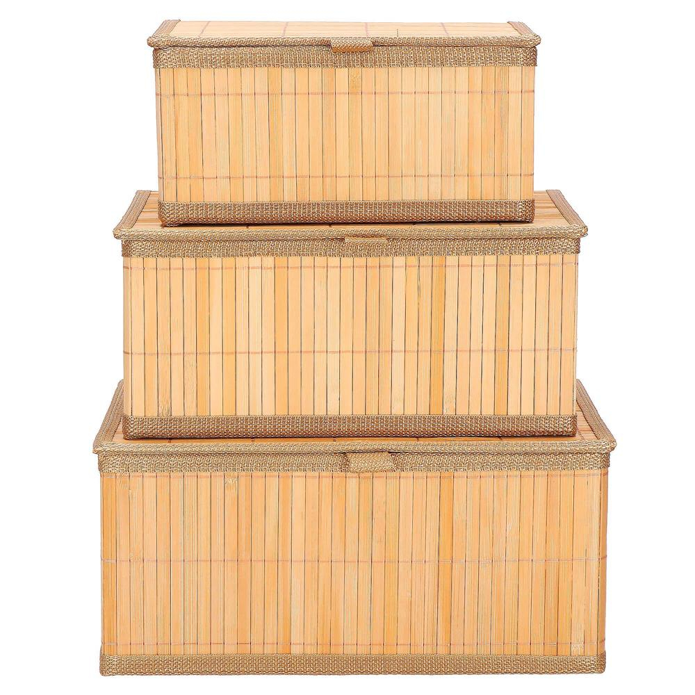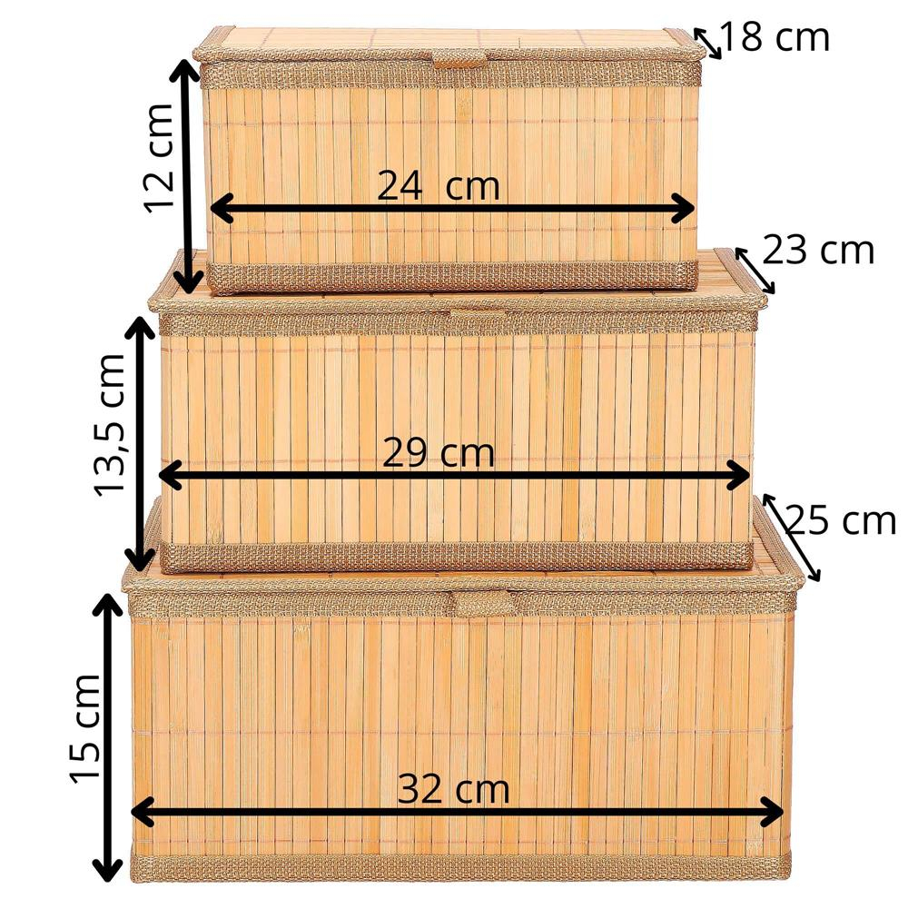 Set 3 cutii organizatoare din bambus, cu capac, diverse dimensiuni, maro