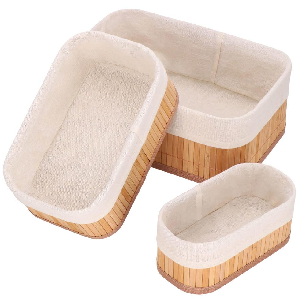 Set 3 cutii organizatoare din bambus, diverse dimensiuni, maro