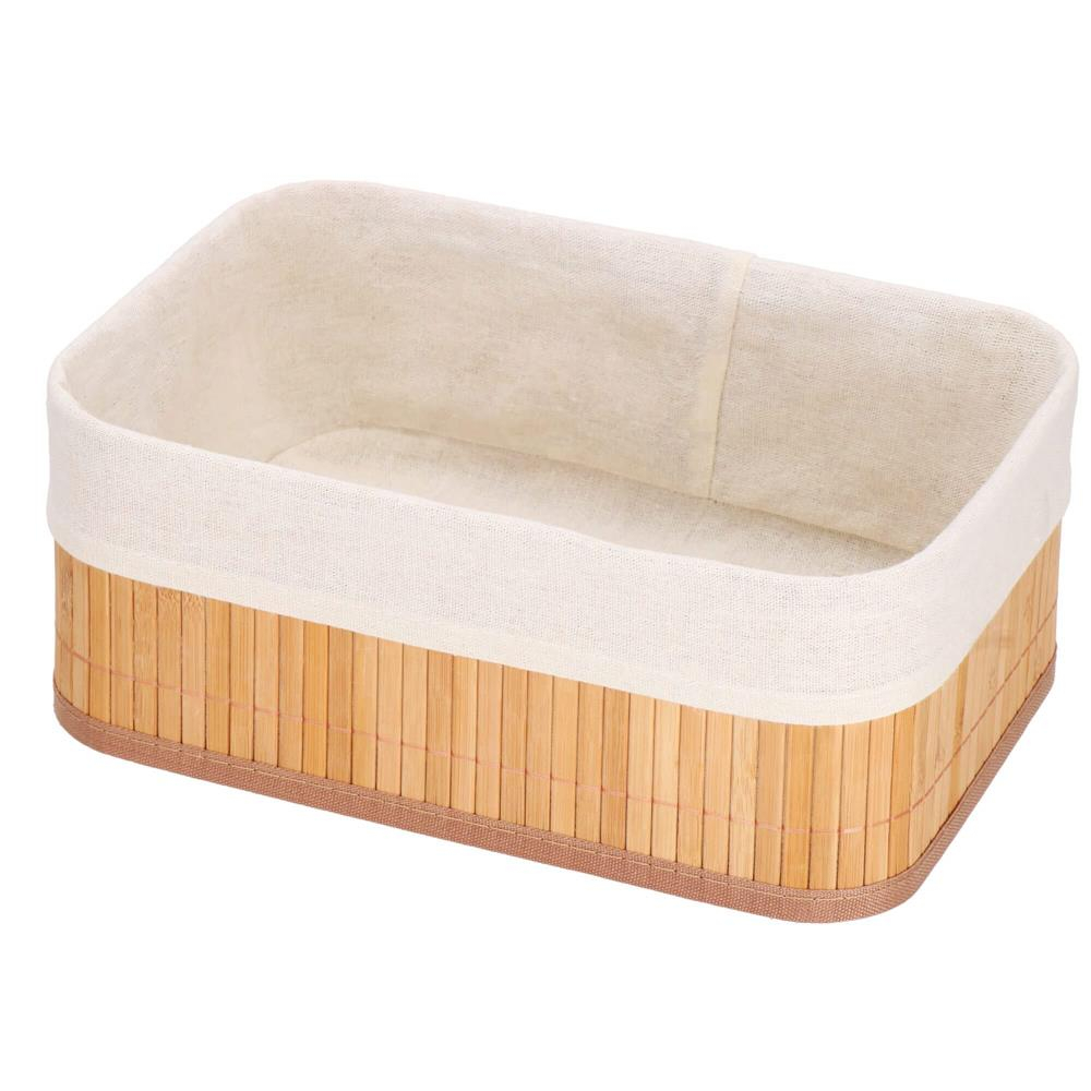 Culoare: maro deschis/ecru Material: bambus, MDF, material, metal Un set de trei organizatoare de cutii deschise cu dimensiuni 20 x 10 x 8 cm 25...