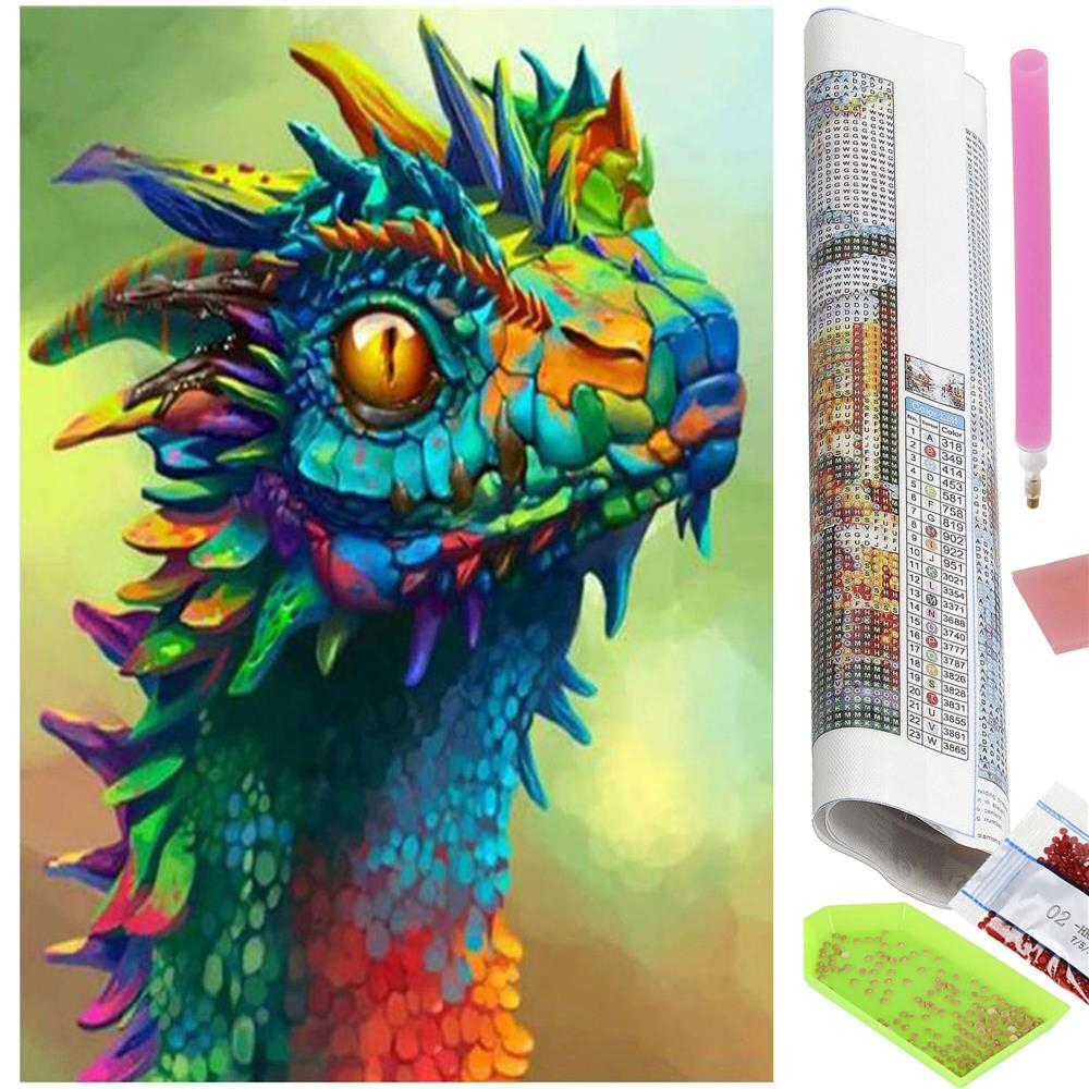 Set de broderie cu diamante 5D, 30x40cm, model Cap de dragon