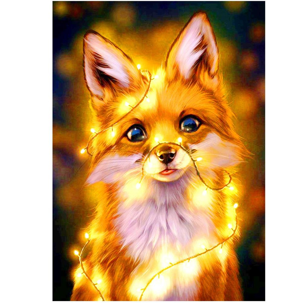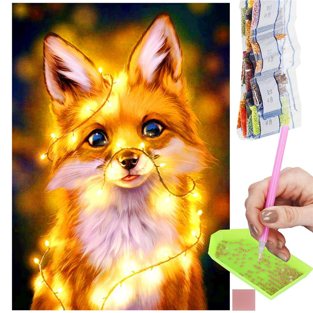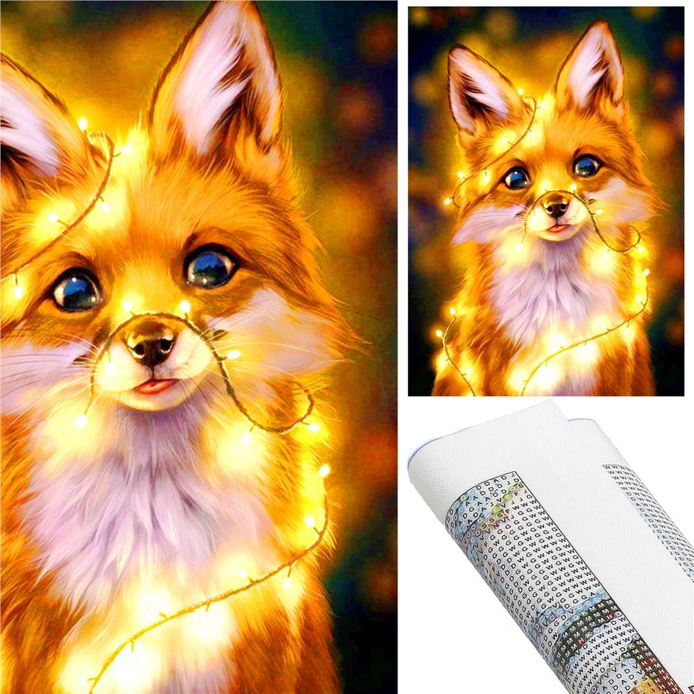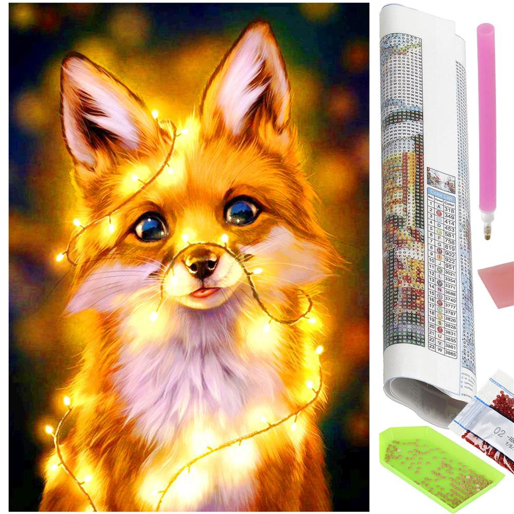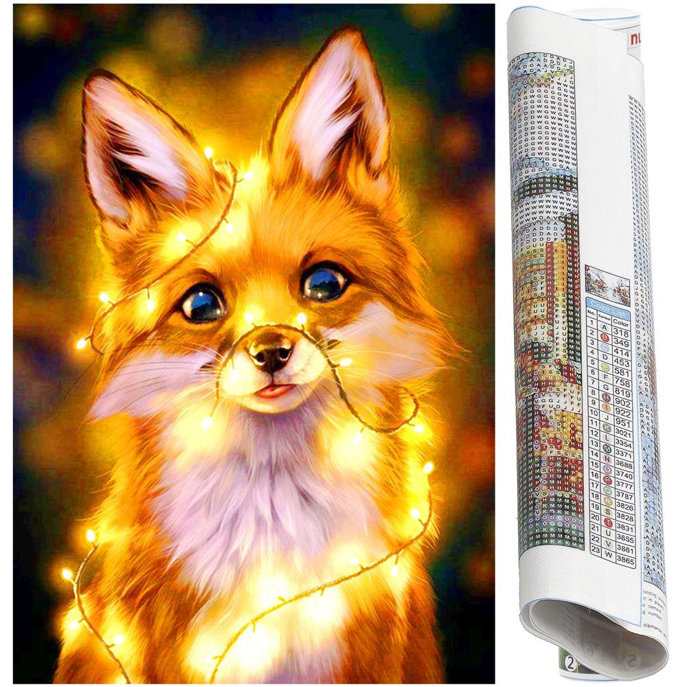 Set de broderie cu diamante 5D, 30x40cm, model Vulpe