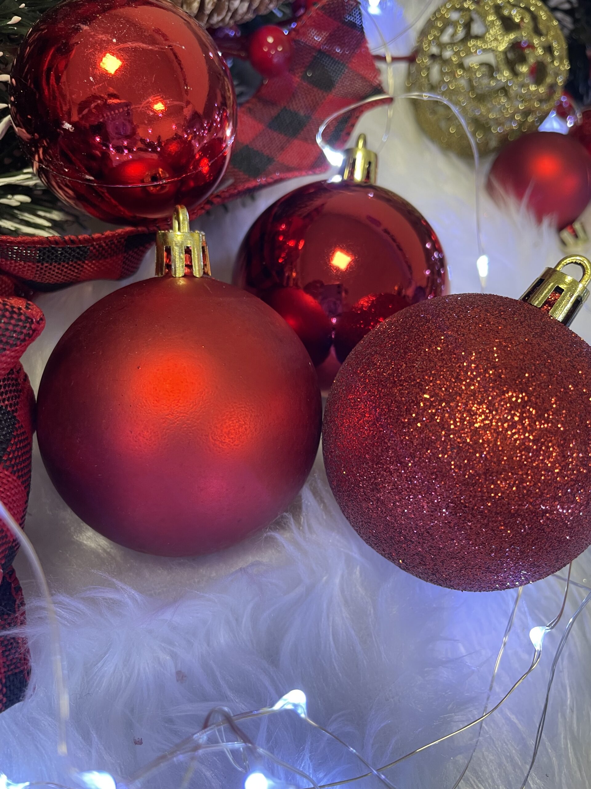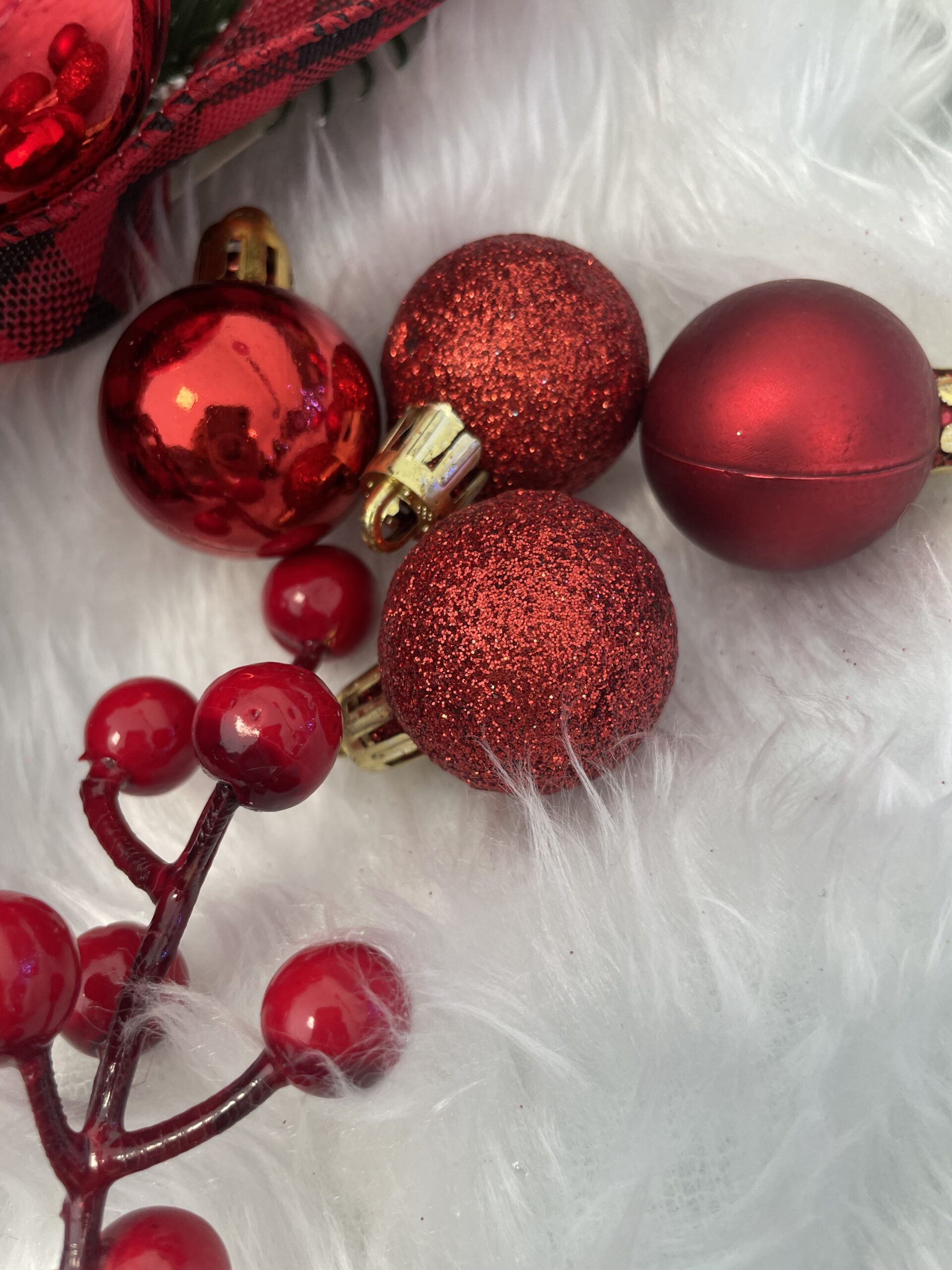 Globurile dintr-un set cu o singura culoare va vor permite sa creati un decor minunat pentru brad. Arata frumos in timpul zilei si dupa intuneric, insotite de iluminat festiv. Setul include snururi care va permit sa agatati globurile rapid si usor in locul dorit. Designul din plastic creste siguranta datorita materialului incasabil. Alegerea lor in locul globurilor de sticla va contribui la siguranta celor mici din casa. Diversele dimensiuni va permit sa creati modele inedite de aranjare a bradului de Craciun. Culoare: rosu auriu Material: plastic Cantitate: 100 bucati globuri (+/- 1 bucata) Modele: stralucitor, mat, perlat, transparent, lucios Diametru: 3-6 cm Setul include urmatoarele globuri 1 buc stea pe varf de aproximativ 20 cm 8 bucati ajurate de 6 cm 4 bucati de 6 cm lucioase 16 bucati de sclipici de 6 cm 4 bucati mate de 6 cm 12 bucati tralucitoare de 4 cm 12 bucati de sclipici de 4 cm 12 bucati mate de 4 cm 8 bucati stralucitoare de 3 cm 16 bucati de sclipici de 3 cm 8 bucati mate de 3 cm Atentie! Numarul de piese din set poate varia + - 1 buc.