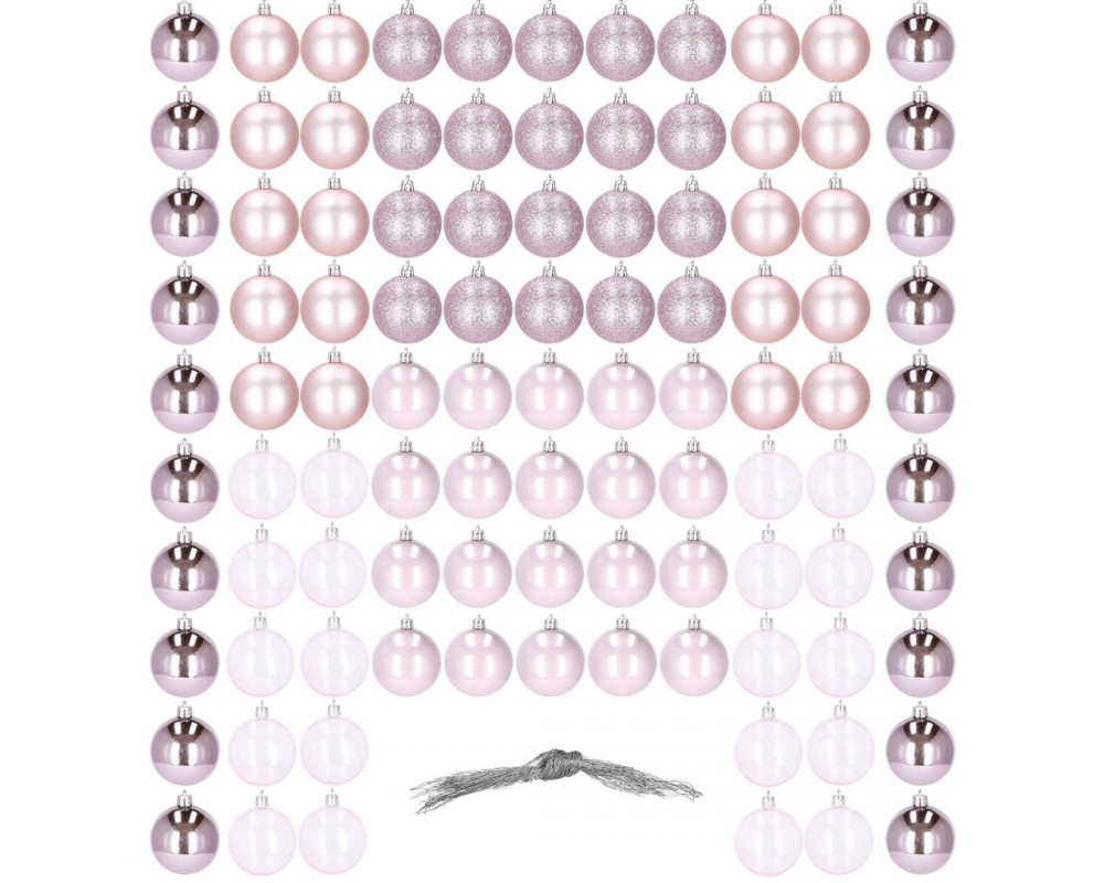 Set globuri de Craciun, 100 bucati, 6cm, roz
