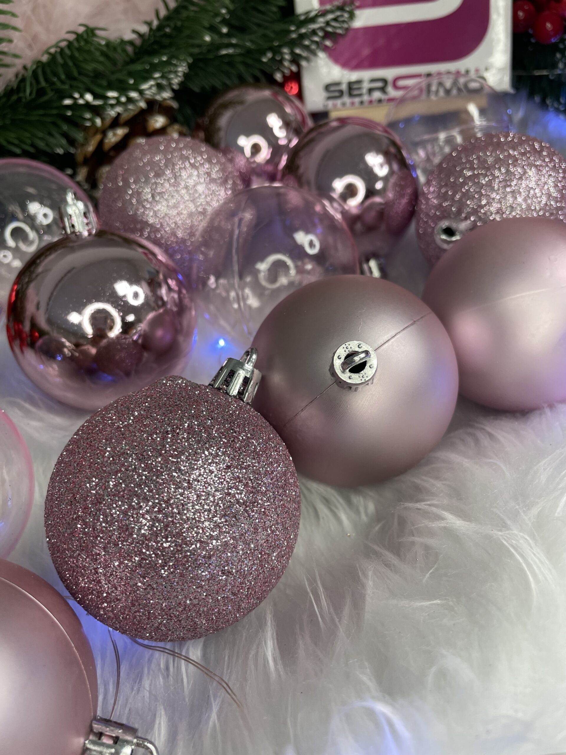 Globurile dintr-un set cu o singura culoare va vor permite sa creati un decor minunat pentru brad. Arata frumos in timpul zilei si dupa intuneric, insotite de iluminat festiv. Setul include snururi care va permit sa agatati globurile rapid si usor in locul dorit. Designul din plastic creste siguranta datorita materialului incasabil. Alegerea lor in locul globurilor de sticla va contribui la siguranta celor mici din casa. Diversele dimensiuni va permit sa creati modele inedite de aranjare a bradului de Craciun. Culoare: roz Material: plastic Cantitate: 100 bucati globuri (+/- 1 bucata) Modele: stralucitor, mat, perlat, transparent, lucios Diametru: 6 cm Setul include urmatoarele globuri 20 x sclipici - 6 cm 20 x perla - 6 cm 20 x mat - 6 cm 20 x lucios - 6 cm 20 x transparent - 6 cm Atentie! Numarul de piese din set poate varia + - 1 buc.