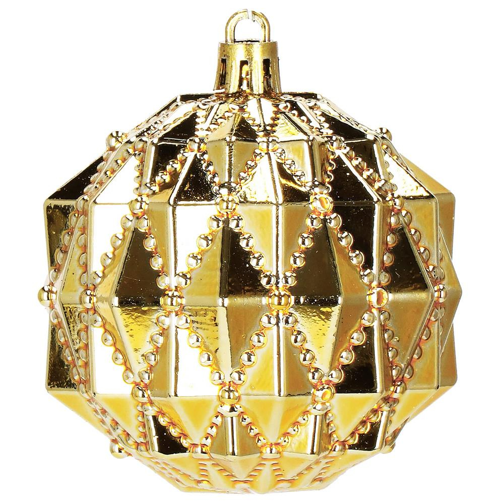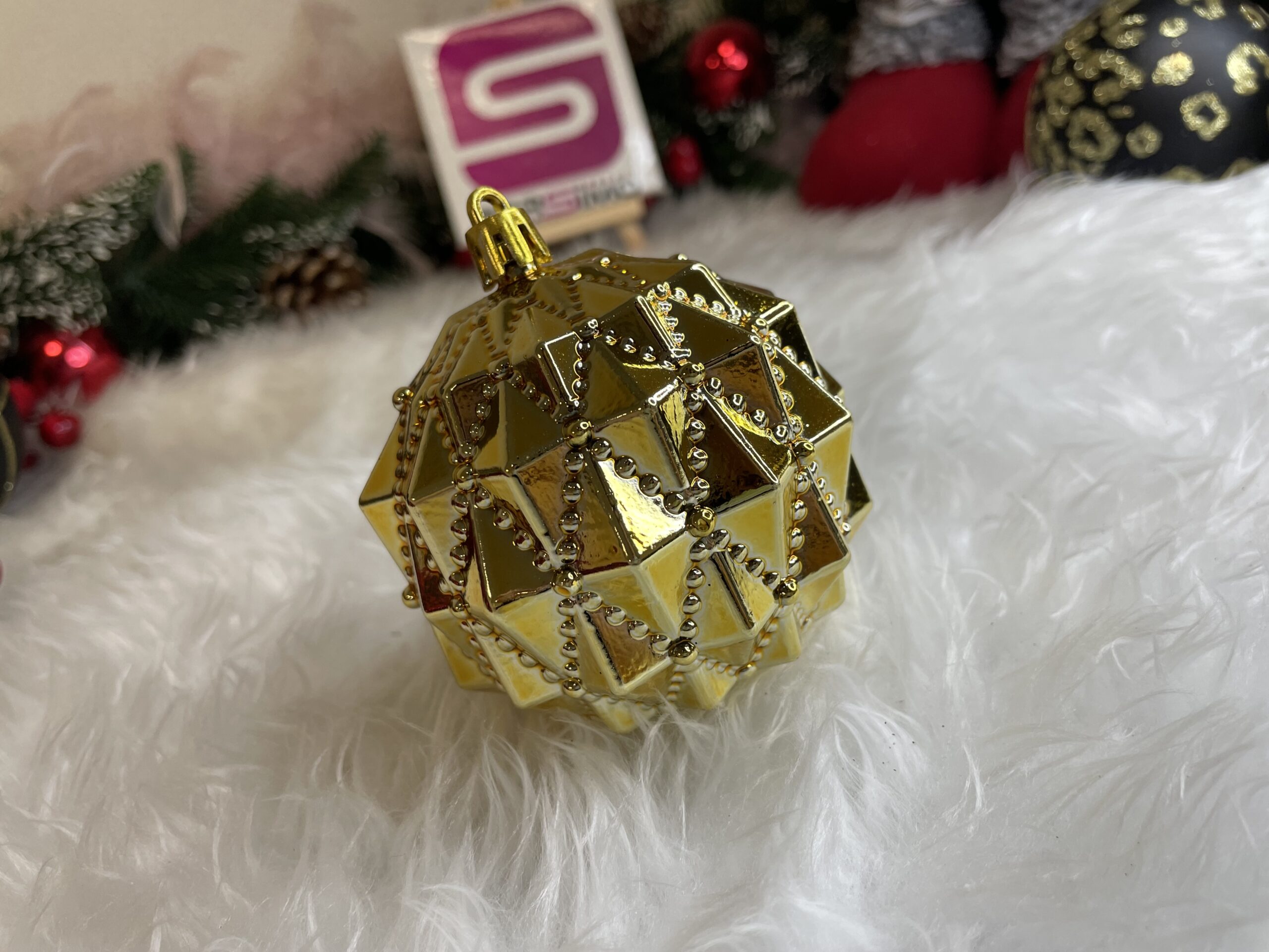 Culoare: alb auriu Material: plastic Cantitate: 16 bucati globuri, Modele: 6 diferite Globurile va vor permite sa creati un decor minunat pentru brad. Arata frumos in timpul zilei si dupa intuneric, insotite de iluminat festiv. Setul include snururi care va permit sa agatati globurile rapid si usor in locul dorit. Designul din plastic creste siguranta datorita materialului incasabil. Alegerea lor in locul globurilor de sticla va contribui la siguranta celor mici din casa. Diversele dimensiuni va permit sa creati modele inedite de aranjare a bradului de Craciun. Setul include urmatoarele globuri 3x glob geometric auriu - 8 cm 2x glob negru mat cu pete sclipitoare - 8 cm 2x glob negru mat cu frunza sclipici - 8 cm 2x glob negru mat cu brocart rosu - 8 cm 2x aglob  uriu mat cu pete sclipici negre - 8 cm 3x glob bronzat negru - 8 cm 2x glob auriu cu relief - 8 cm Atentie! Numarul de piese din set poate varia + - 1 buc.