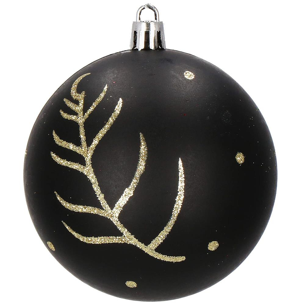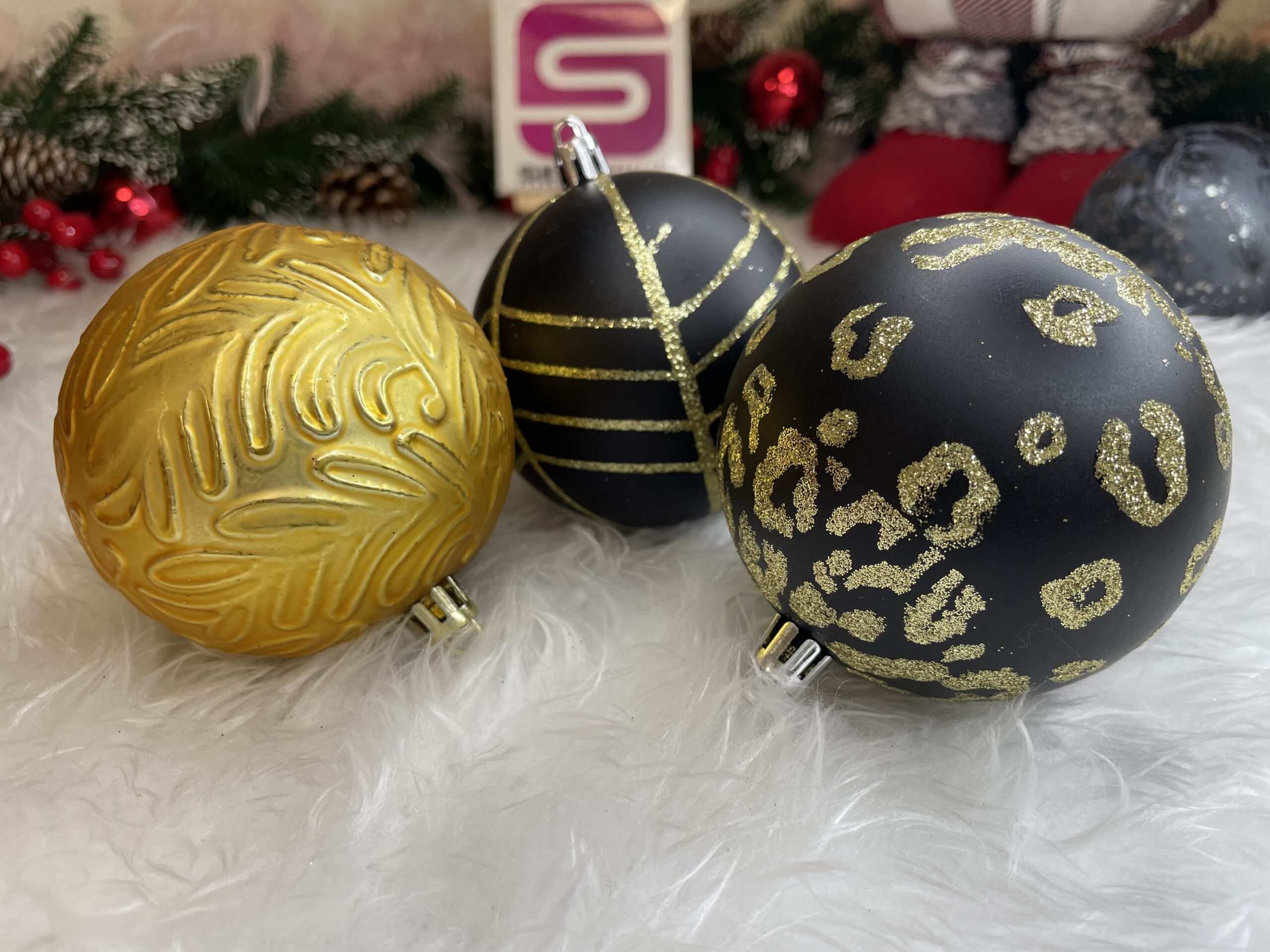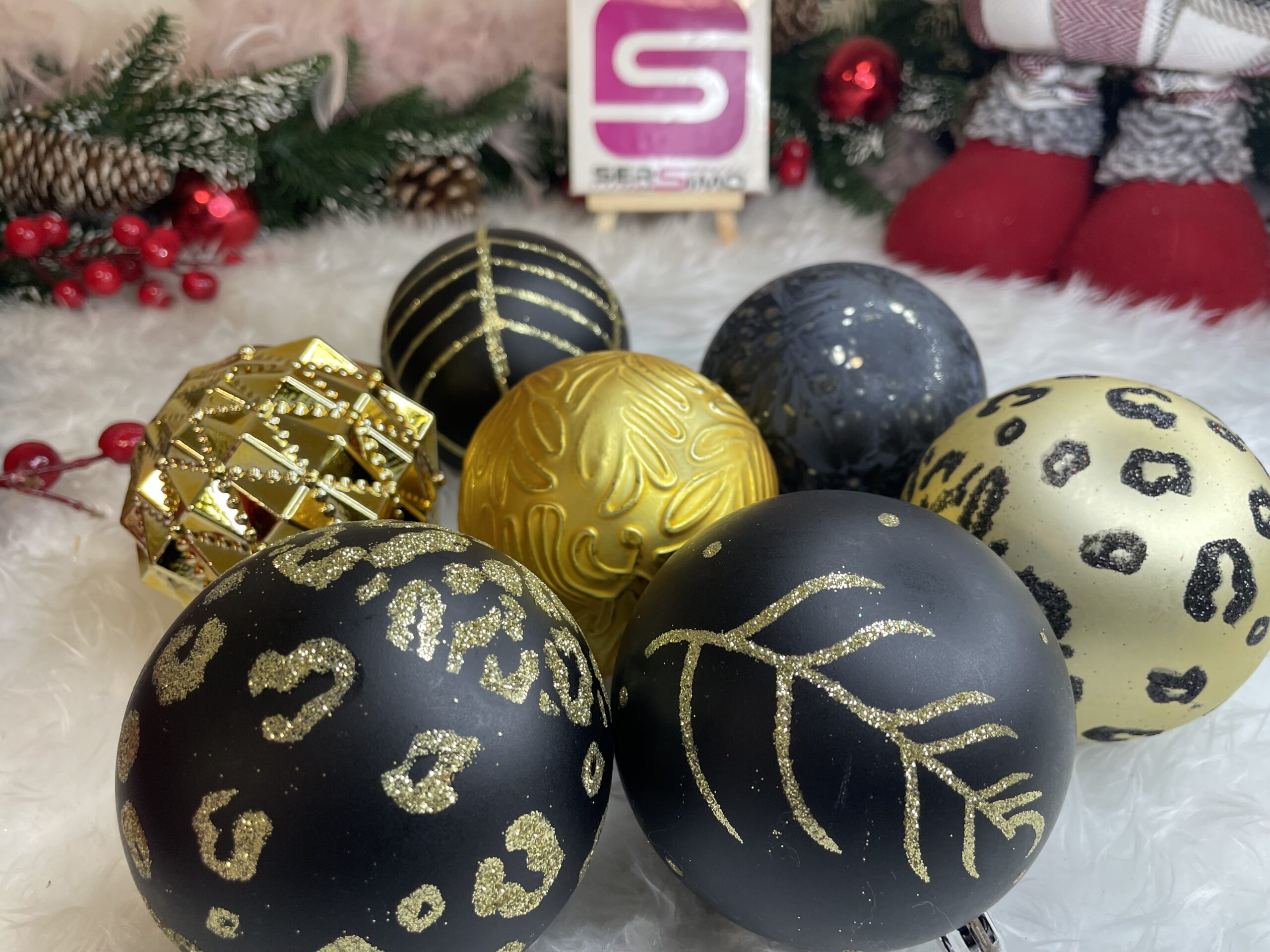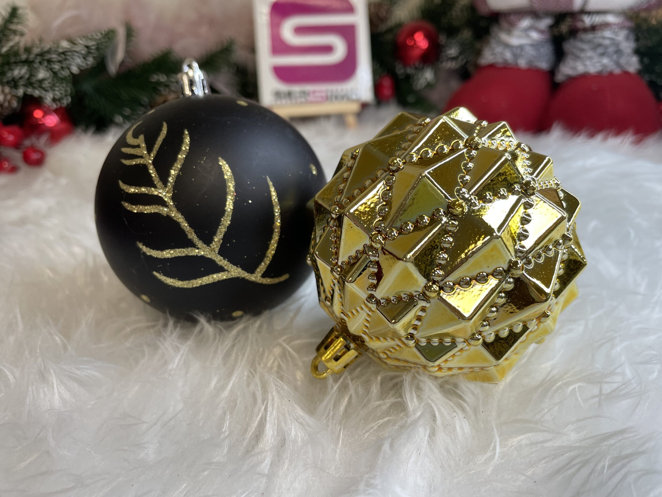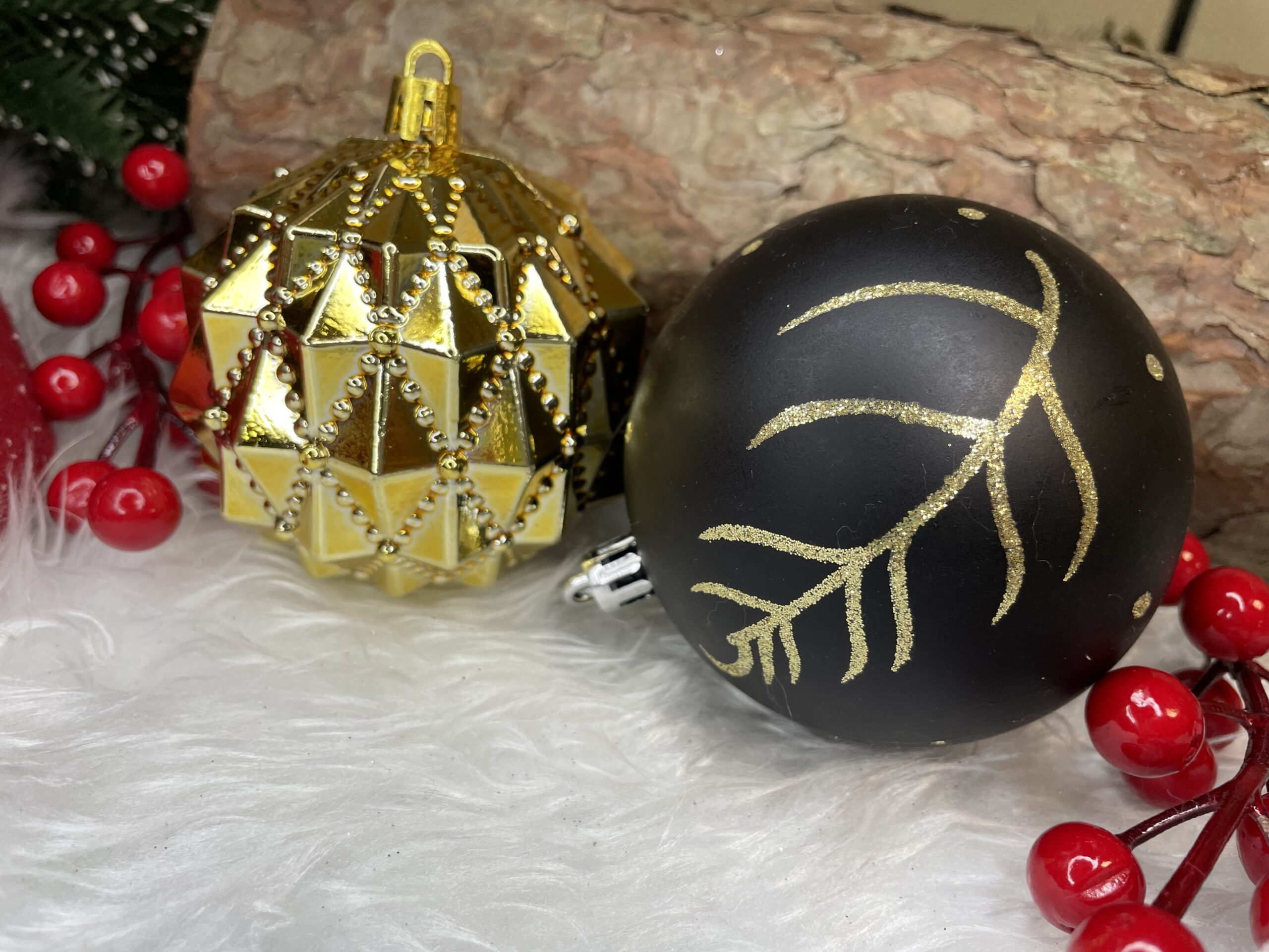 Set globuri de Craciun, 16 bucati, 8cm, 6 modele, negru auriu