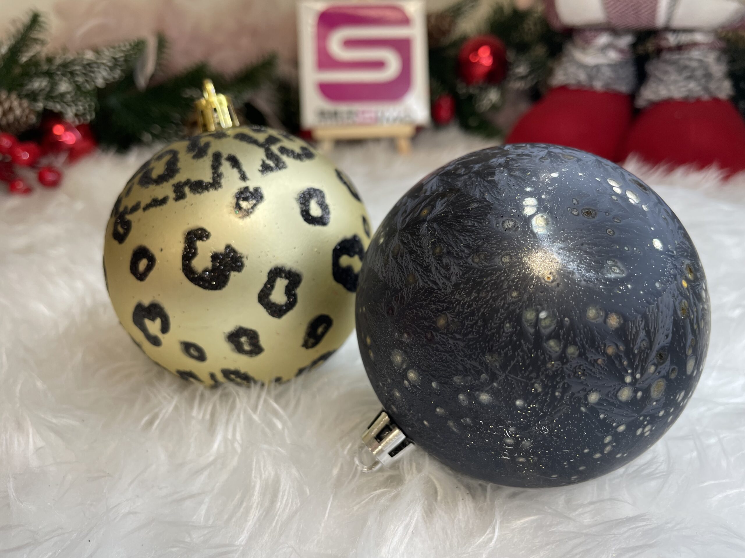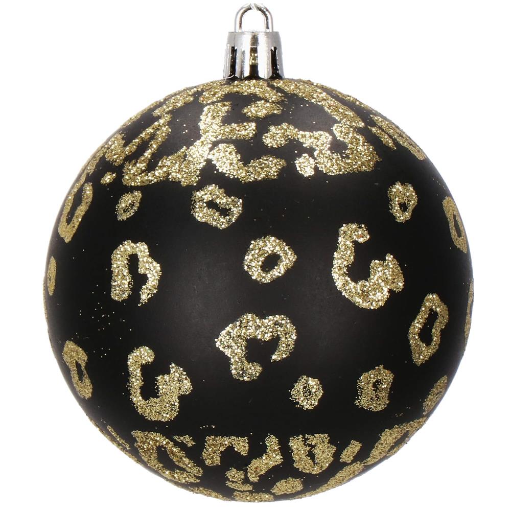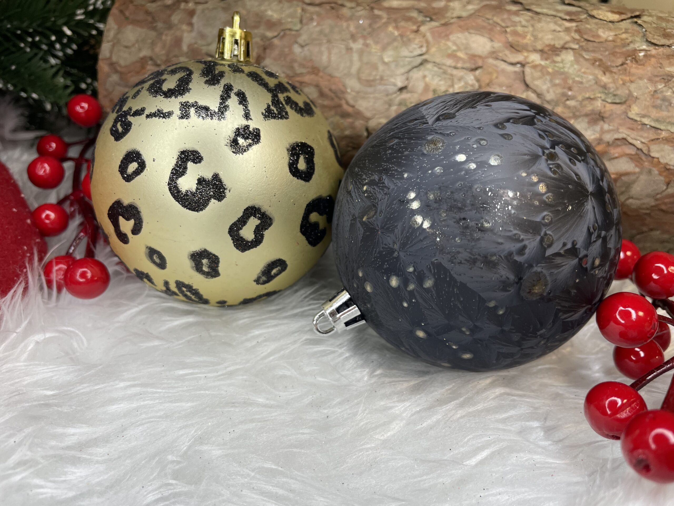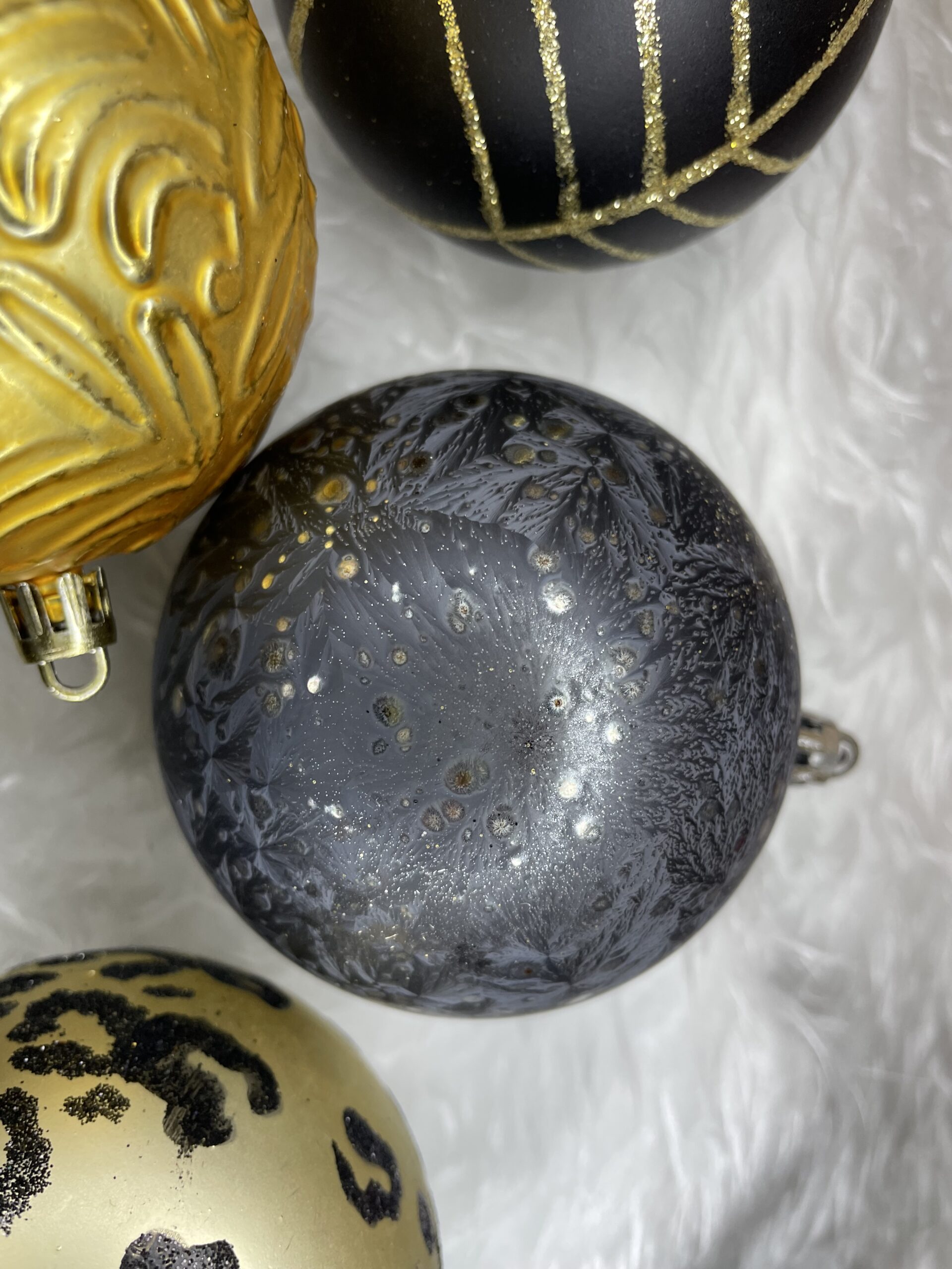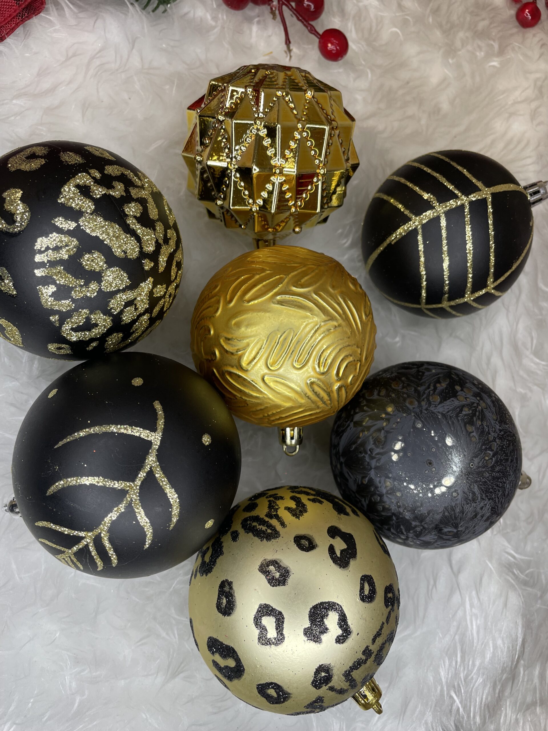 Set globuri de Craciun, 16 bucati, 8cm, 6 modele, negru auriu