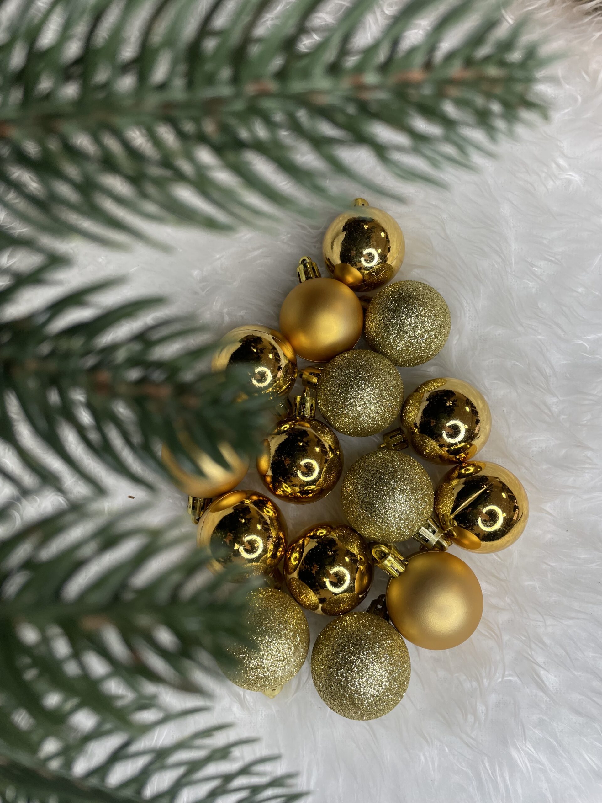 Culoare: auriu Material: plastic Cantitate: 20 bucati de globulete Dimensiune: 4 cm Modele: mat, sclipici, stralucitor Incasabil, snururi aurii pentru agatat Craciunul, ca si intreaga...