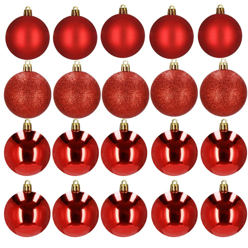 Set globuri de Craciun, 20 bucati, 3 modele, 4cm, rosu