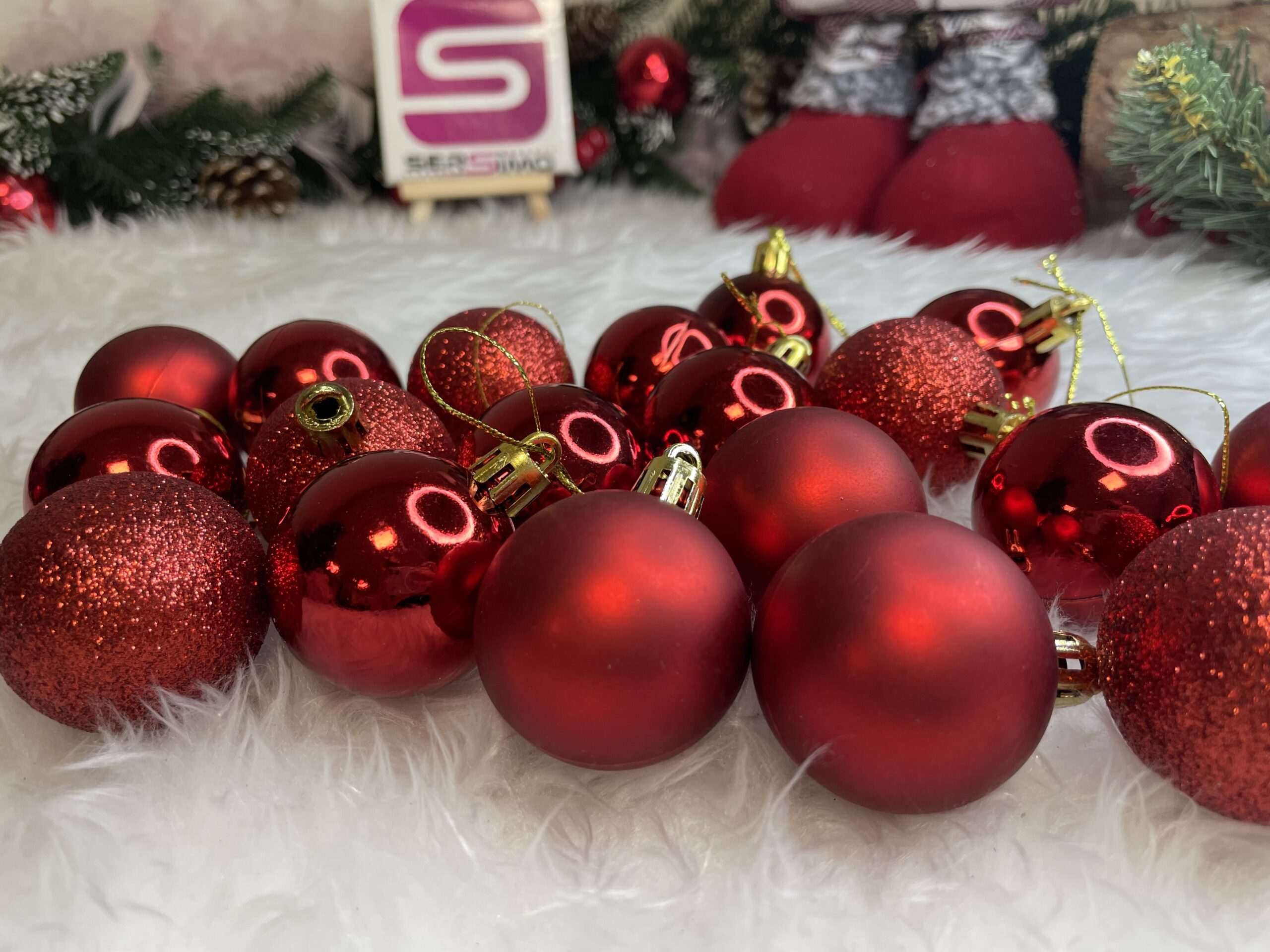Culoare: rosu Material: plastic Cantitate: 20 de bucati de globulete Dimensiune: 4 cm Modele: mat, sclipici, stralucitor Incasabil, snur pentru agatat Craciunul, ca si intreaga...