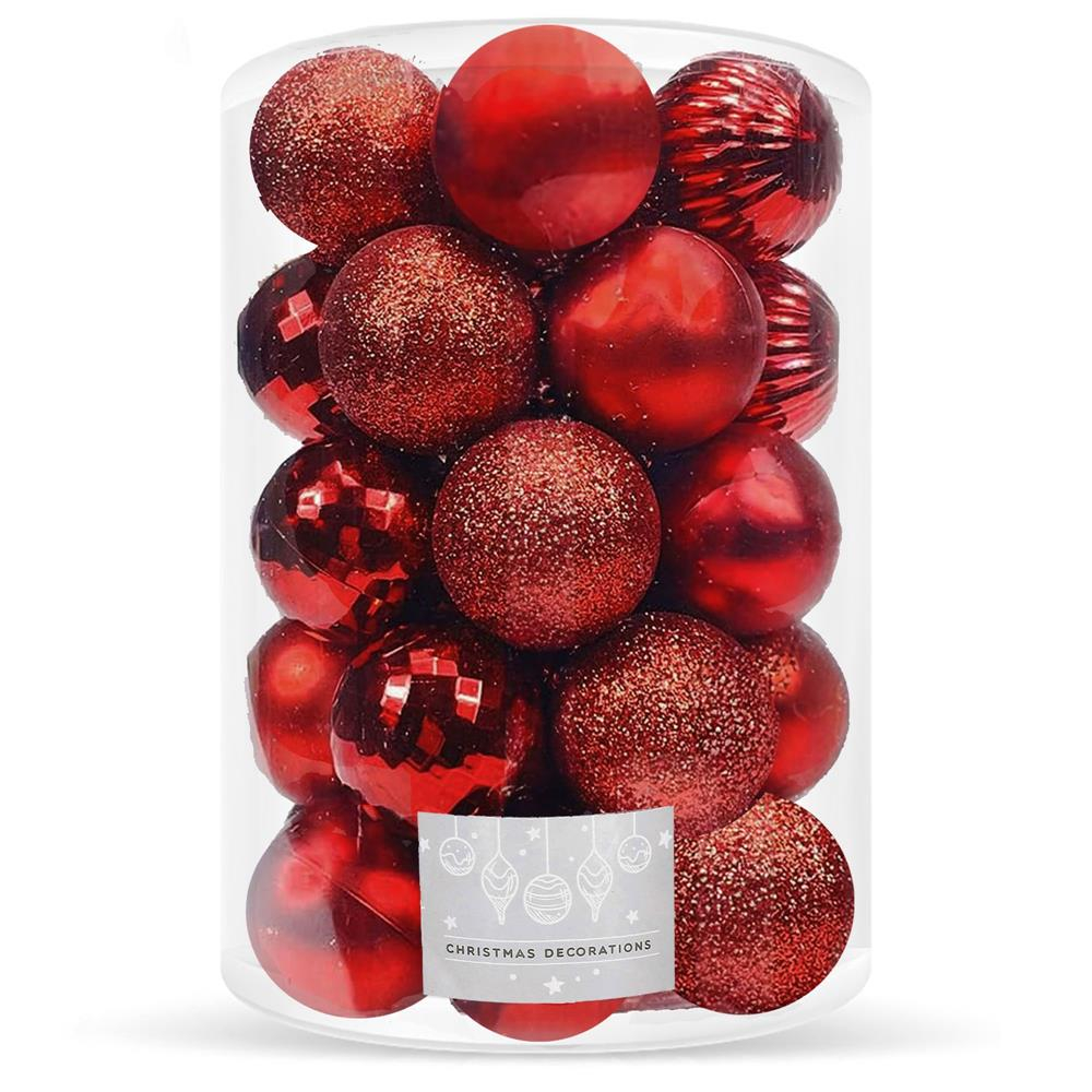 Set globuri de Craciun, 20 bucati, 5 modele, 6cm, rosu