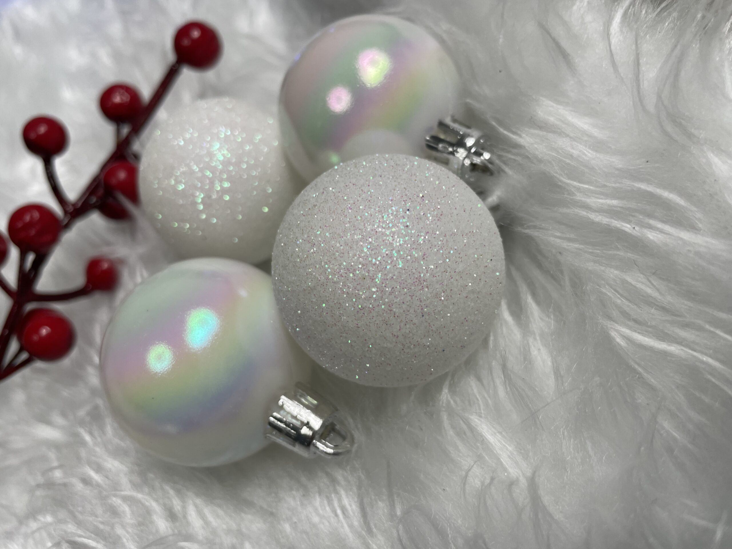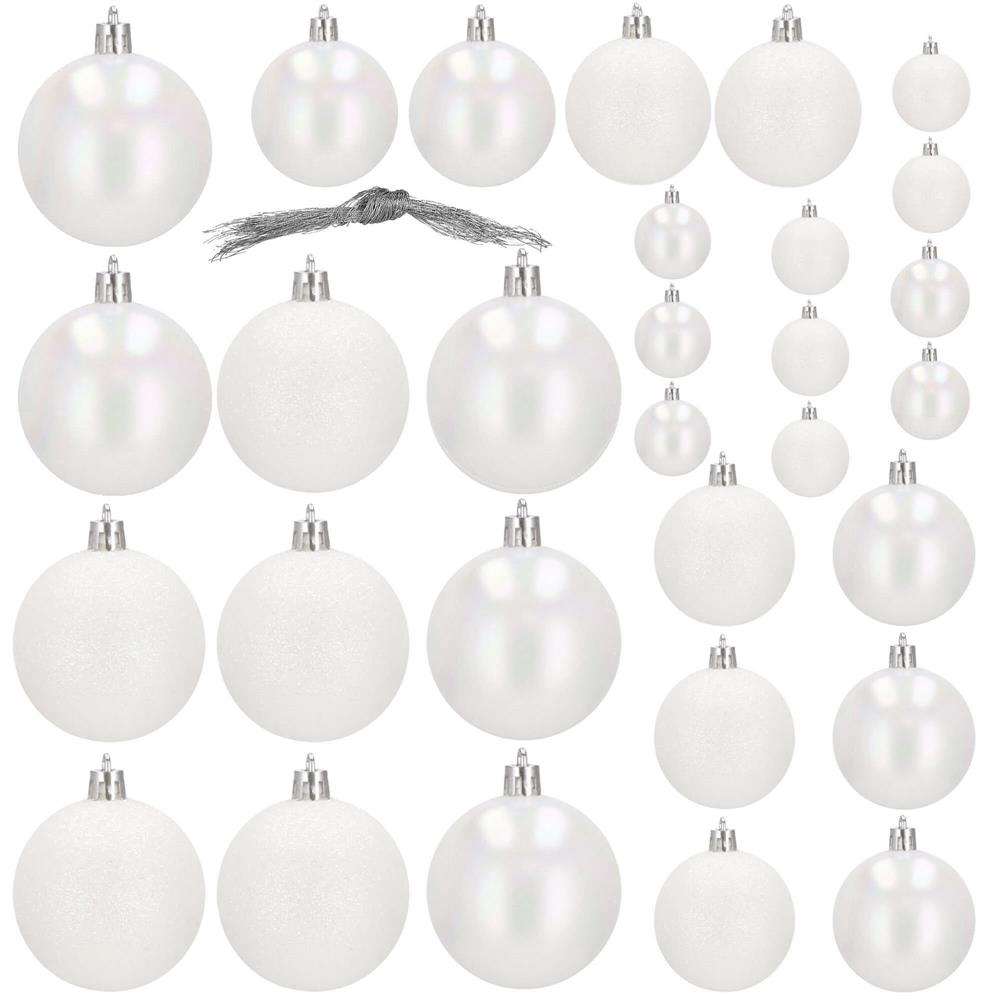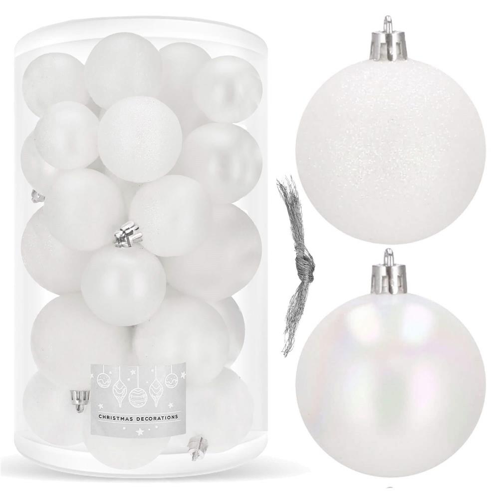 Set globuri de Craciun, 30 bucati, 3 modele, 4/5/6cm, alb