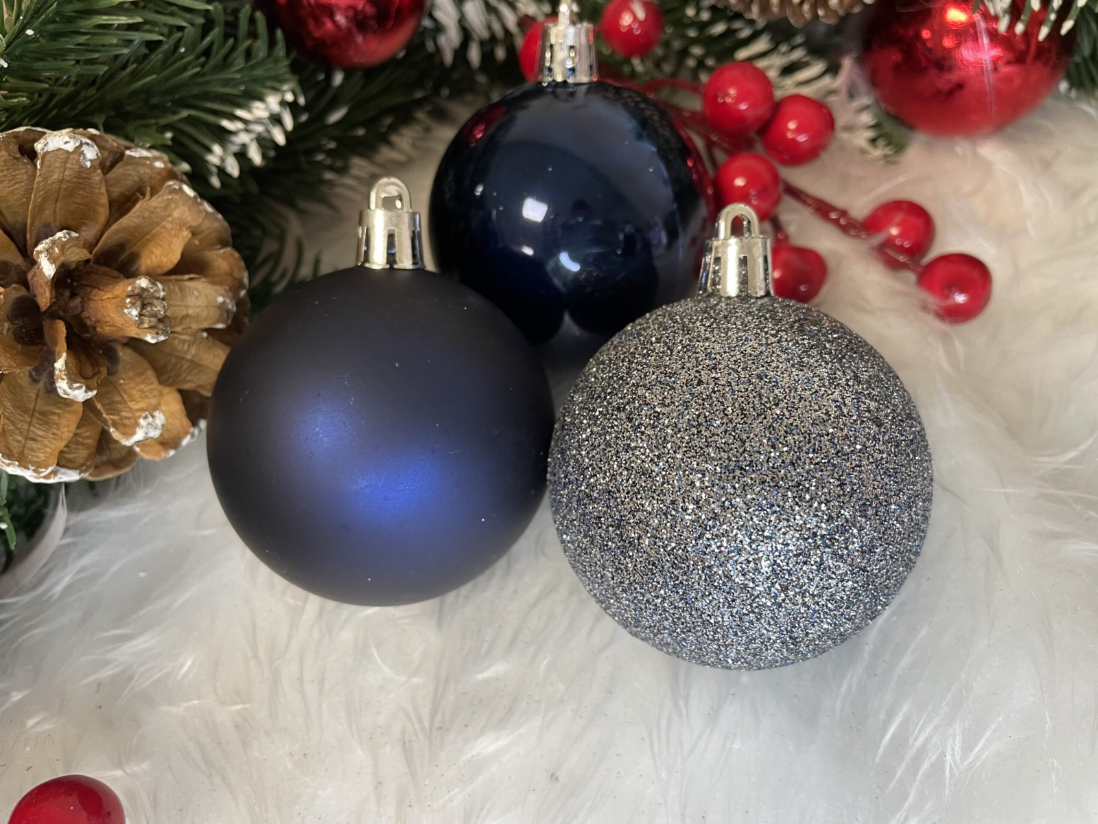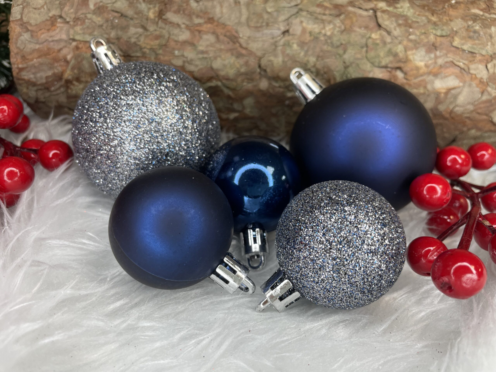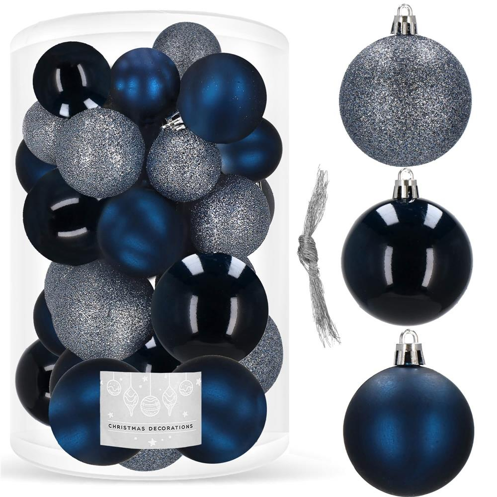 Set globuri de Craciun, 30 bucati, 3 modele, 4/5/6cm, albastru inchis