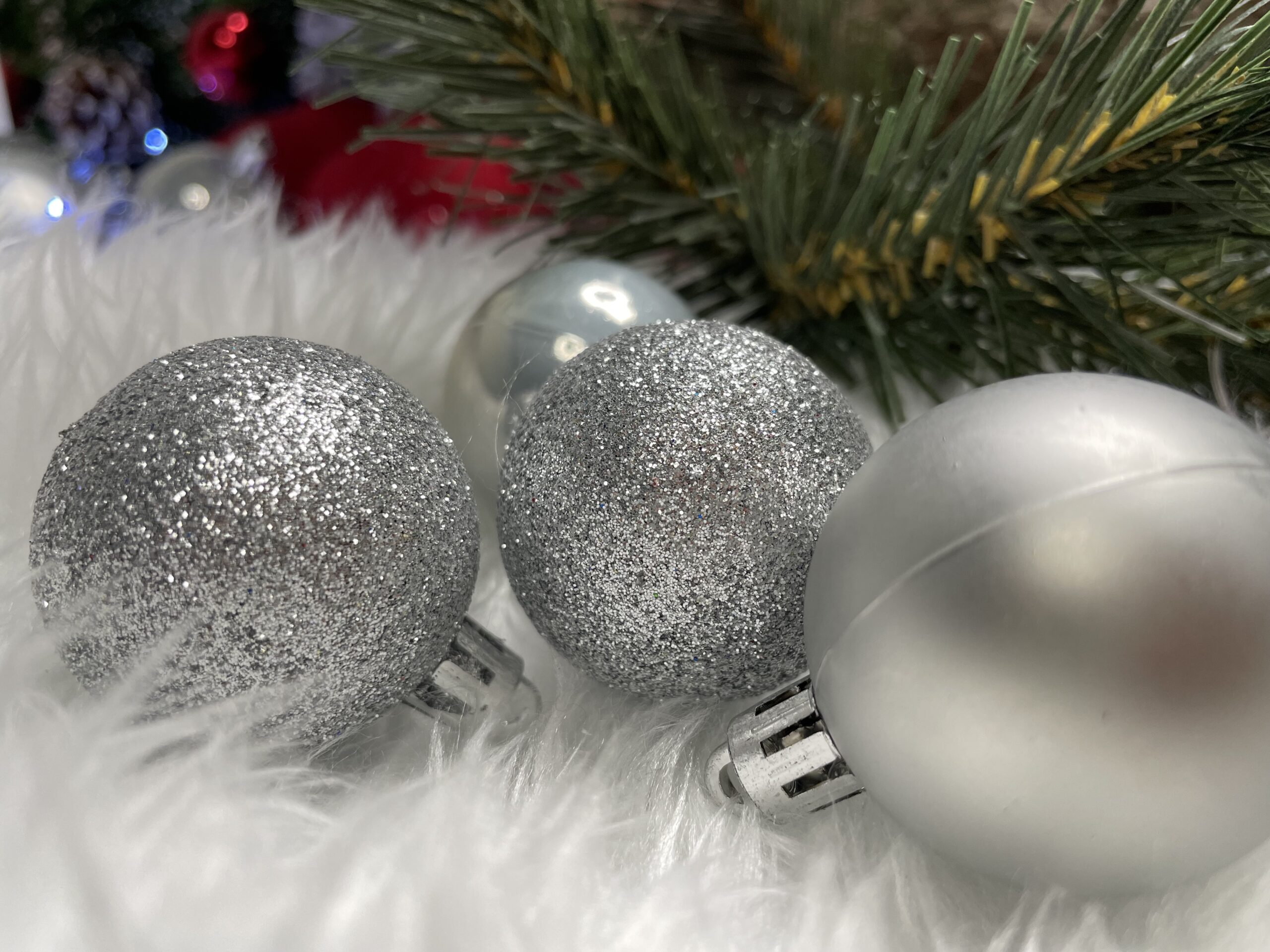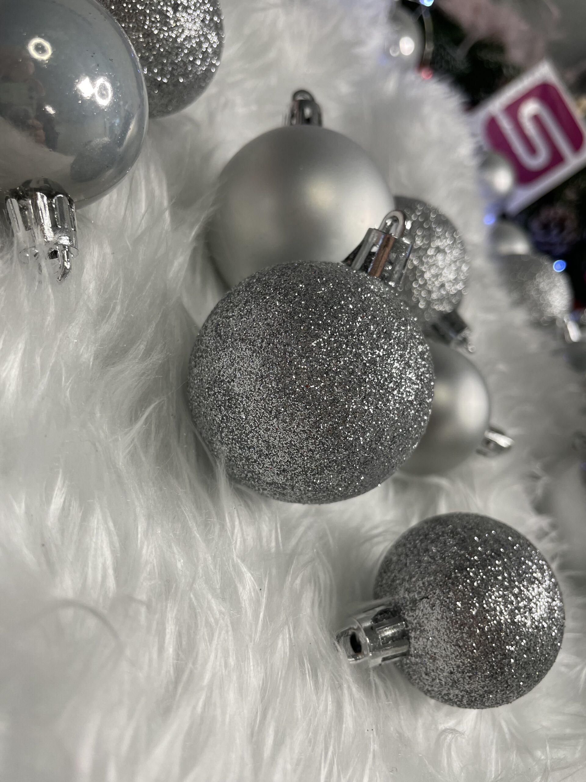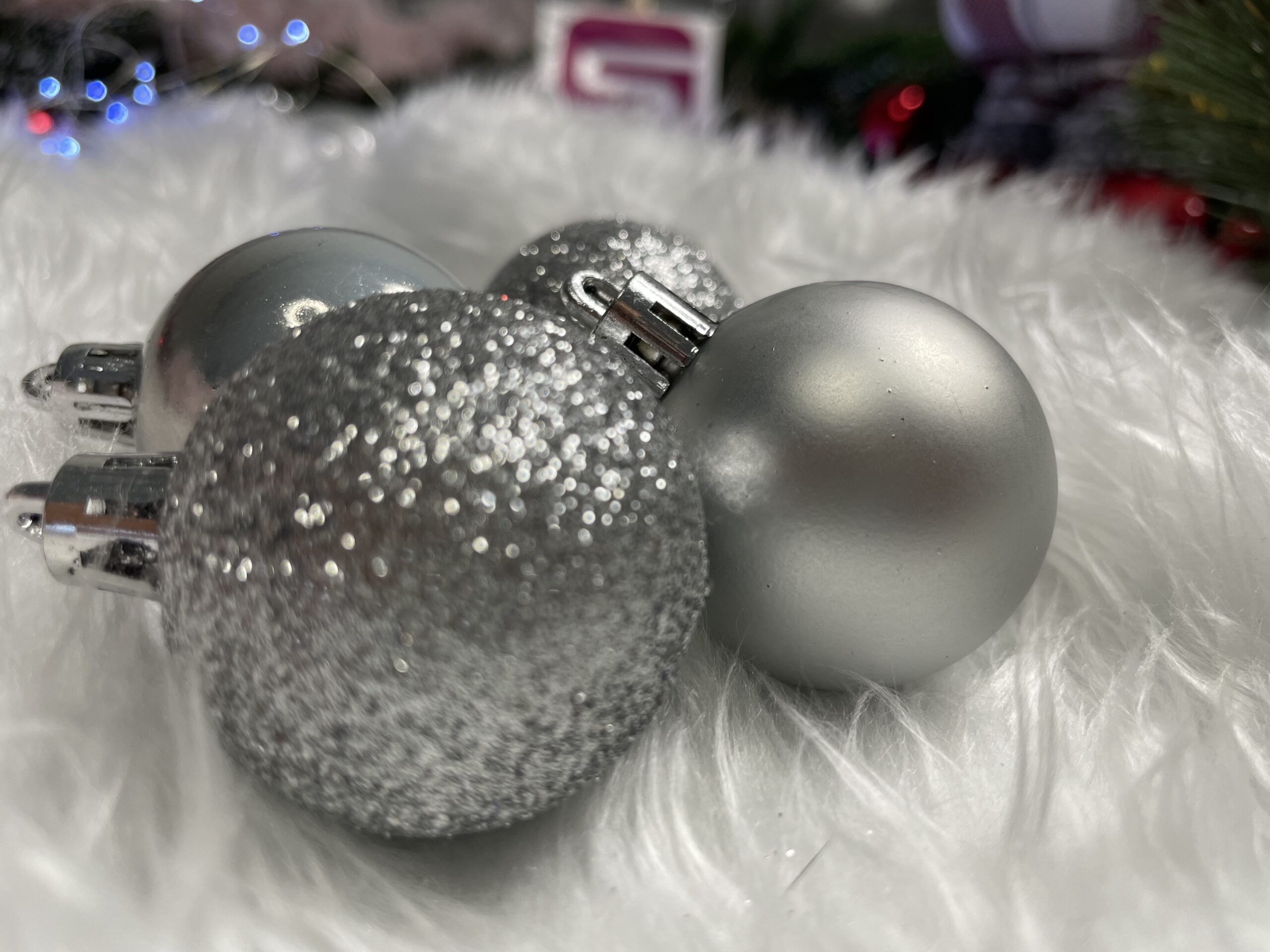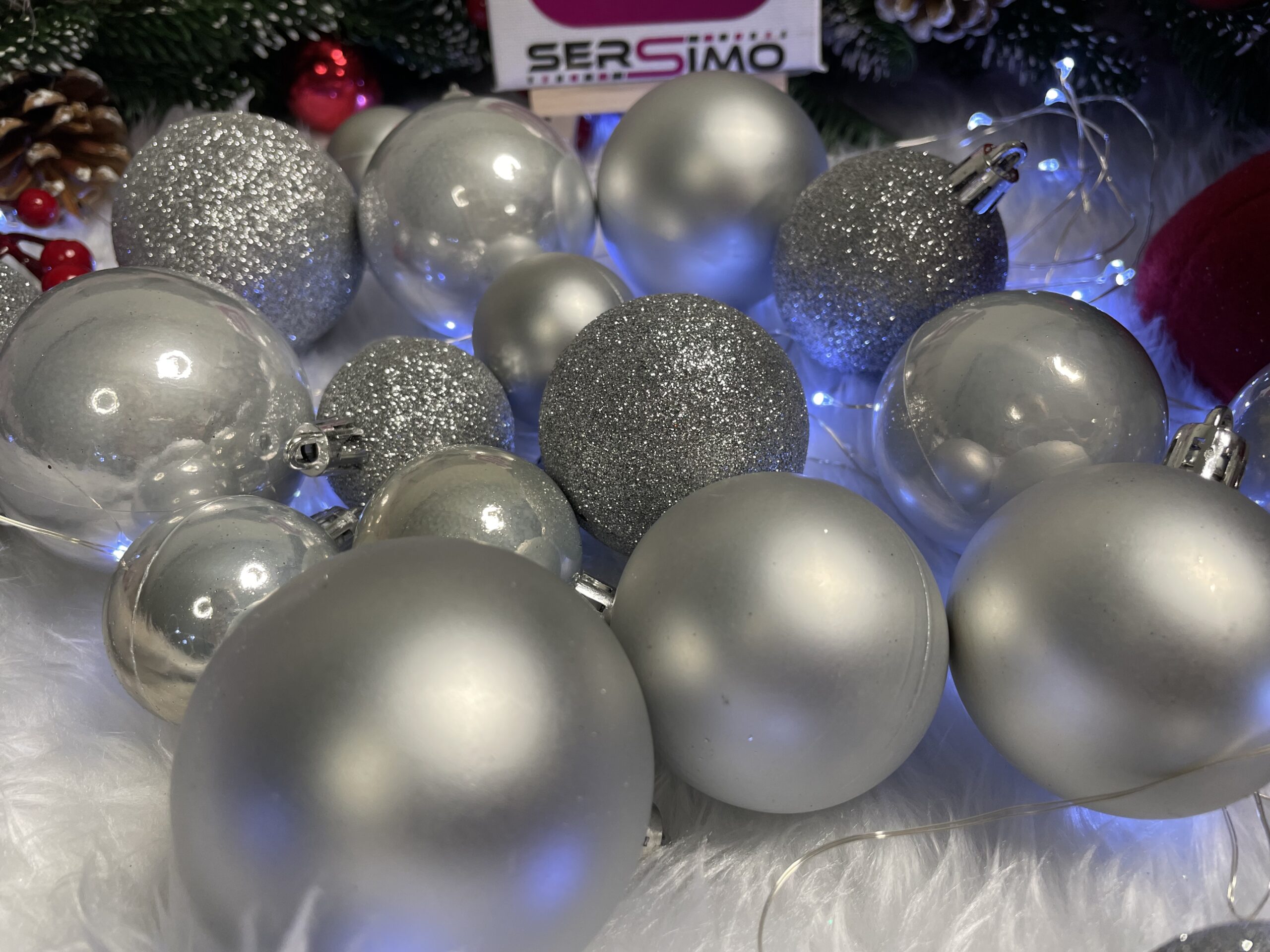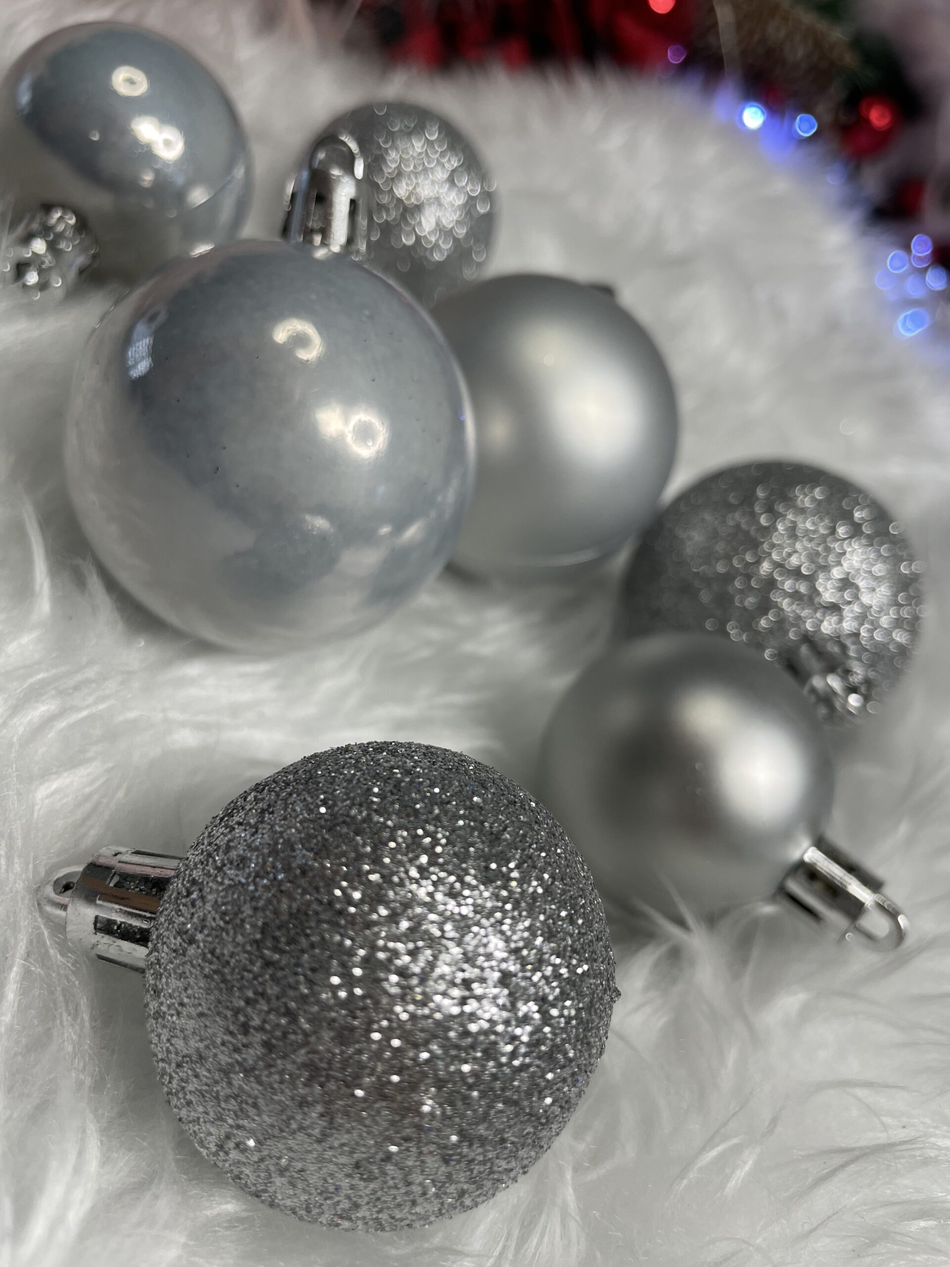 Culoare: argintiu Material: plastic Cantitate: 30 de globulete Dimensiune: 6/5/4 cm Modele: mat, sclipici, perlat Incasabil, snur pentru agatat Craciunul, ca si intreaga perioada de...