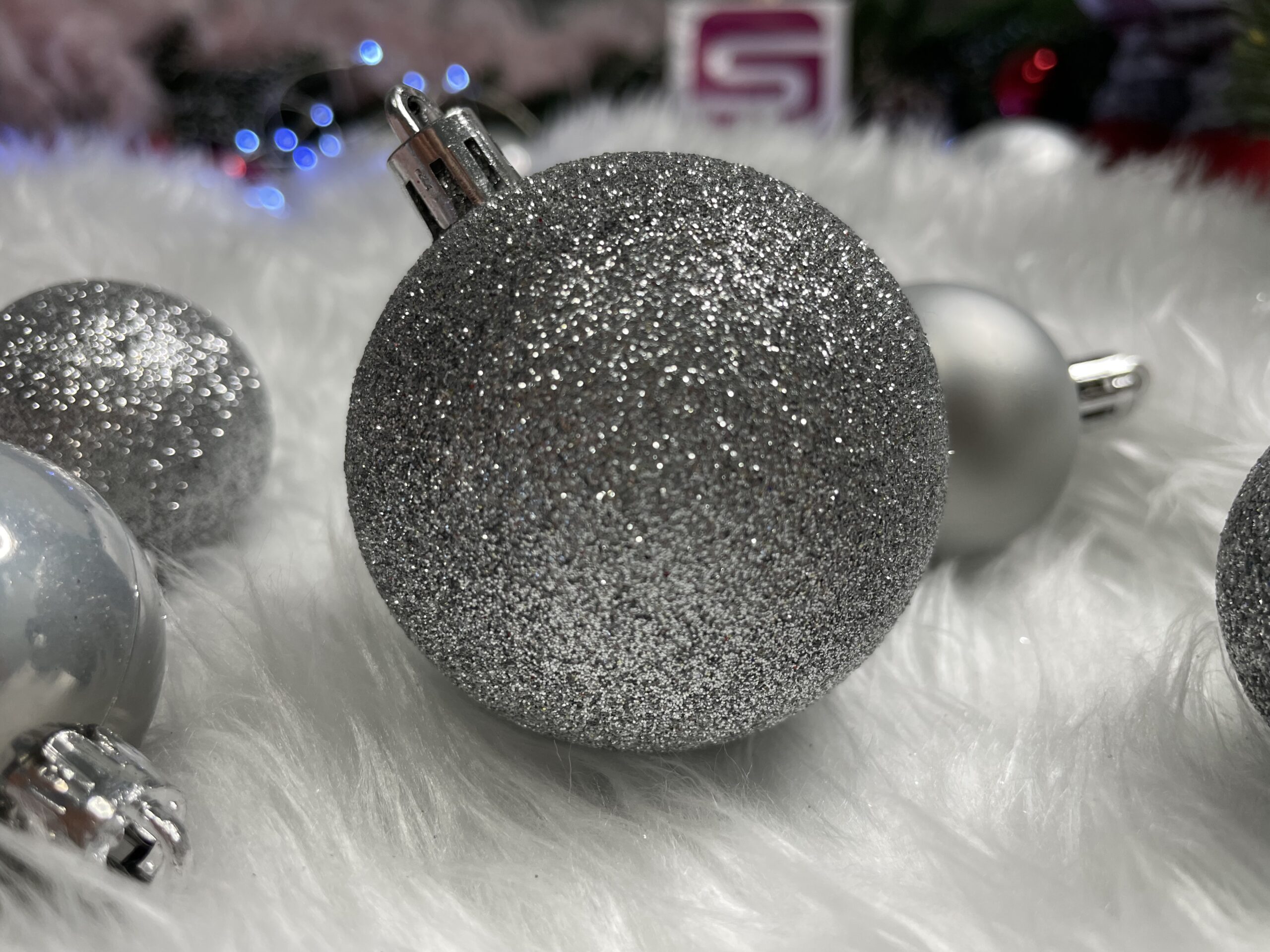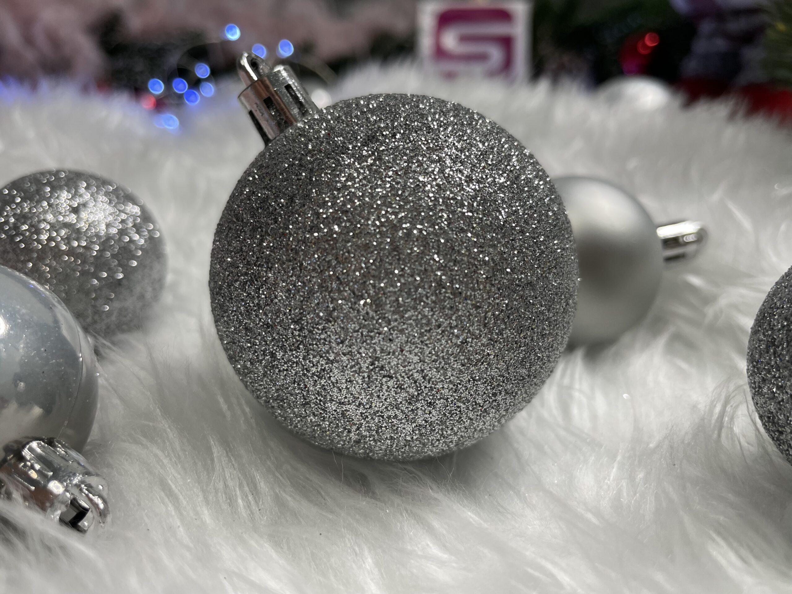 Culoare: argintiu Material: plastic Cantitate: 30 de globulete Dimensiune: 6/5/4 cm Modele: mat, sclipici,  perlat Incasabil, snur pentru agatat Craciunul, ca si intreaga perioada de iarna, este o perioada magica, plina de caldura si de o atmosfera unica, creata datorita unui spectacol de decoratiuni fabuloase si constelatii luminoase incantatoare. Designul din plastic creste siguranta datorita materialului incasabil. Alegerea lor in locul globurilor de sticla va contribui la siguranta celor mici din casa. Globuletele pentru bradul de Craciun arata la fel ca cele din sticla. Datorita suprafetei lor netede ca o oglinda si a finisajului cu sclipici, acestea reflecta lumina in mod fantastic, sporind efectul de decoratiuni sclipitoare si stralucitoare, care aduc in minte asocieri cu un peisaj de iarna rece si inzapezit. Globuletele pentru bradul de Craciun va vor permite sa va decorati casa de Craciun intr-un mod nelimitat. Puteti crea din ele:  Aranjamente unice pentru bradul de Craciun  Aranjamente de masa si de pervaz  Decoratiuni pentru usi si ornamente pentru rame de usa  Cadouri practice de Craciun pentru cei dragi  Impachetari unice pentru cadouri - folositi mai multe in loc de funda