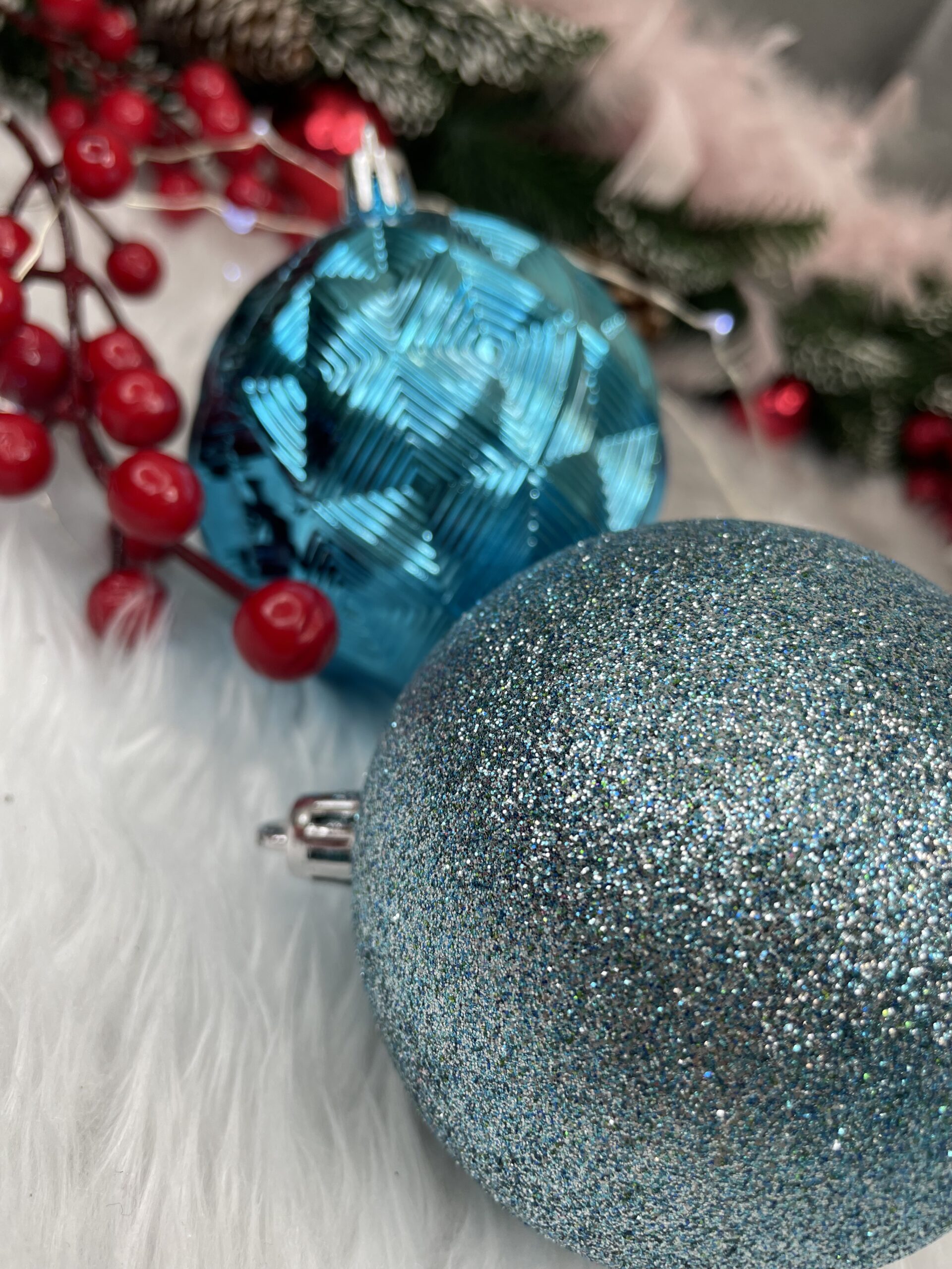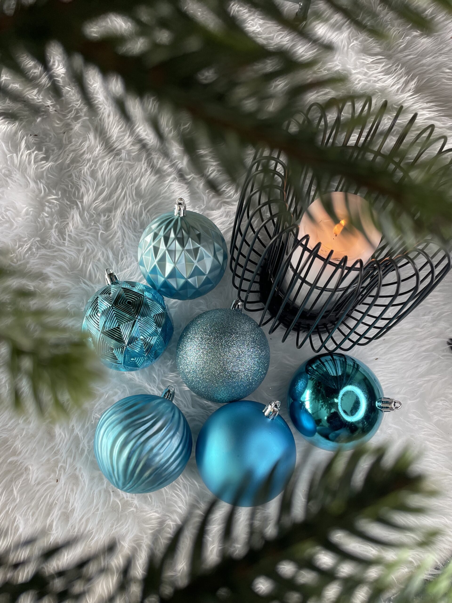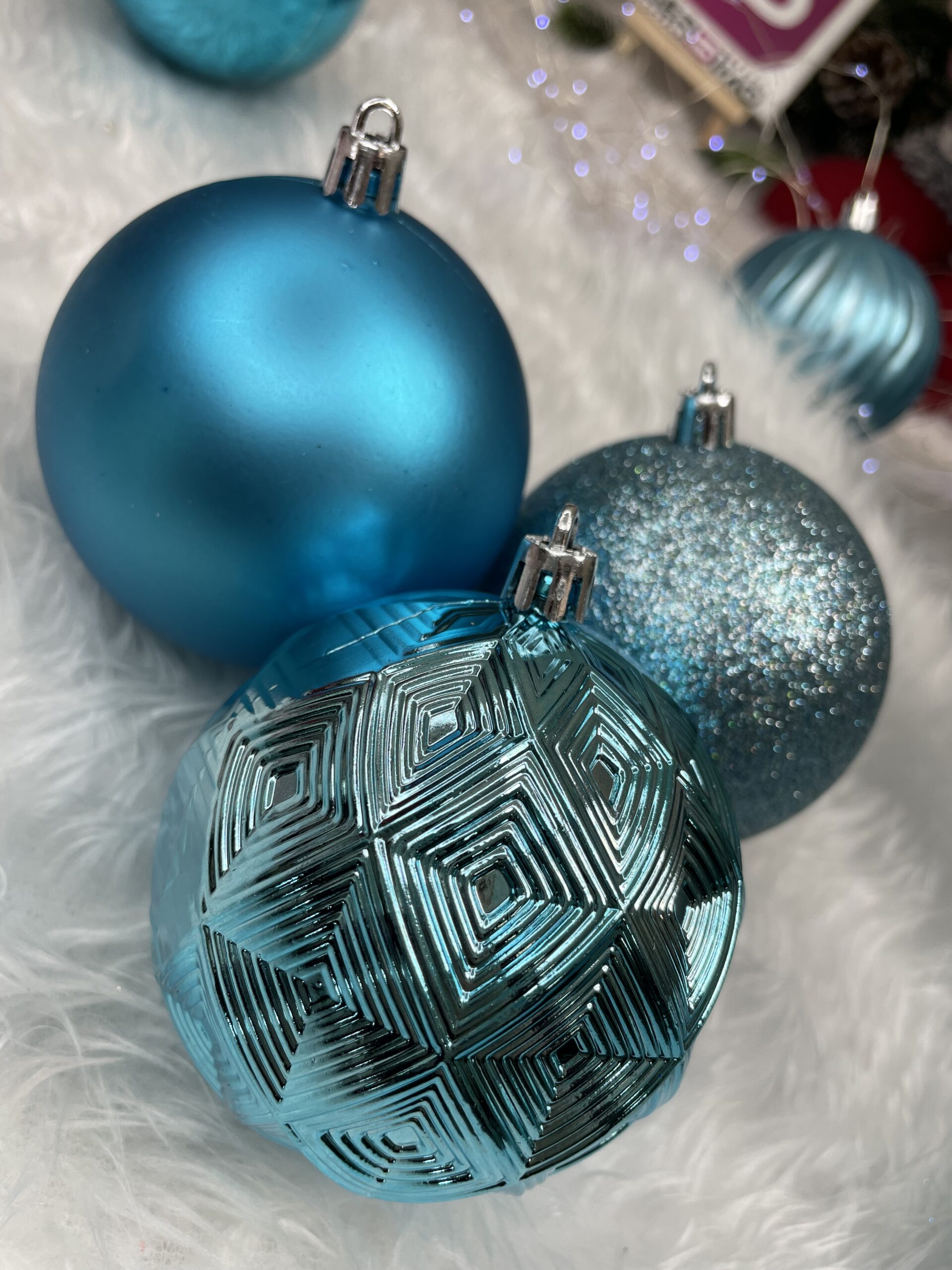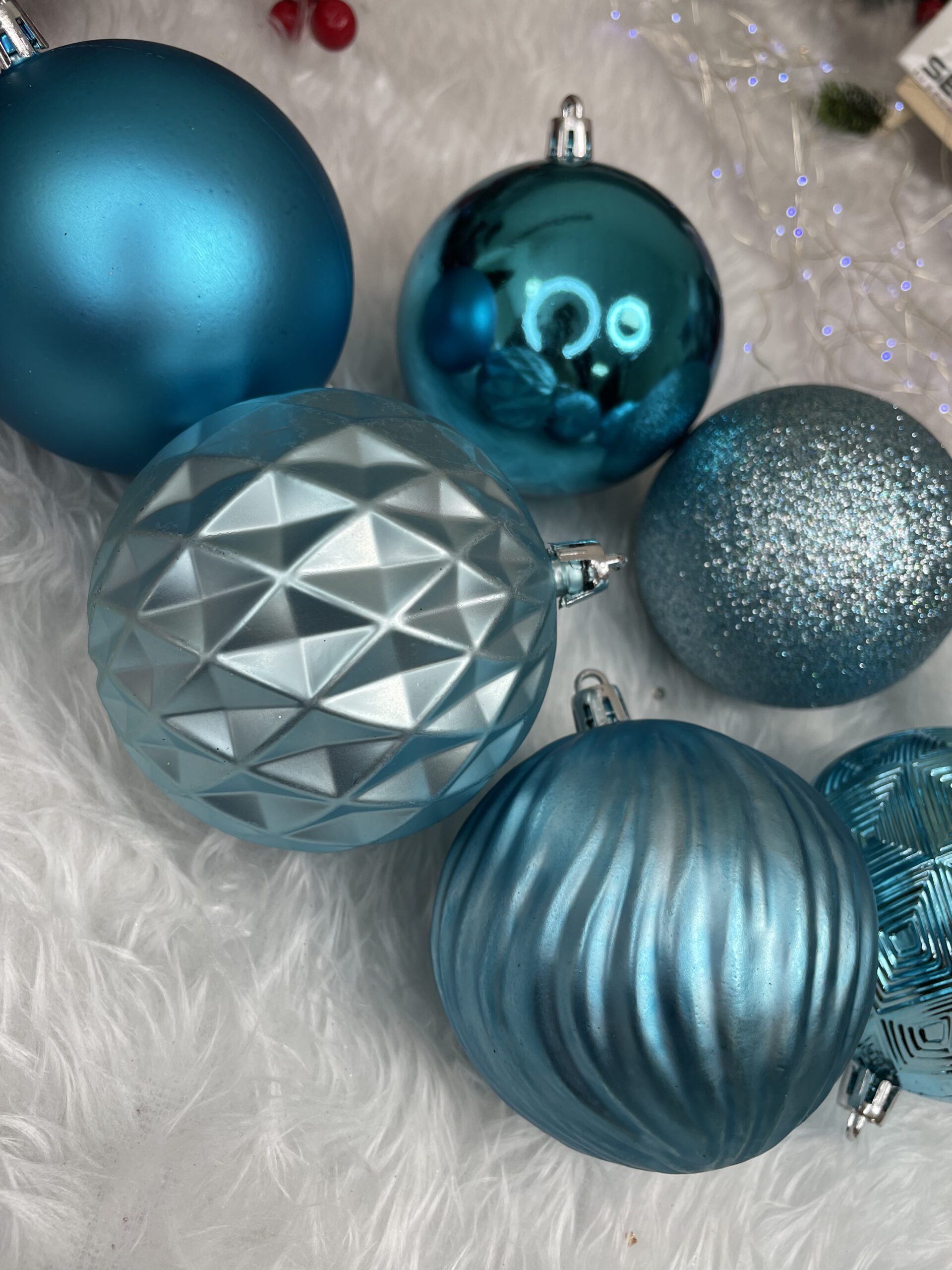 Set globuri de Craciun, 30 bucati, 6 modele, 8cm, albastru