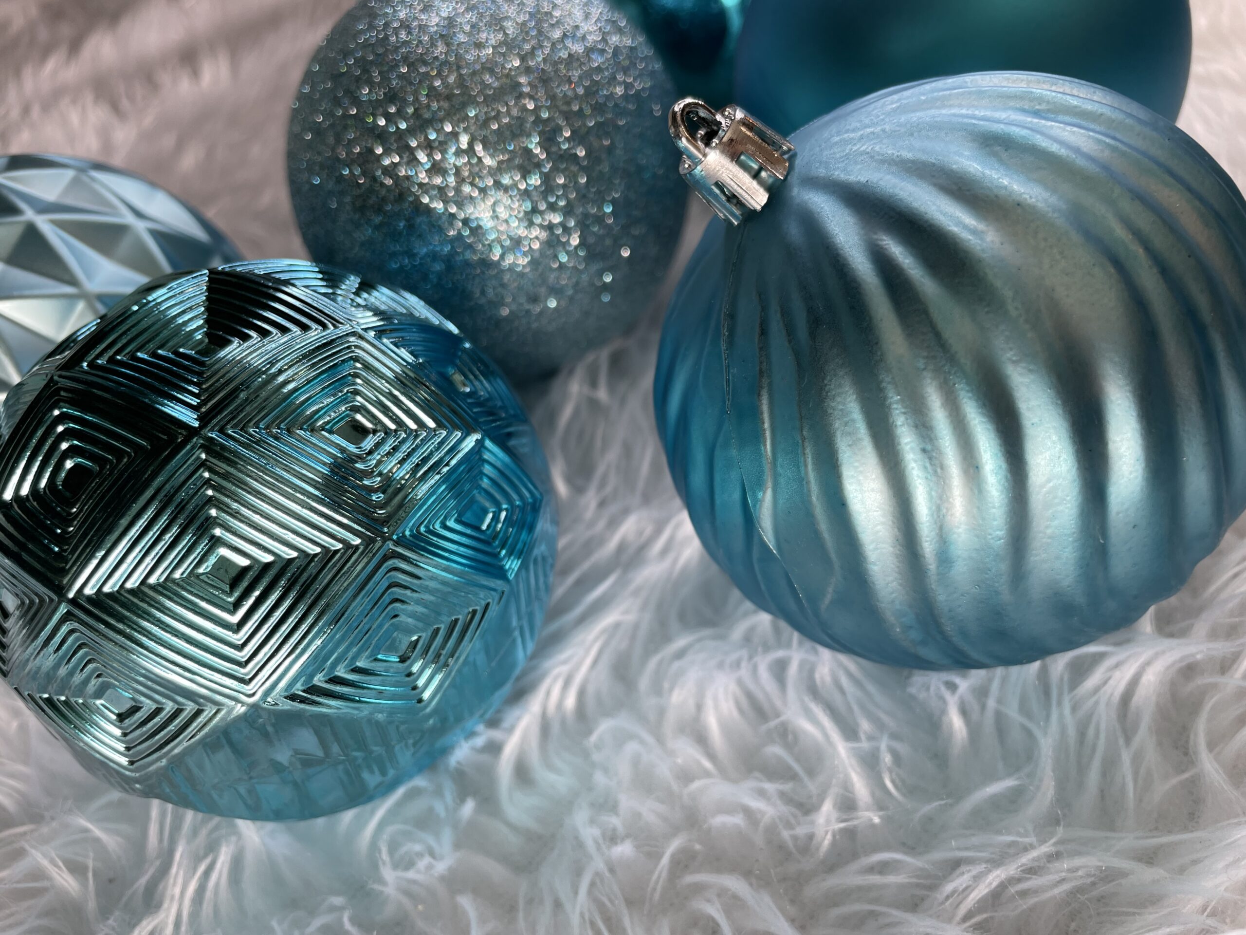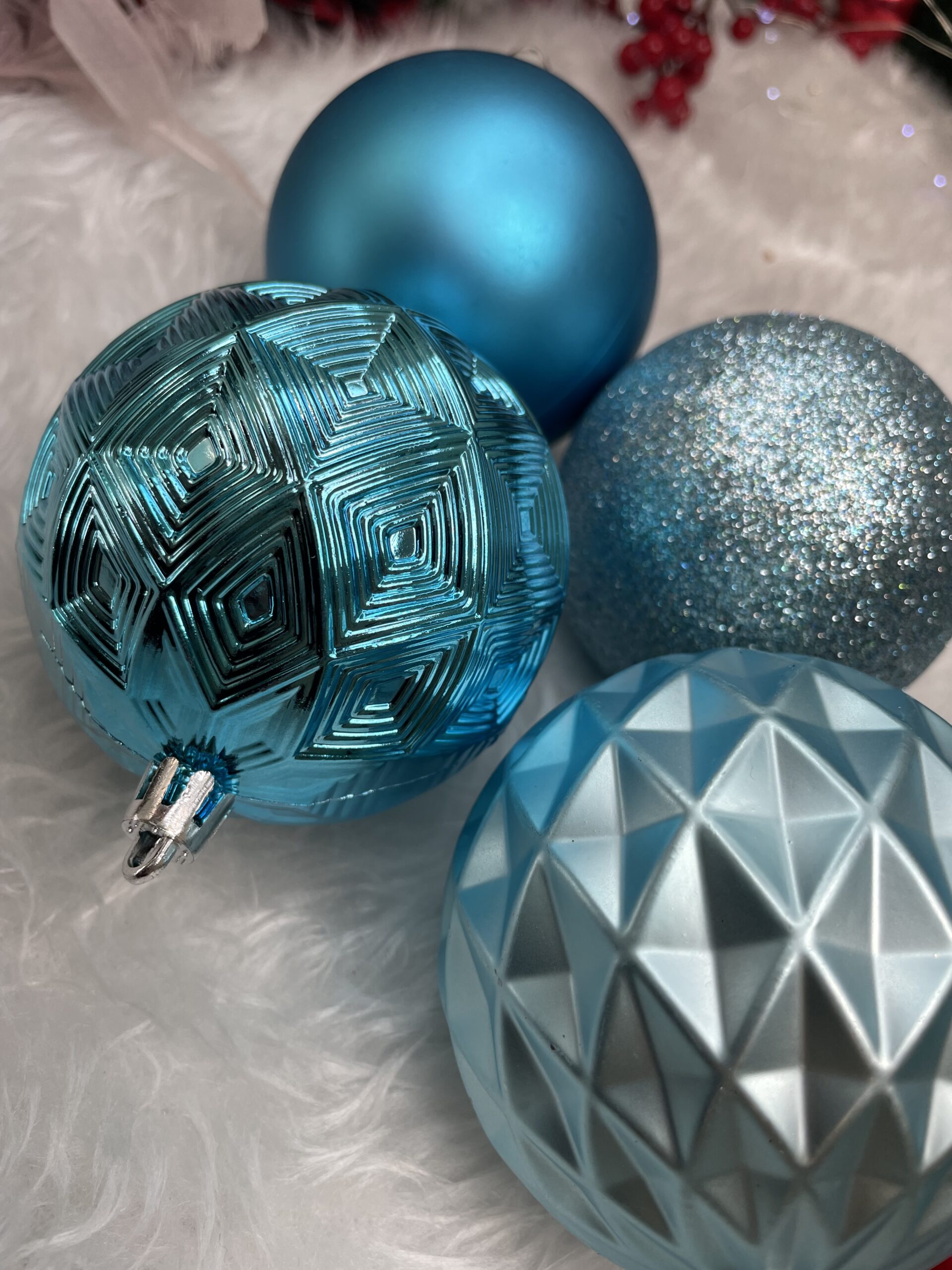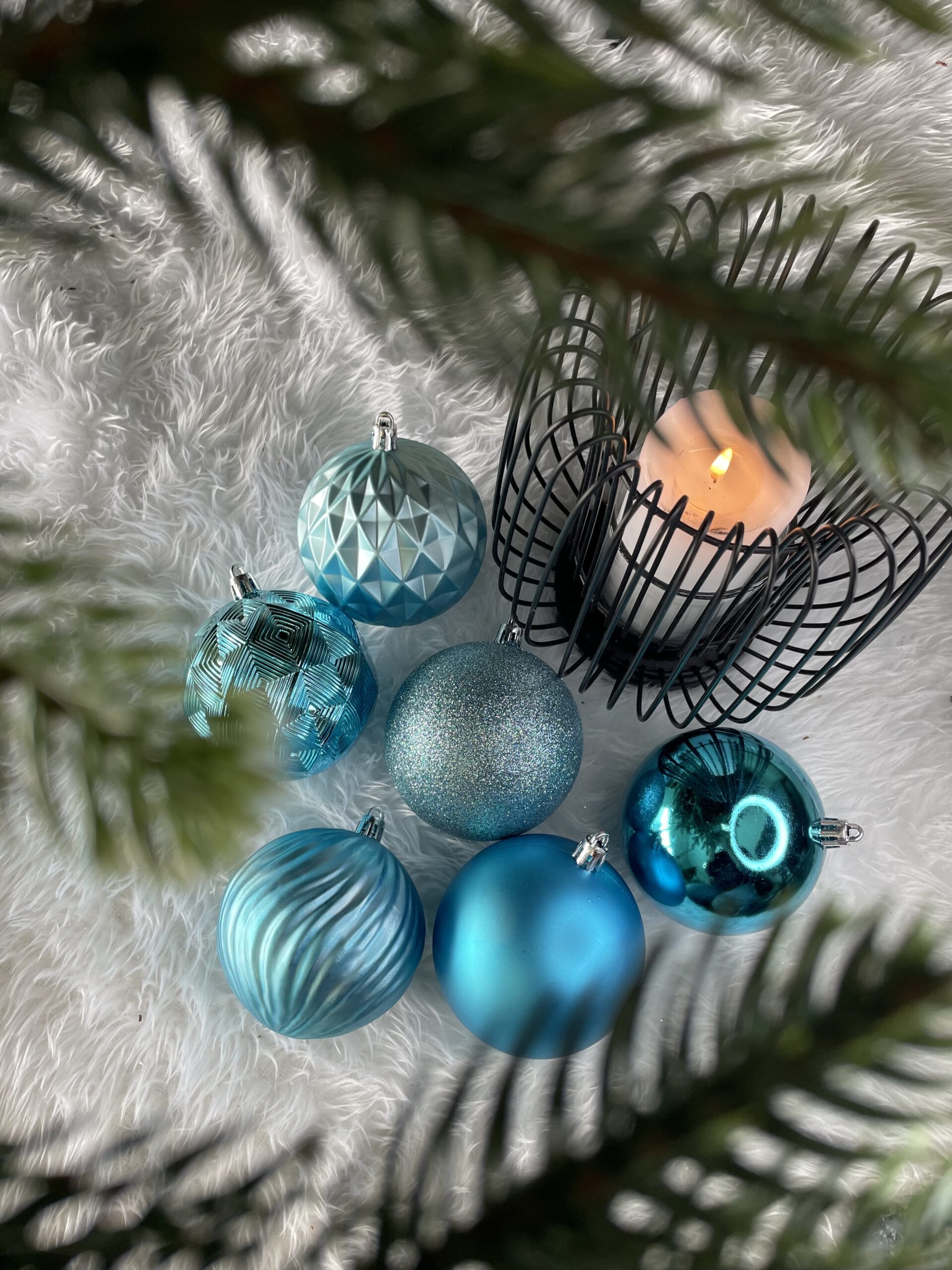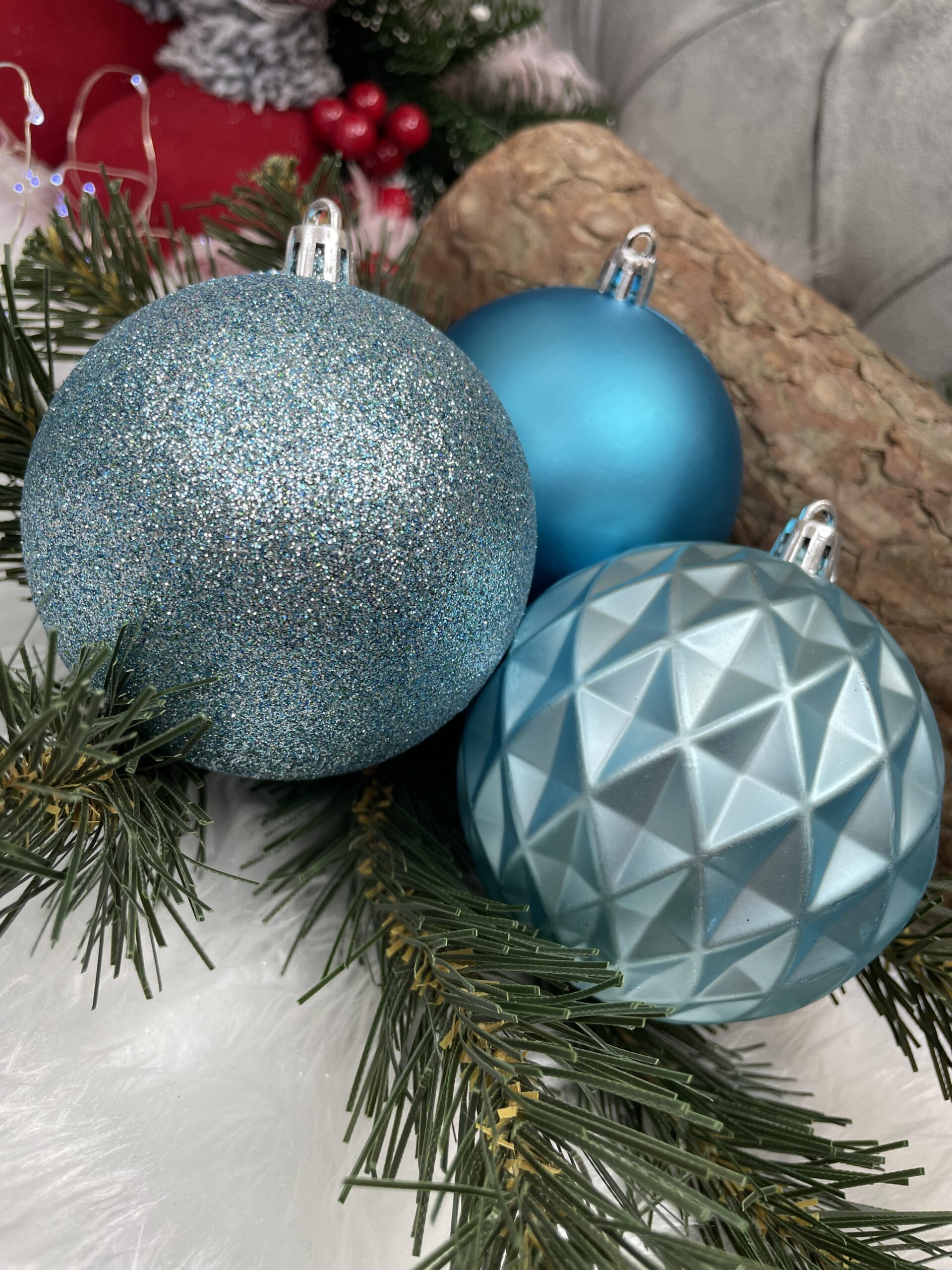 Set globuri de Craciun, 30 bucati, 6 modele, 8cm, albastru