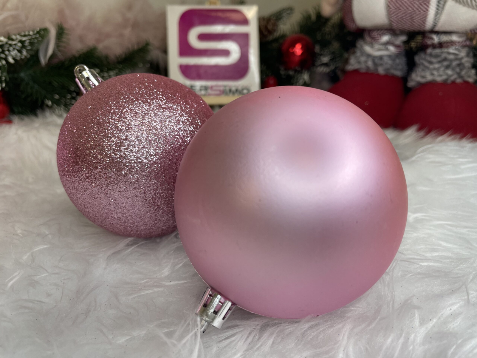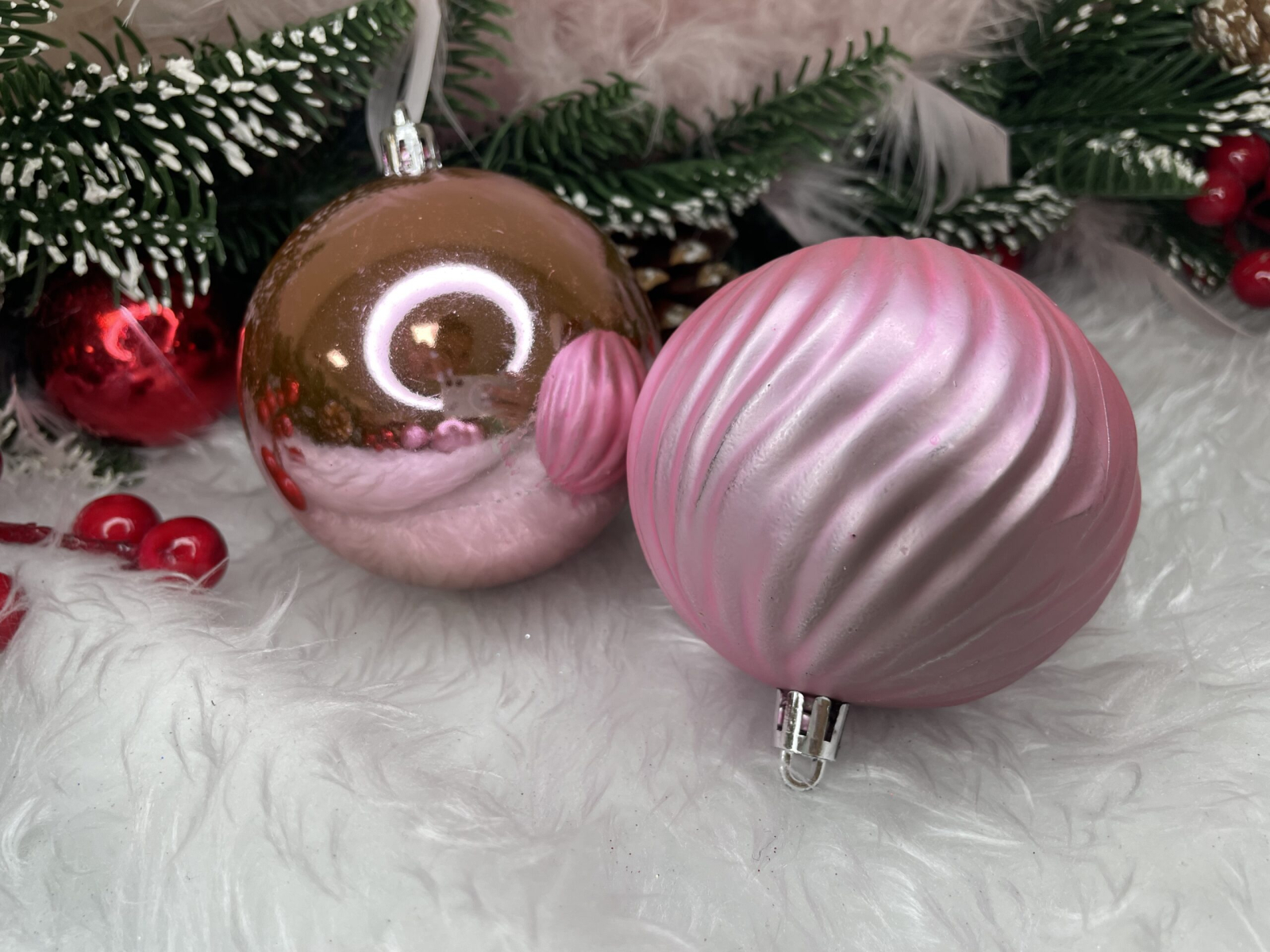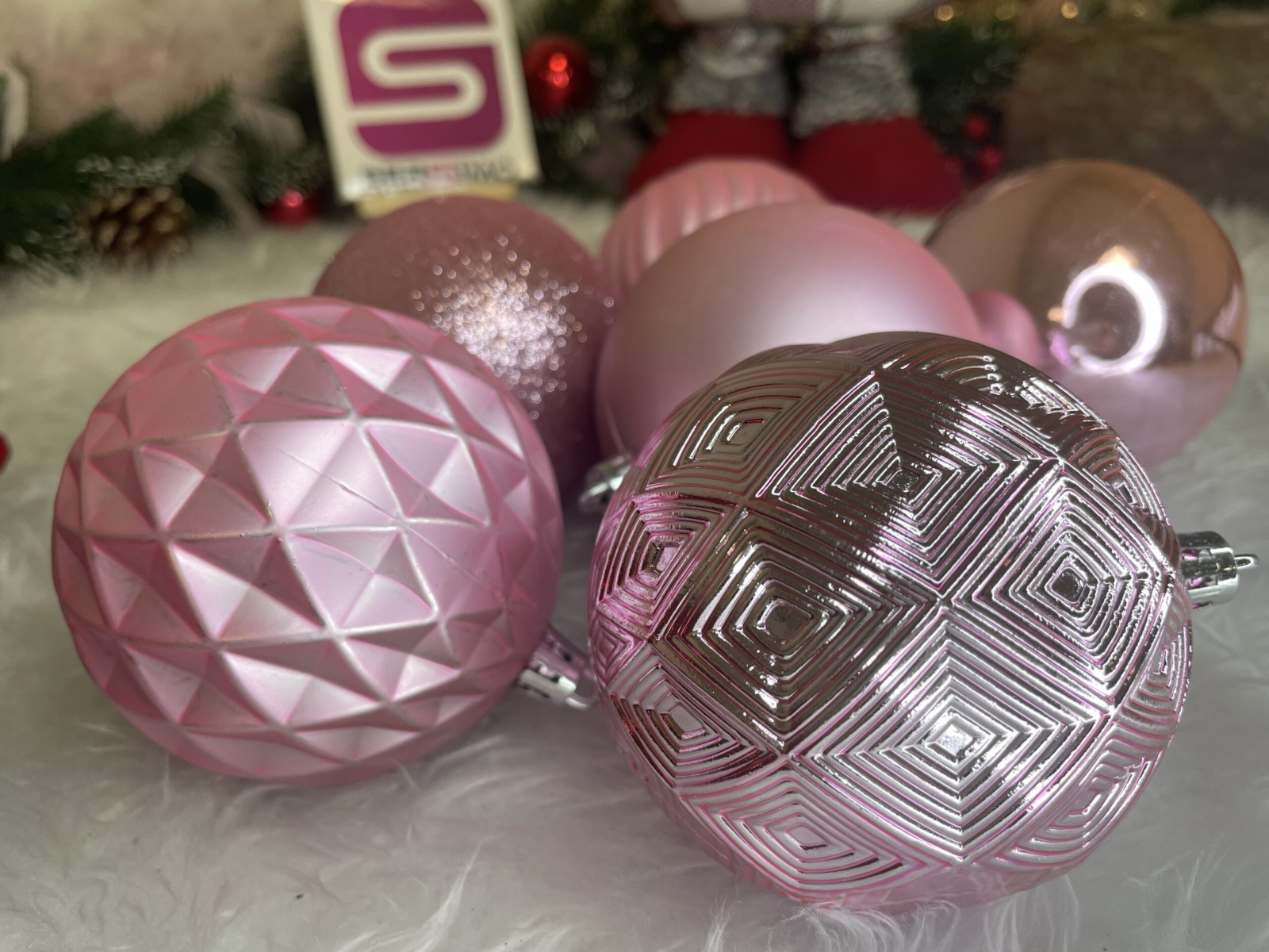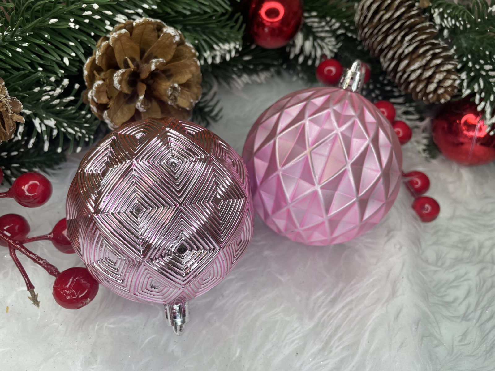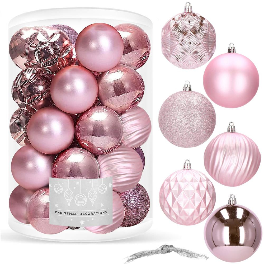 Set globuri de Craciun, 30 bucati, 6 modele, 8cm, roz