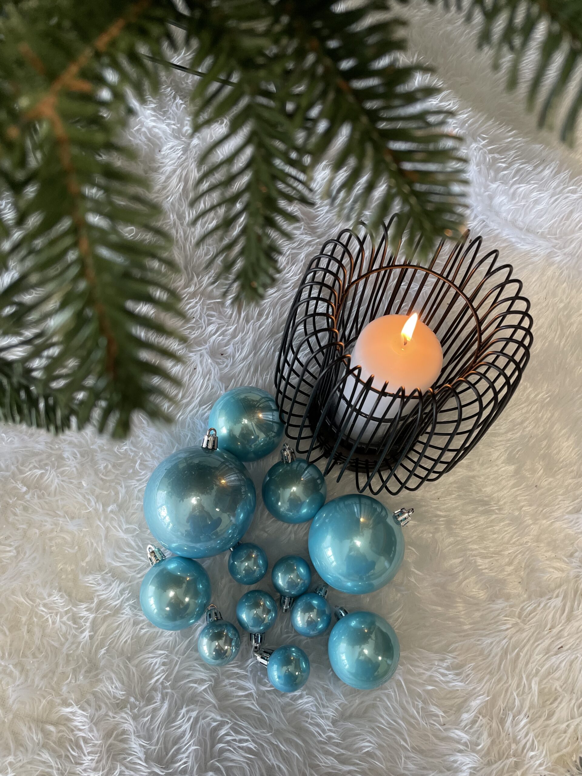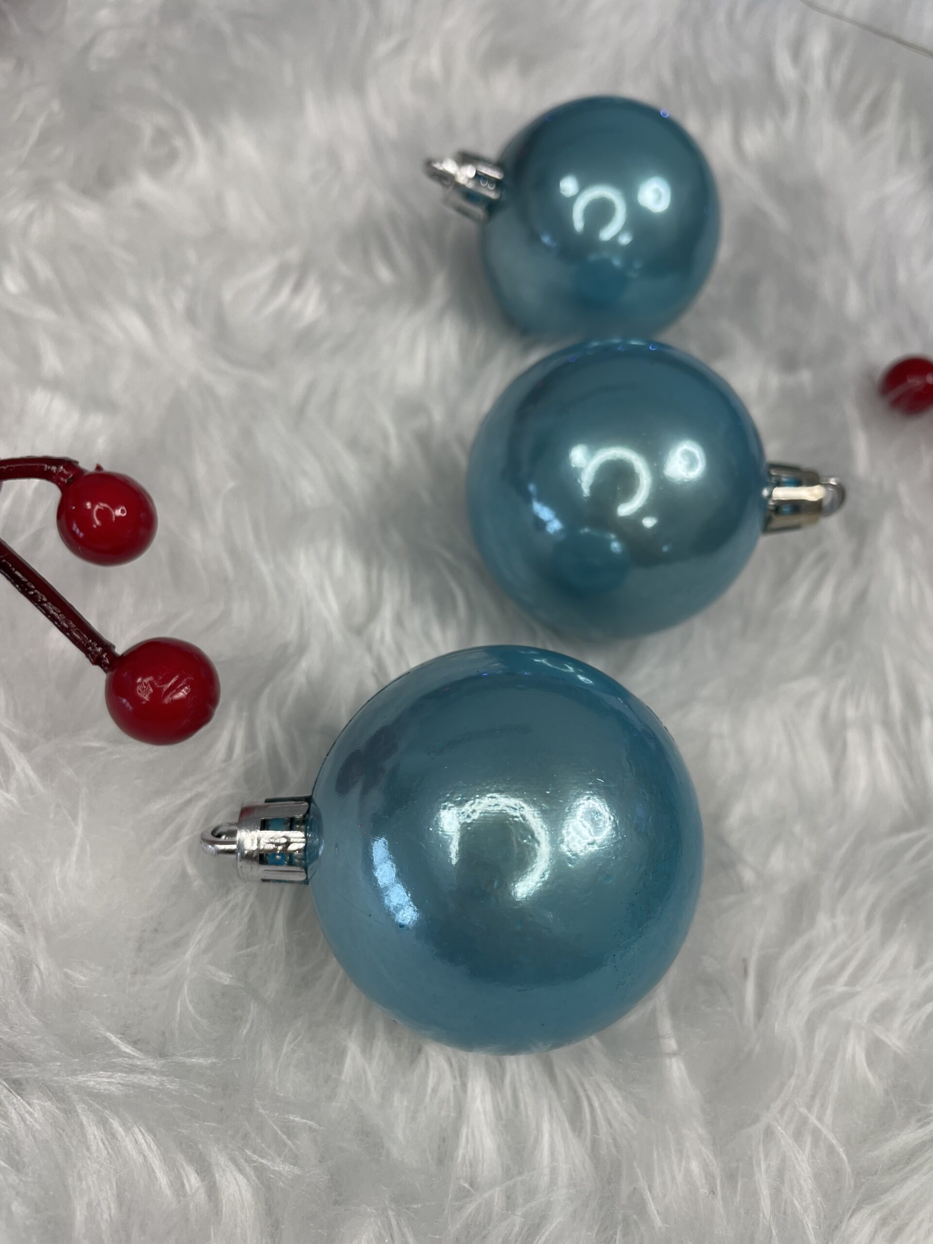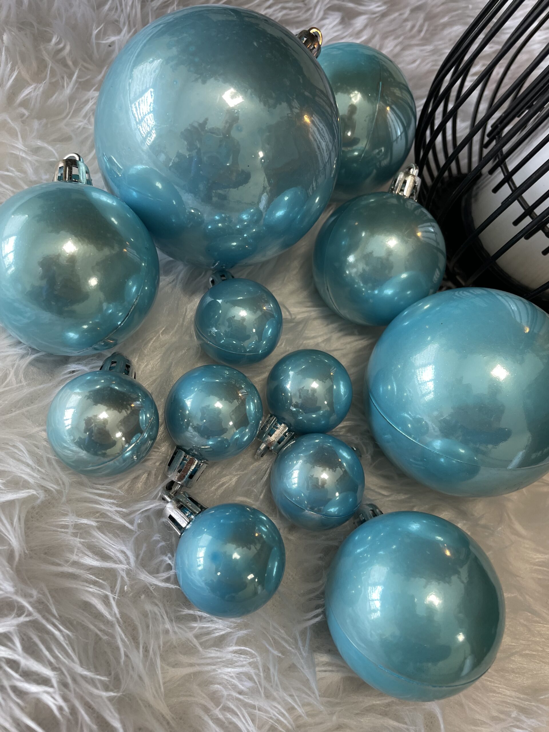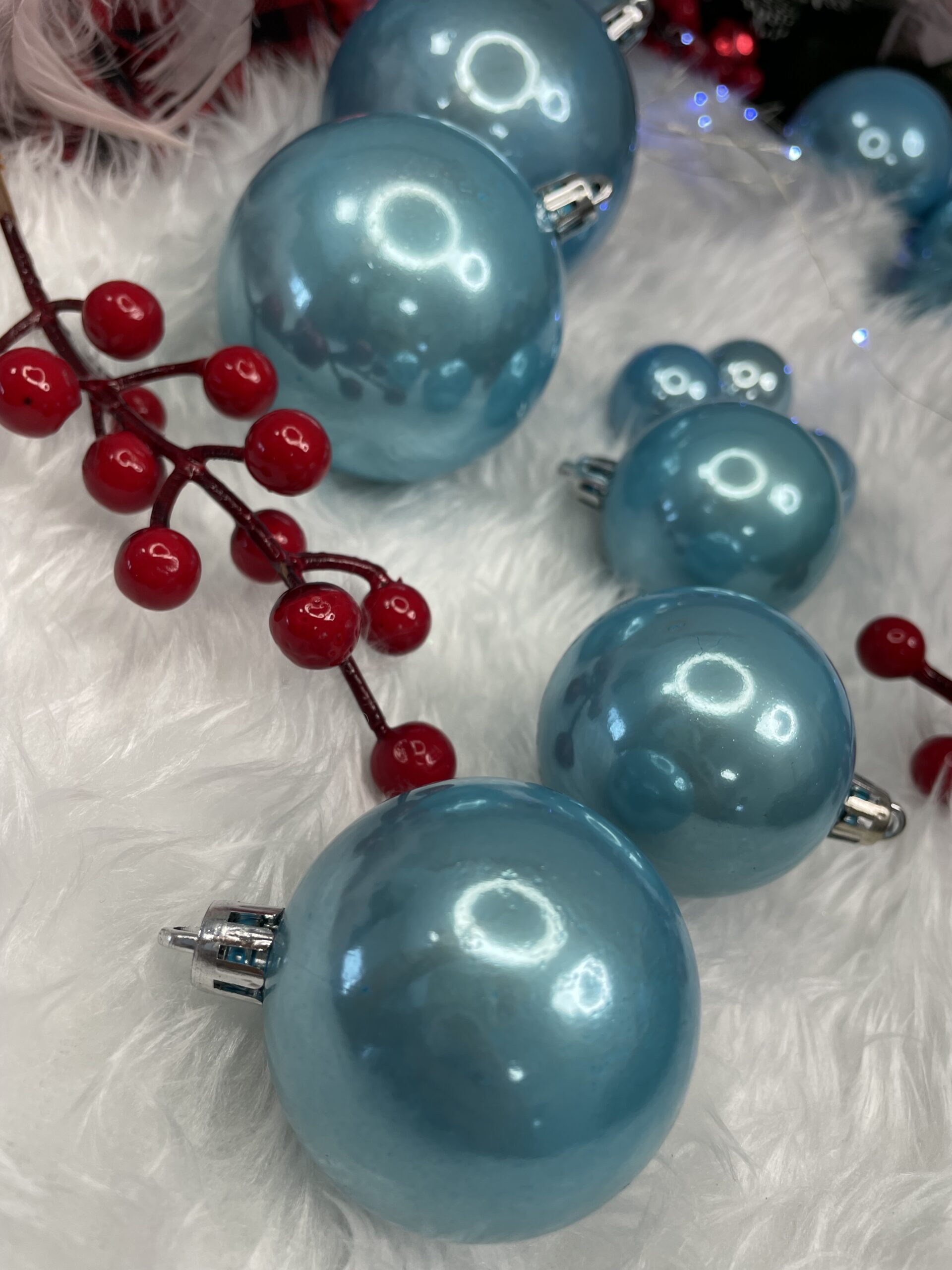 Globurile dintr-un set cu o singura culoare va vor permite sa creati un decor minunat pentru brad. Arata frumos in timpul zilei si dupa intuneric, insotite de iluminat festiv. Setul include snururi care va permit sa agatati globurile rapid si usor in locul dorit. Designul din plastic creste siguranta datorita materialului incasabil. Alegerea lor in locul globurilor de sticla va contribui la siguranta celor mici din casa. Diversele dimensiuni va permit sa creati modele inedite de aranjare a bradului de Craciun. Culoare: albastru perla Material: plastic Cantitate: 37 bucati globuri (+/- 1 bucata) Setul include urmatoarele globuri Mini 10x - 3 cm Mic 10x - 5 cm Mediu 8x - 6 cm Mare 5x - 7 cm Maxi 4x - 8 cmAtentie! Numarul de piese din set poate varia + - 1 buc.