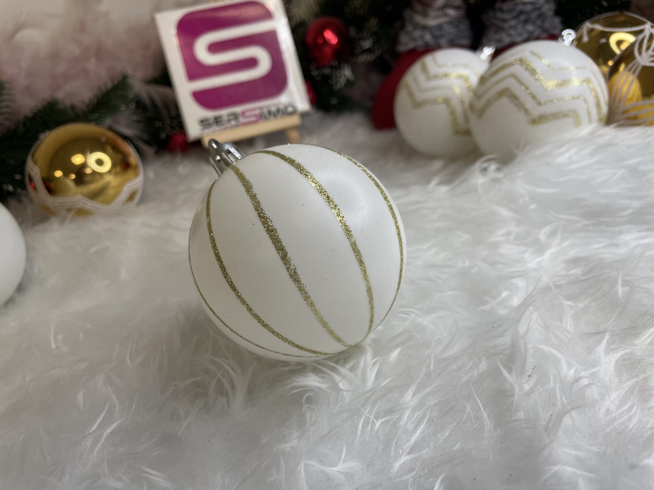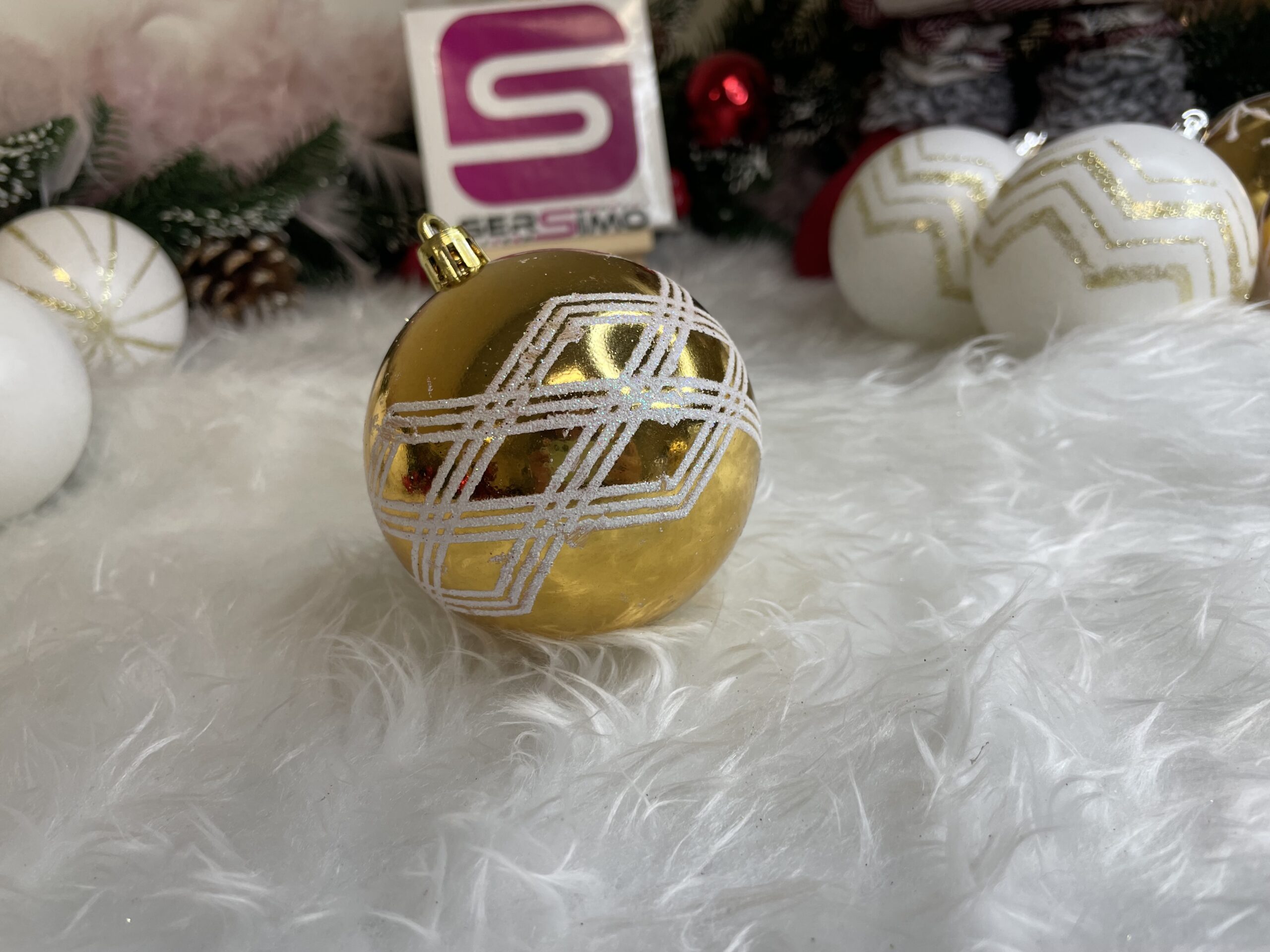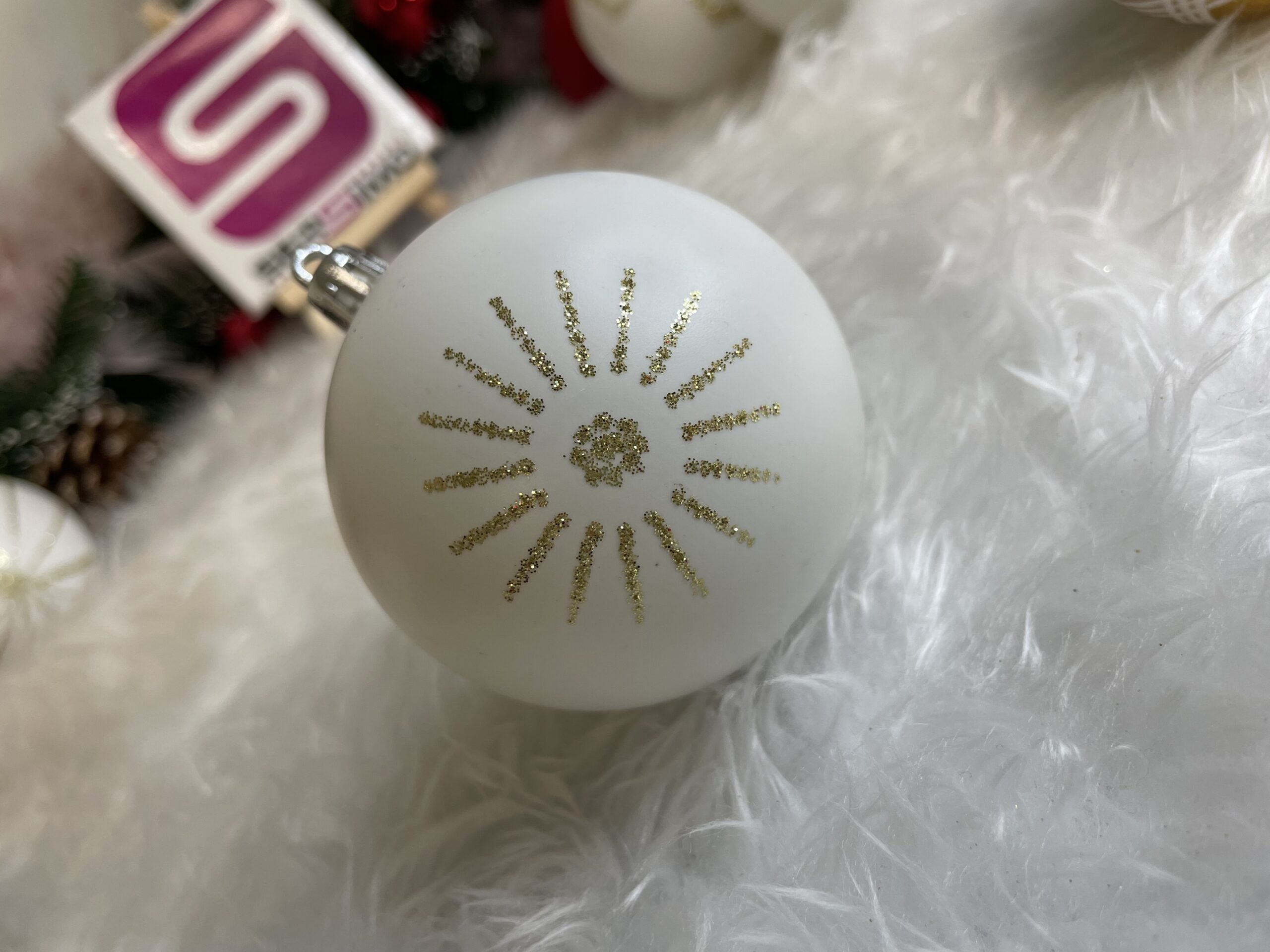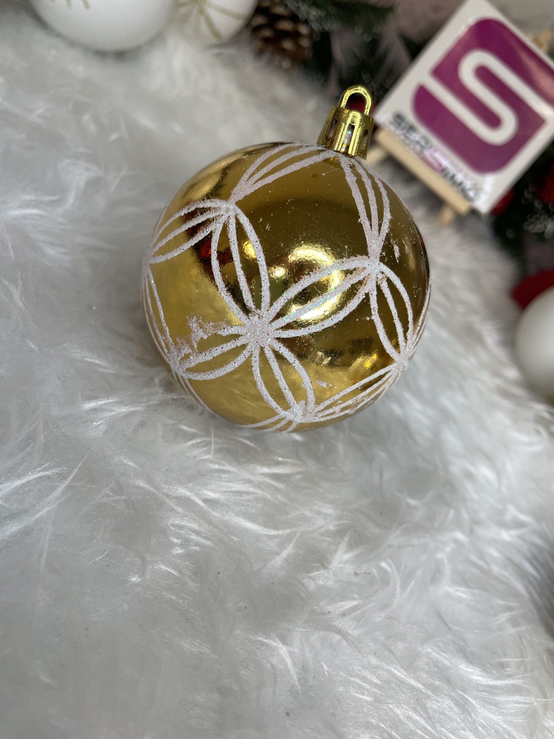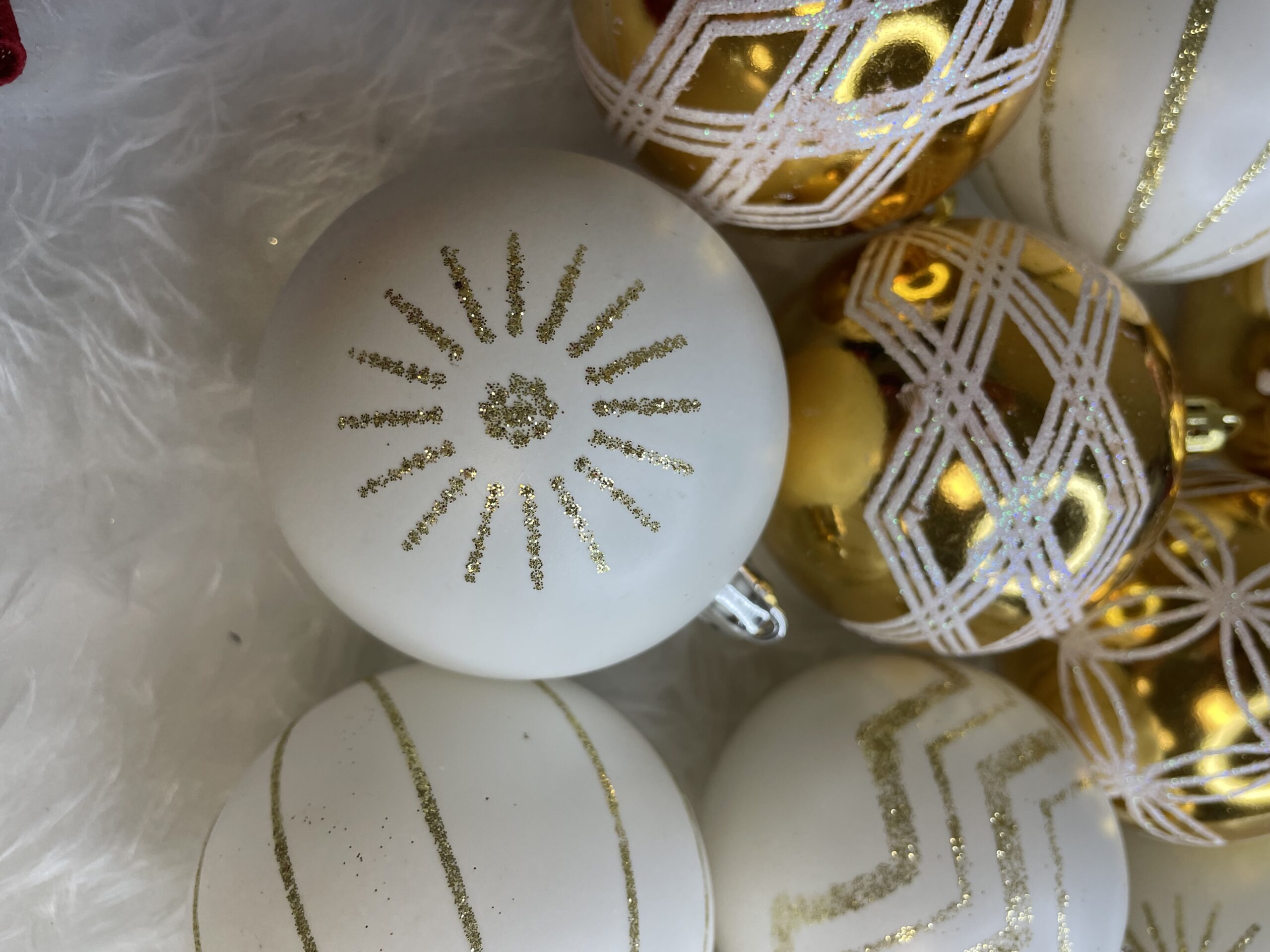 Set globuri de Craciun cu modele de sarbatori, 30 bucati, 5cm, alb auriu