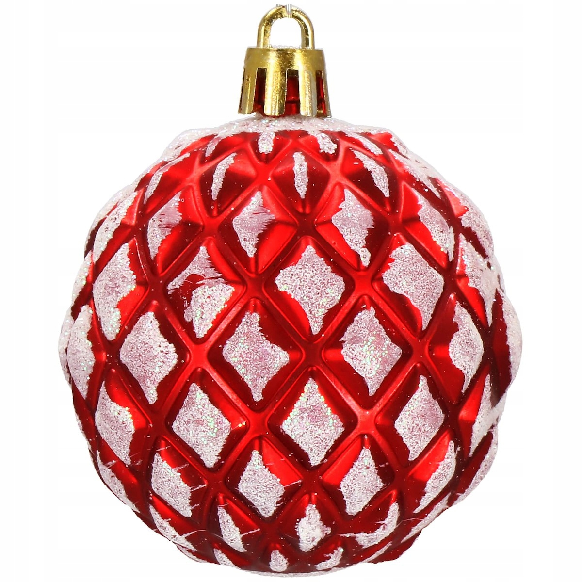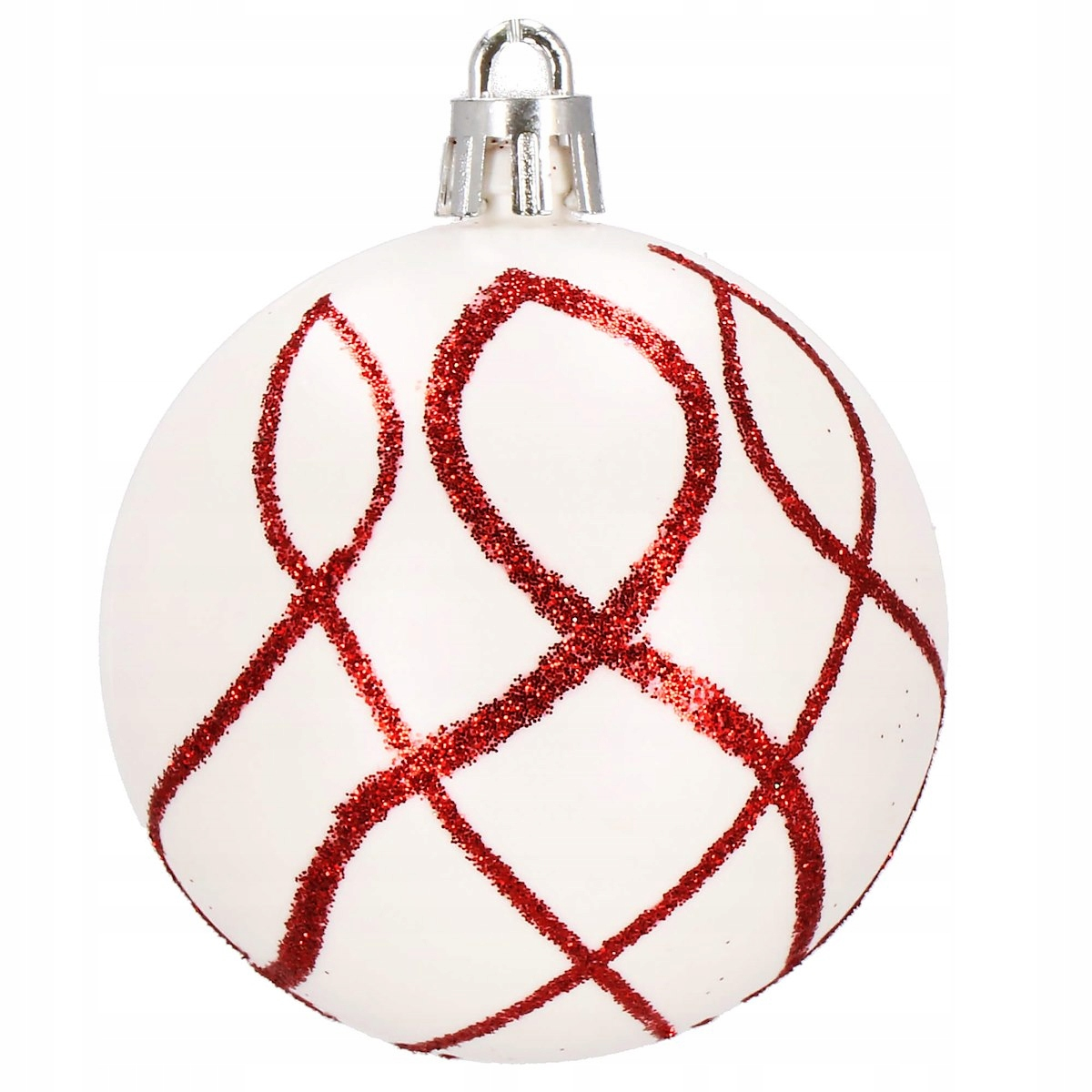 Set globuri de Craciun cu modele de sarbatori, 30 bucati, 6cm, alb rosu