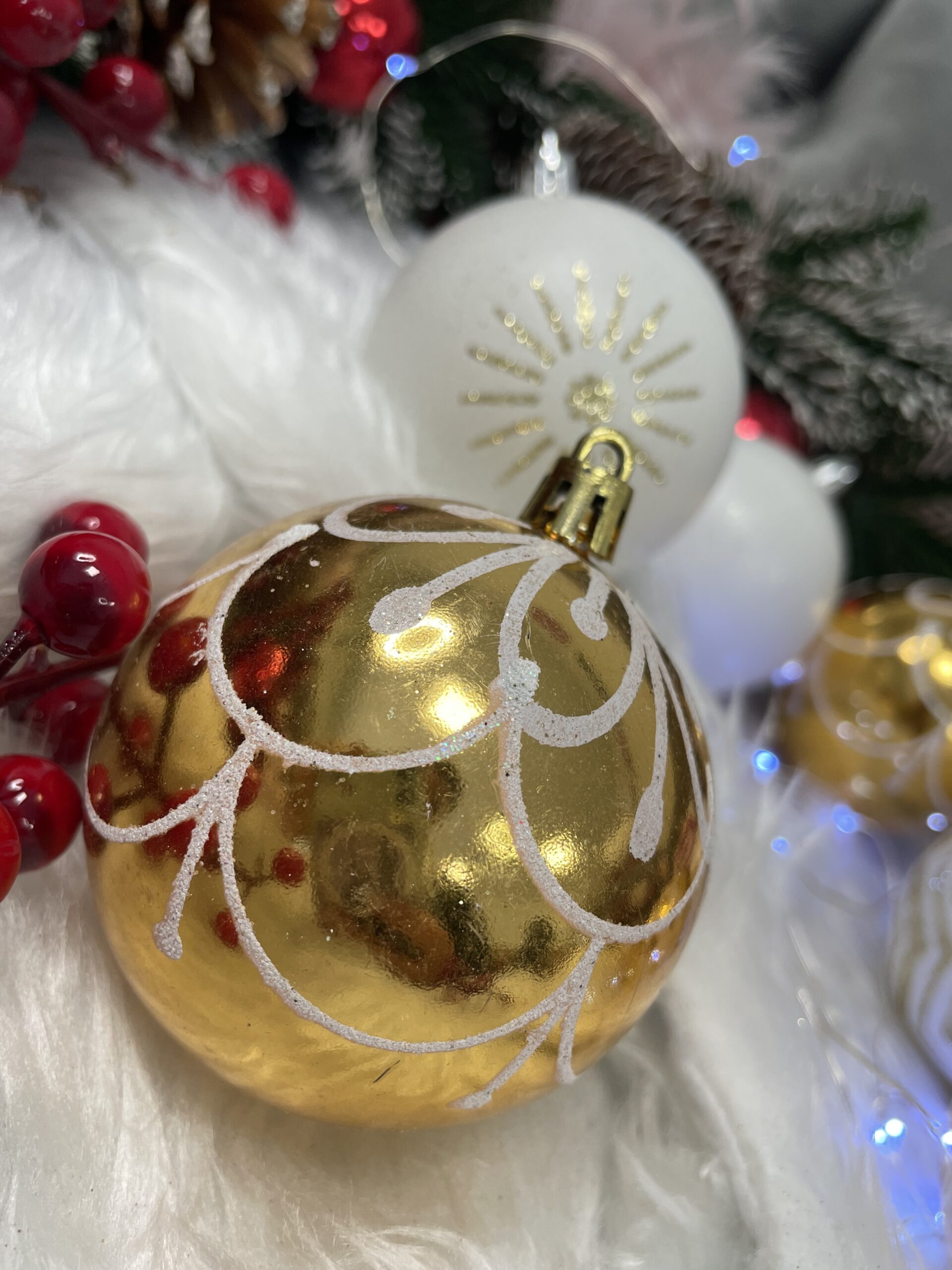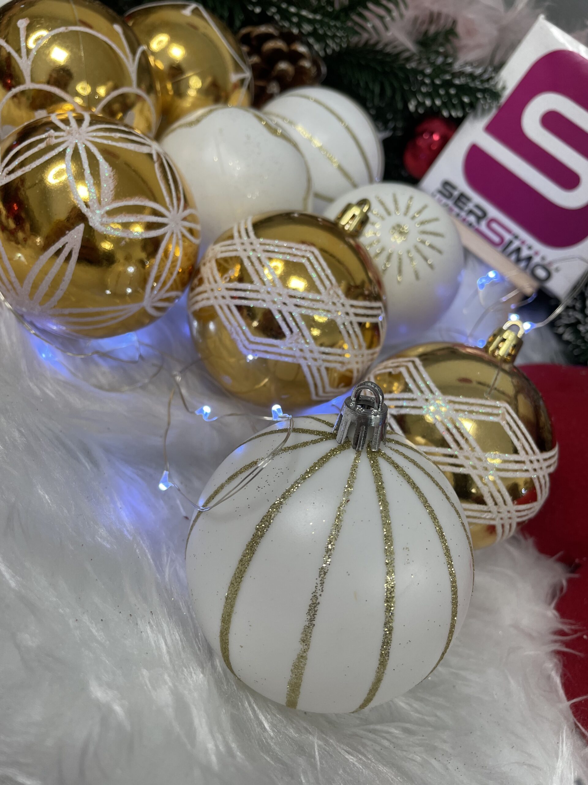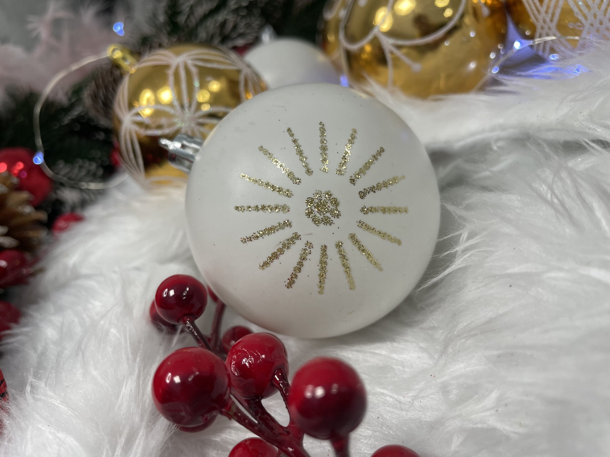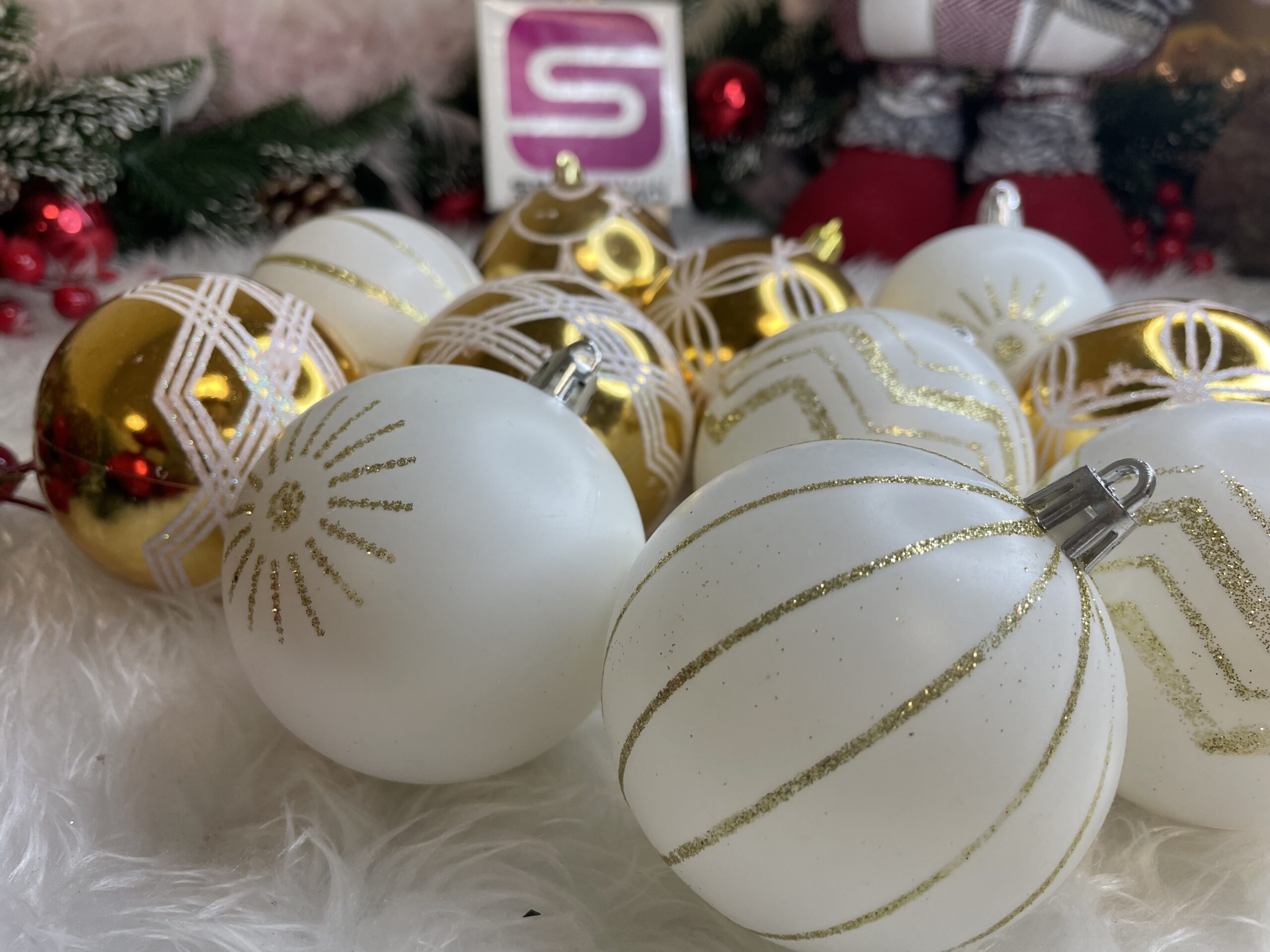 Set globuri de Craciun cu modele de sarbatori, 30 bucati, 7cm, alb auriu