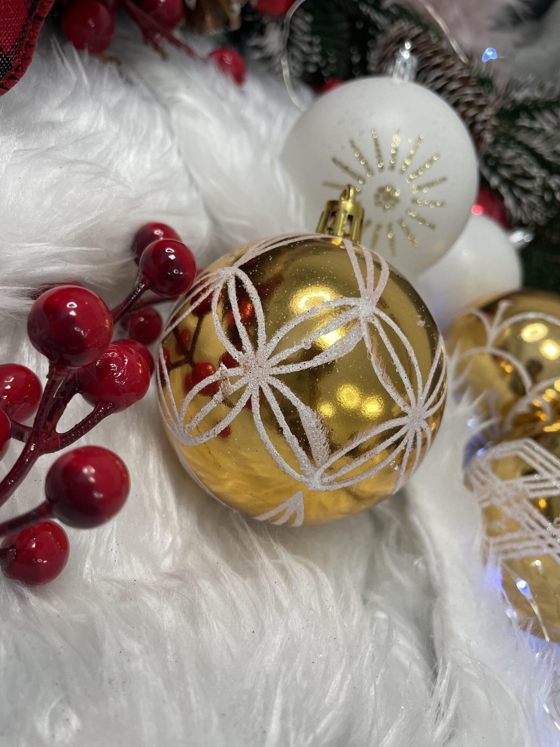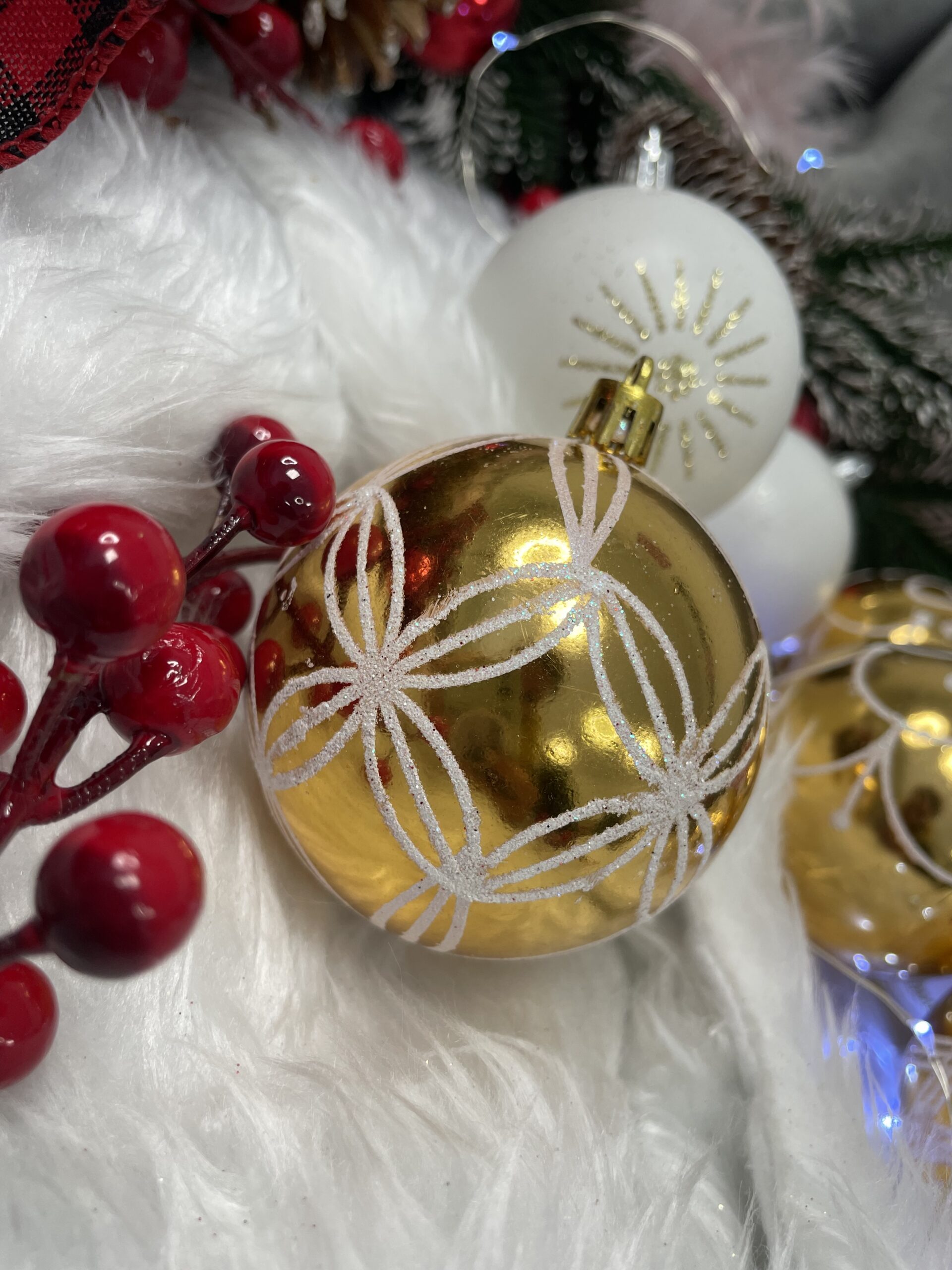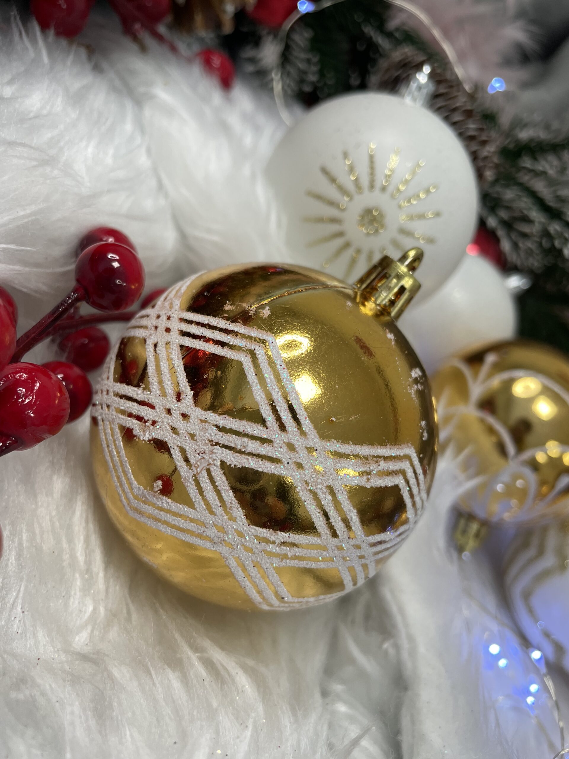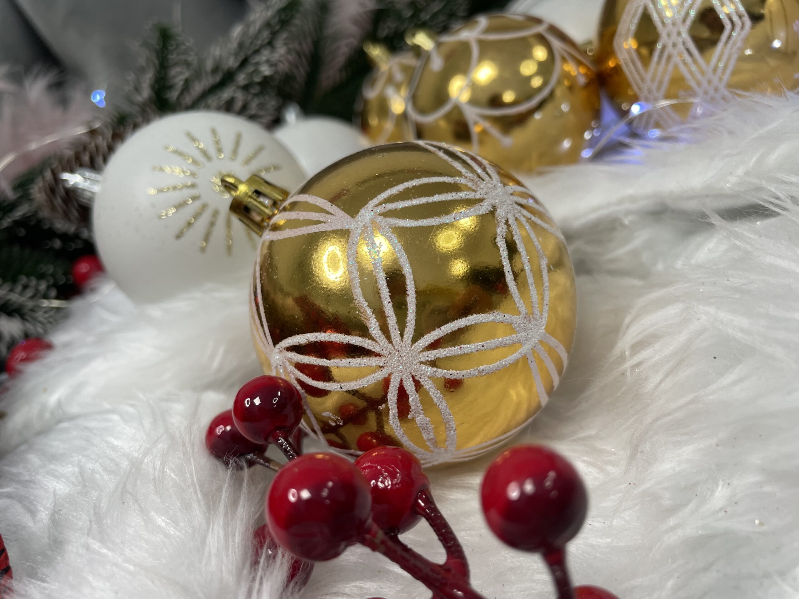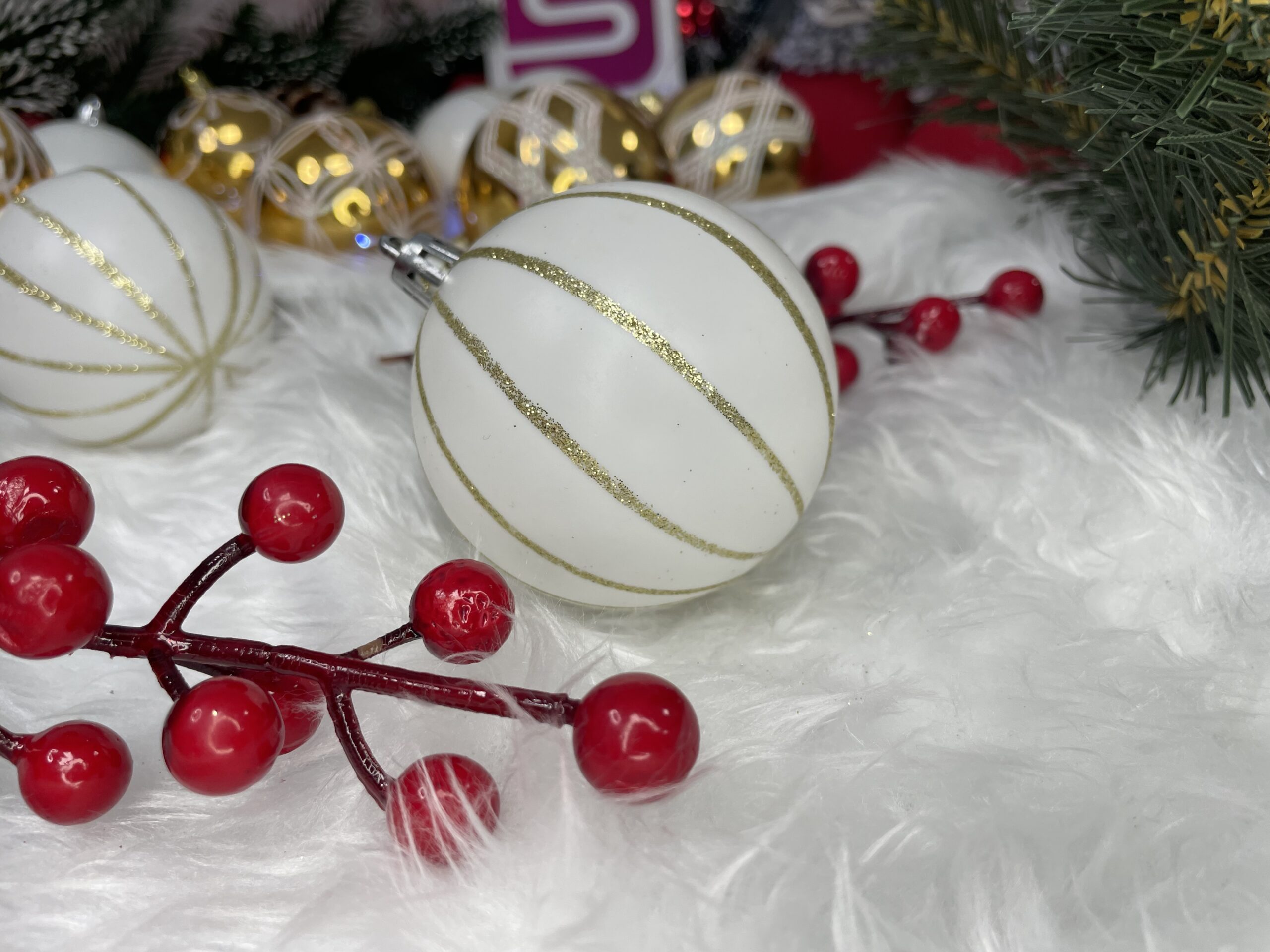 Set globuri de Craciun cu modele de sarbatori, 30 bucati, 7cm, alb auriu