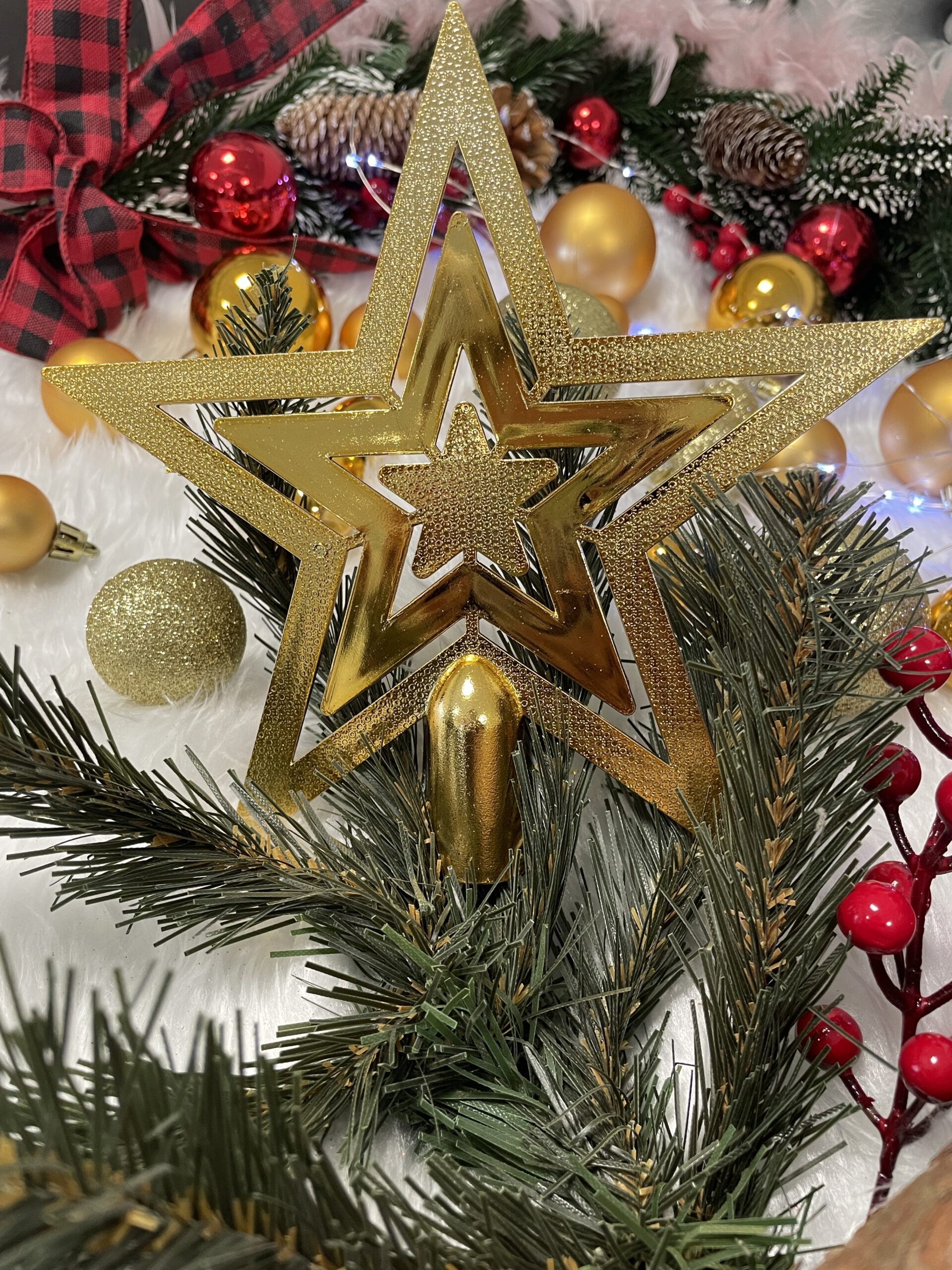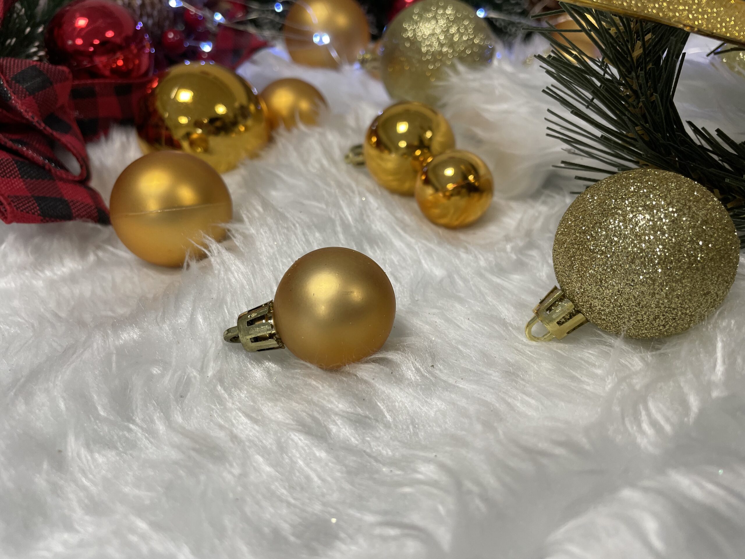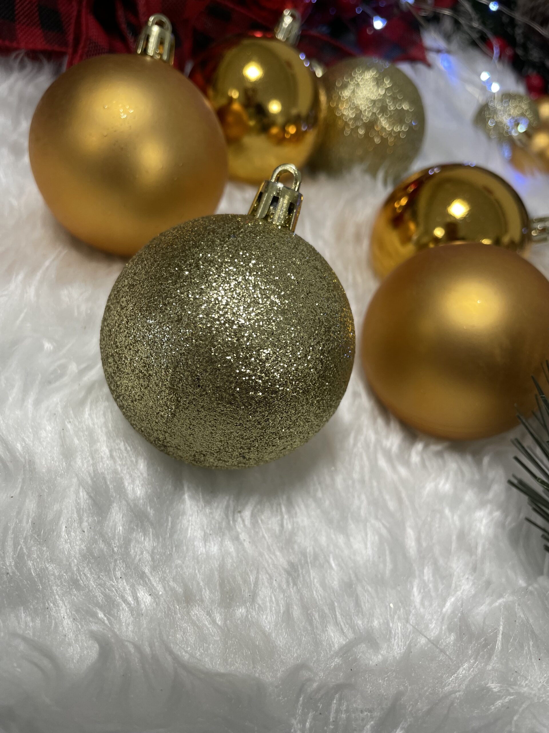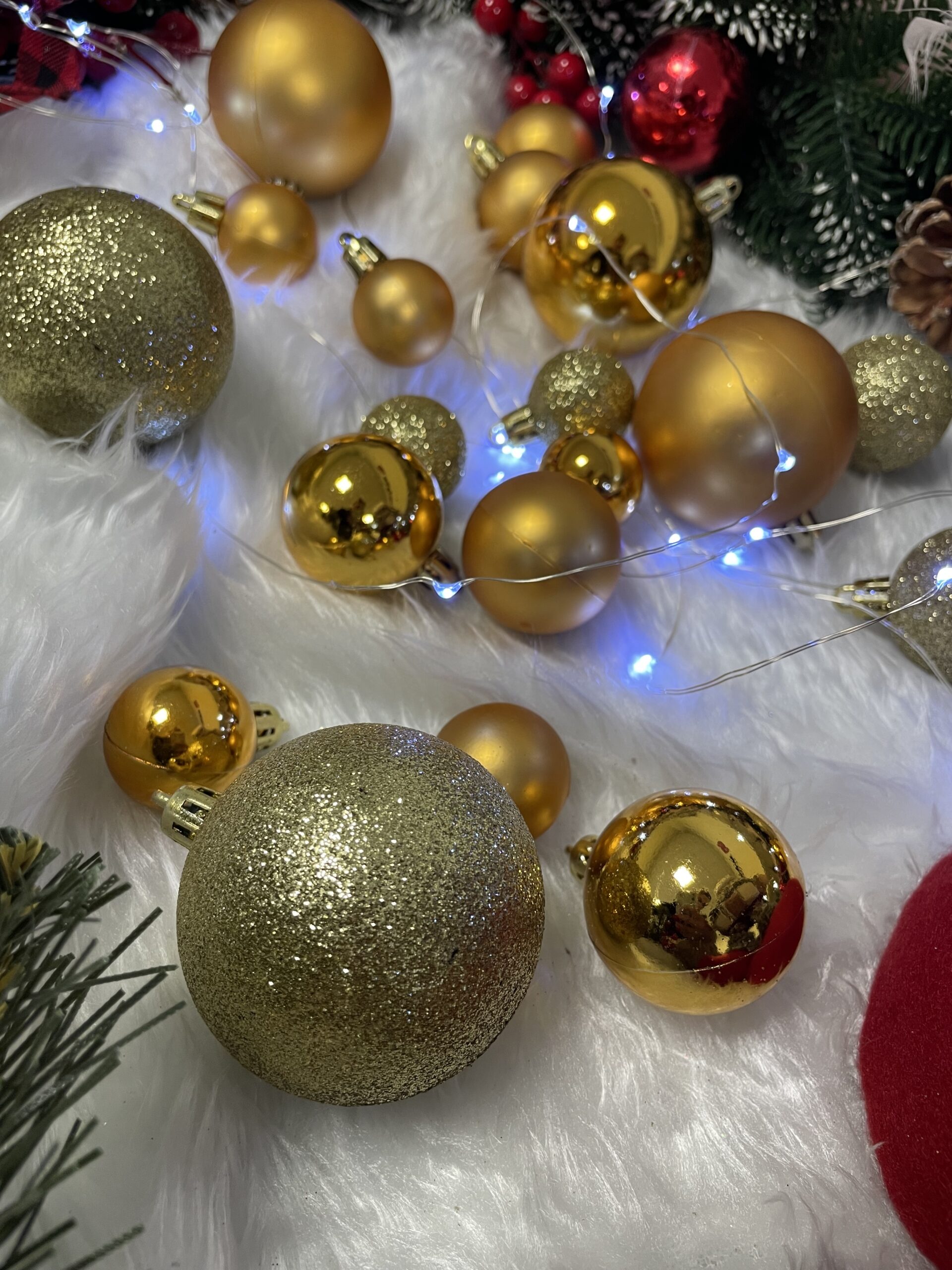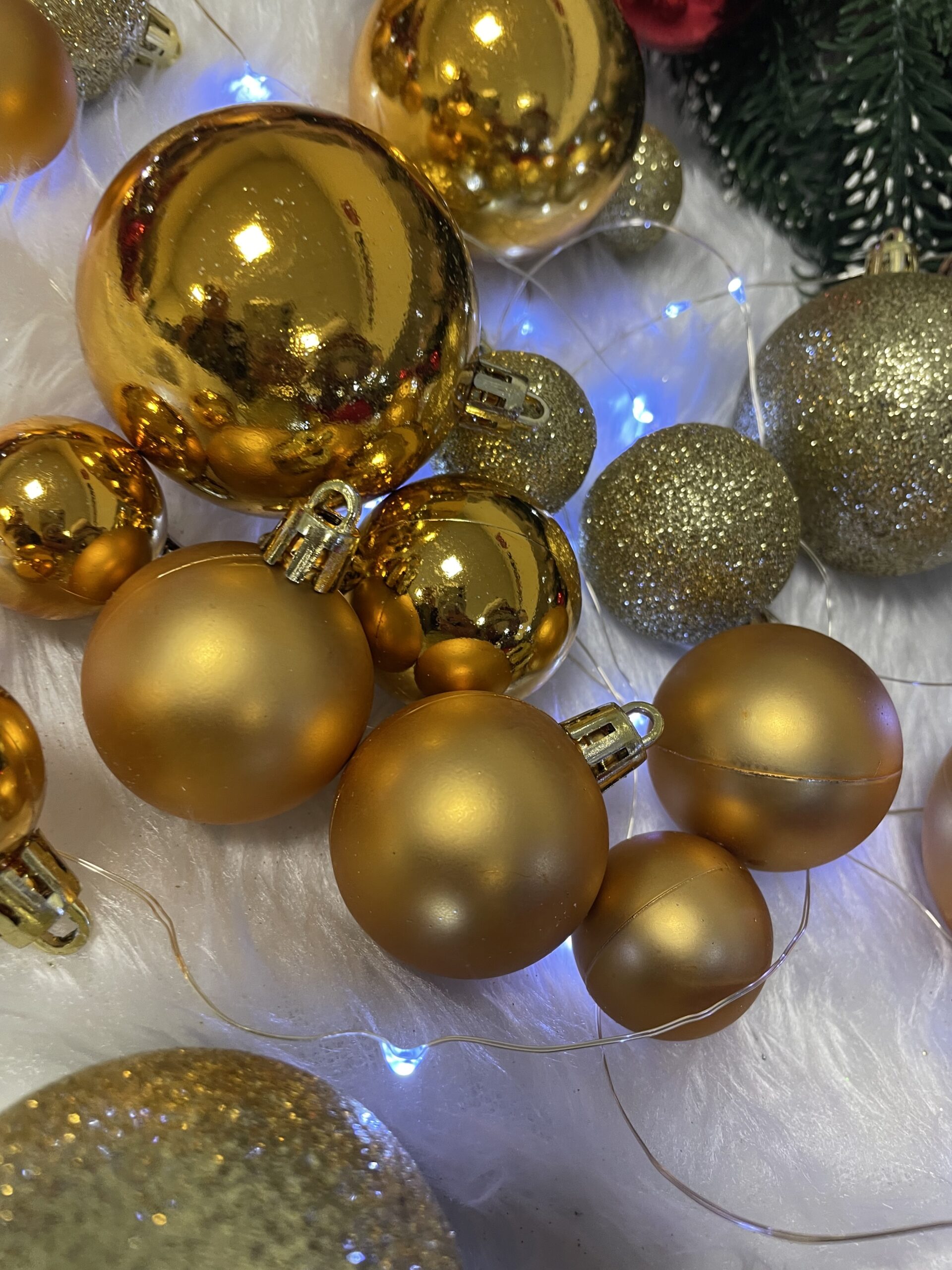 Globurile si decoratiunile dintr-un set cu o singura culoare va vor permite sa creati un decor minunat pentru brad. Arata frumos in timpul zilei si dupa intuneric, insotite de iluminat festiv. Setul include snururi care va permit sa agatati globurile rapid si usor in locul dorit. Designul din plastic creste siguranta datorita materialului incasabil. Alegerea lor in locul globurilor de sticla va contribui la siguranta celor mici din casa. Diversele dimensiuni va permit sa creati modele inedite de aranjare a bradului de Craciun. Culoare: auriu Material: plastic Cantitate: 100 piese Modele: modele diferite incluse in set Diametru: diverse marimi Setul include urmatoarele piese 1 buc stea pe varf de aproximativ 20 cm 8 bucati de balouri ajurate de 6 cm 8 bucati de balouri stralucitoare de 6 cm 8 bucati cu sclipici de 6 cm 8 bucati de balouri mate de 6 cm 12 bucati de bulgari stralucitoare de 4 cm 12 bucati de sclipici de 4 cm 12 bucati de bulgari mate de 4 cm 8 bucati de bulele stralucitoare de 3 cm 16 bucati de sclipici de 3 cm 8 bucati de bulele mate de 3 cm Atentie! Numarul de piese din set poate varia + - 1 buc.
