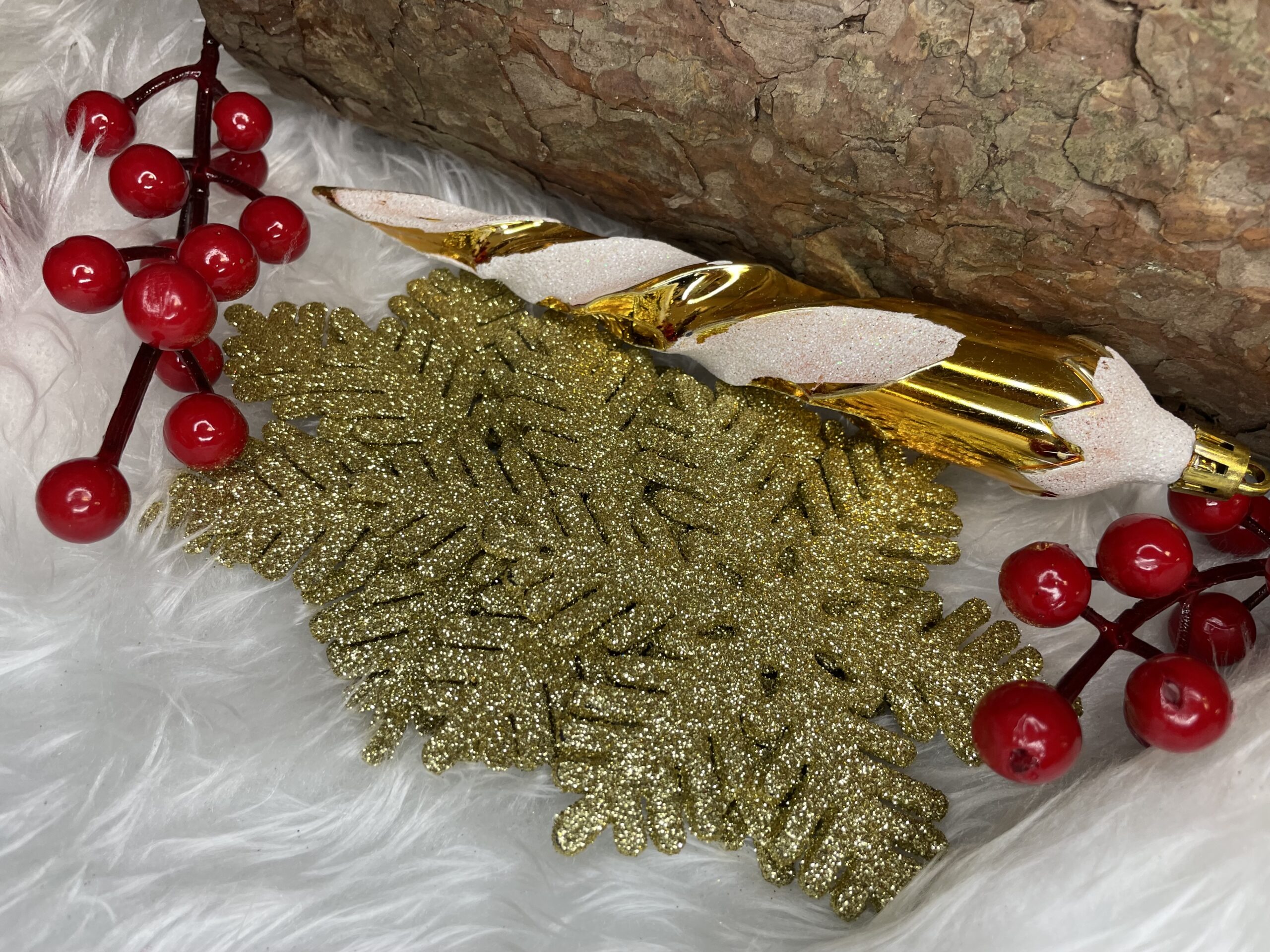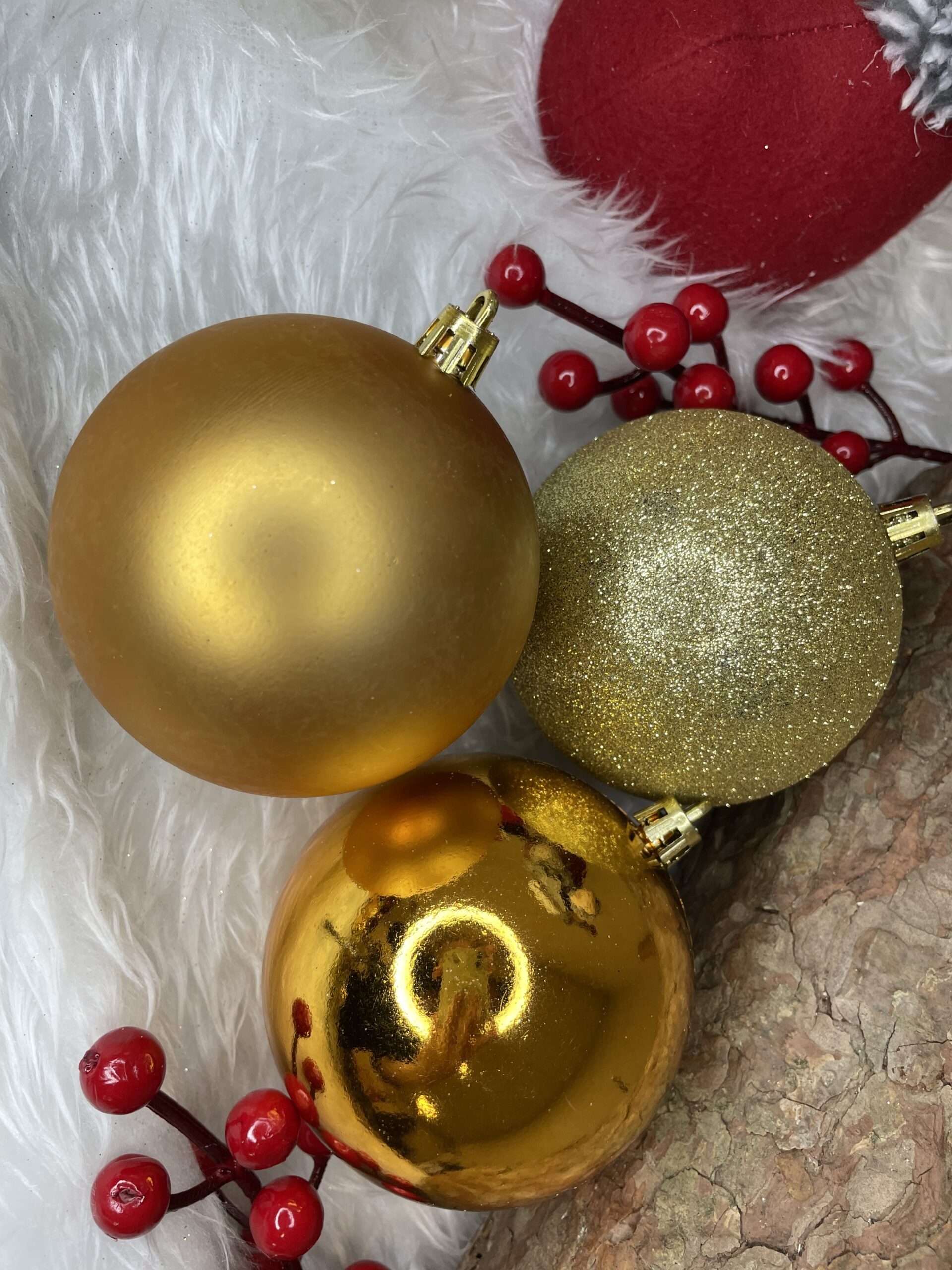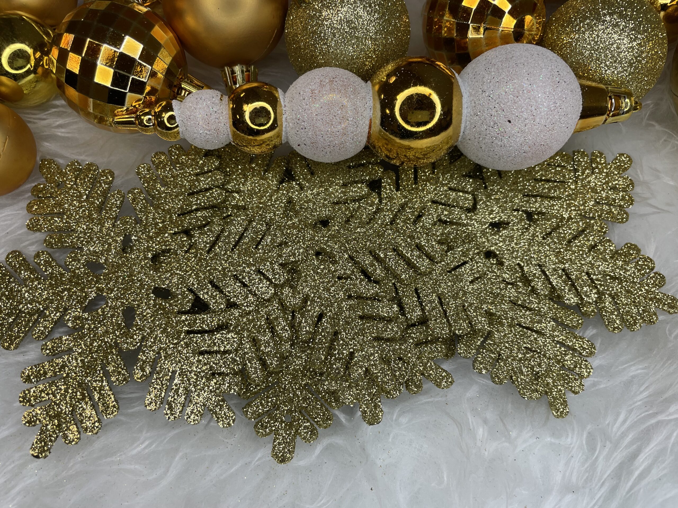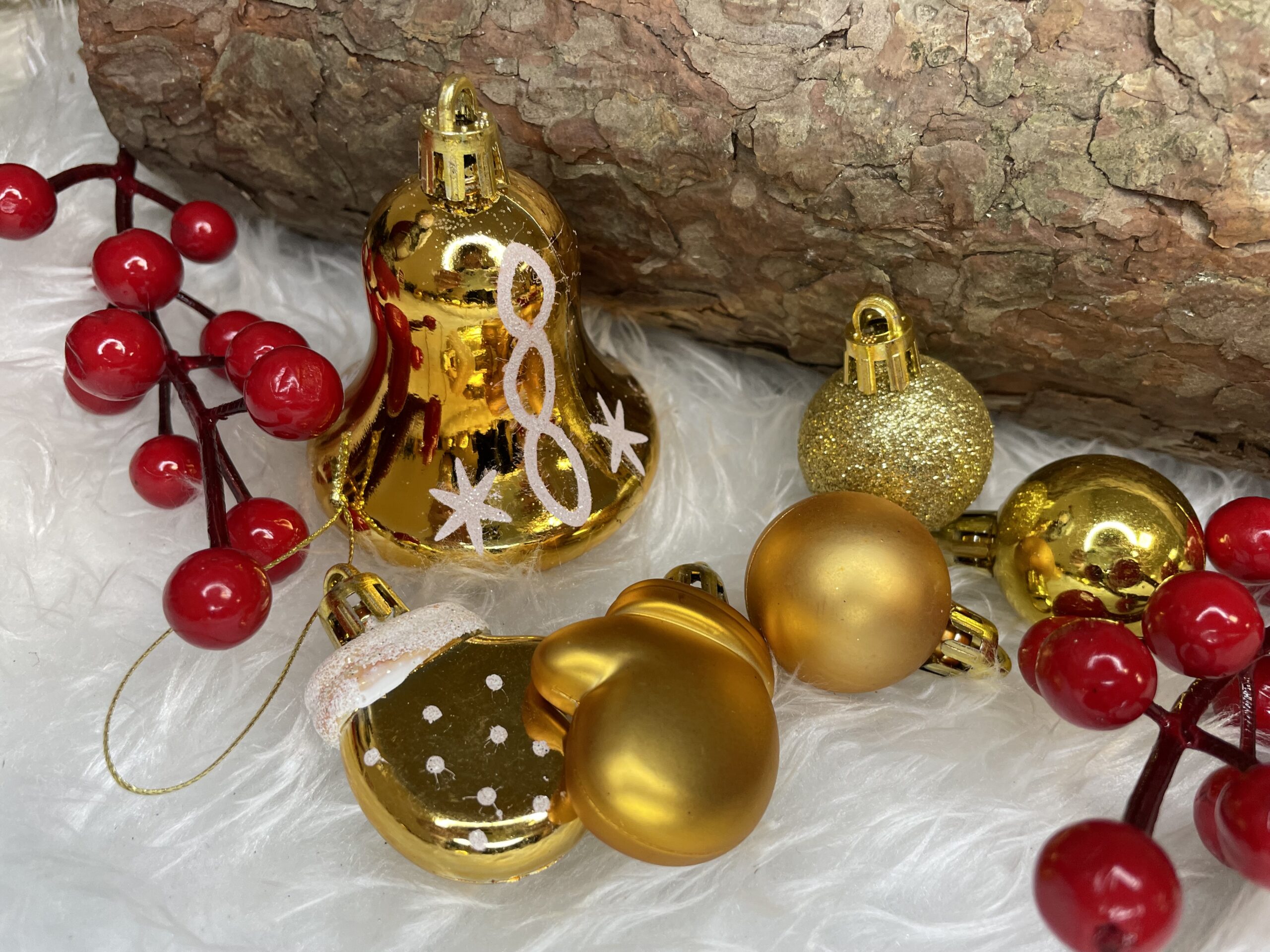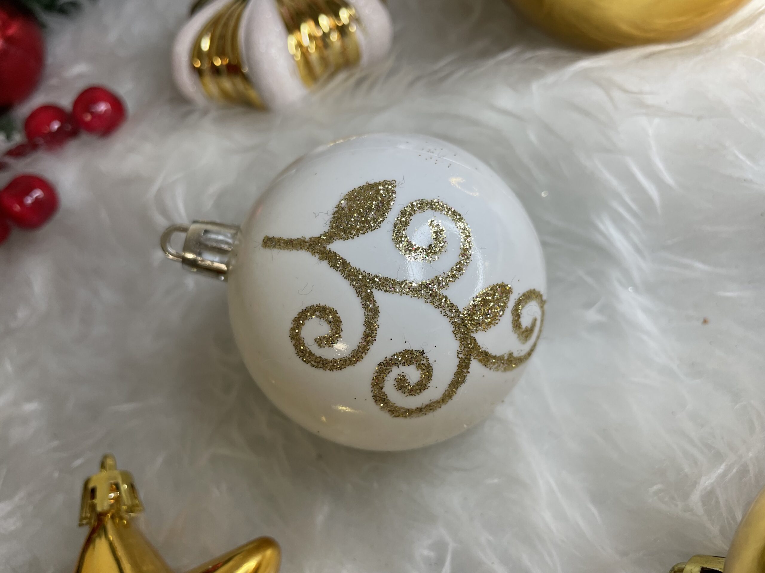 Culoare: auriu Material: plastic Cantitate: 155 piese Modele: 22 modele diferite incluse in set Diametru: diverse marimi Globurile si decoratiunile dintr-un set cu o singura...