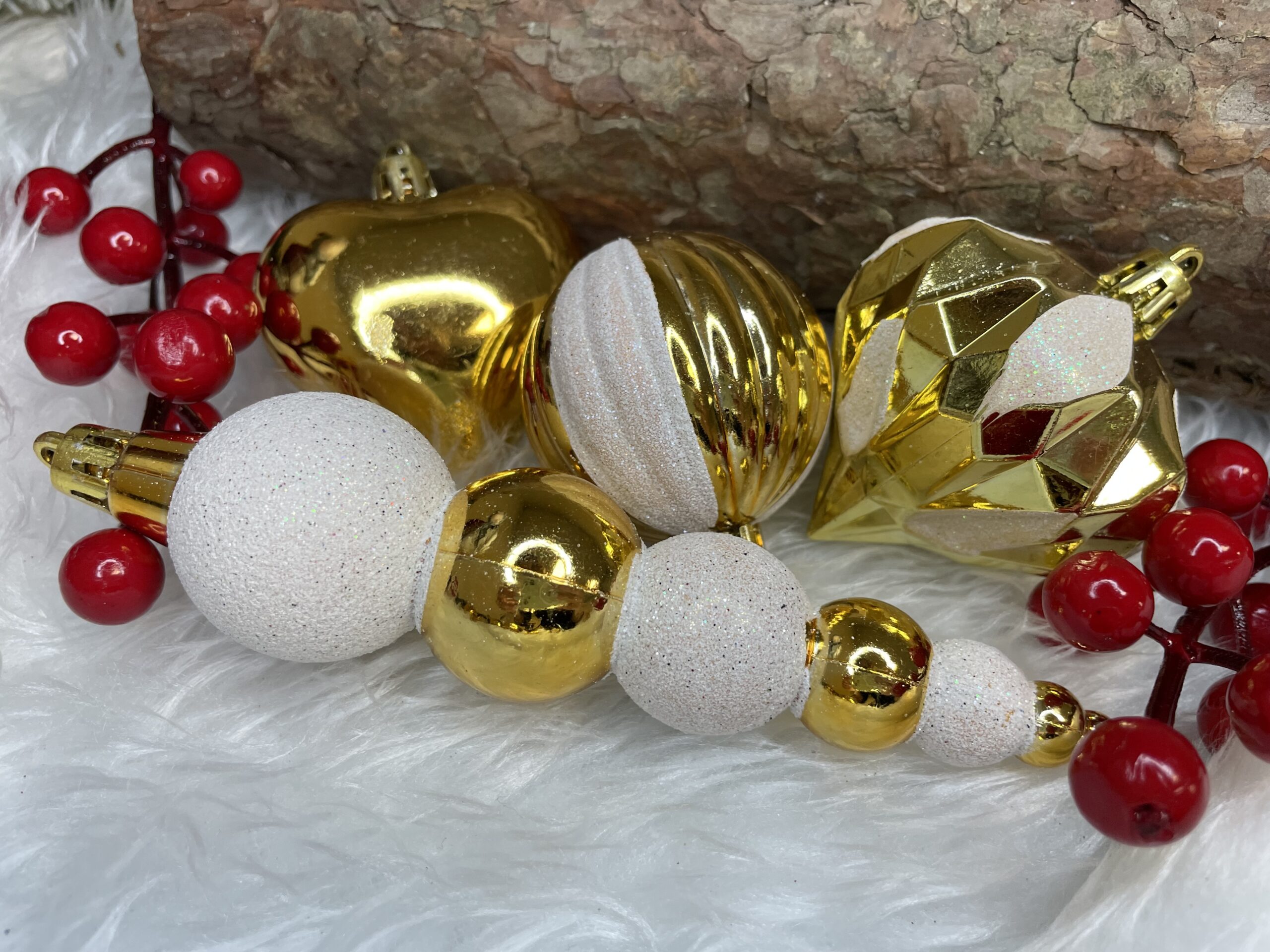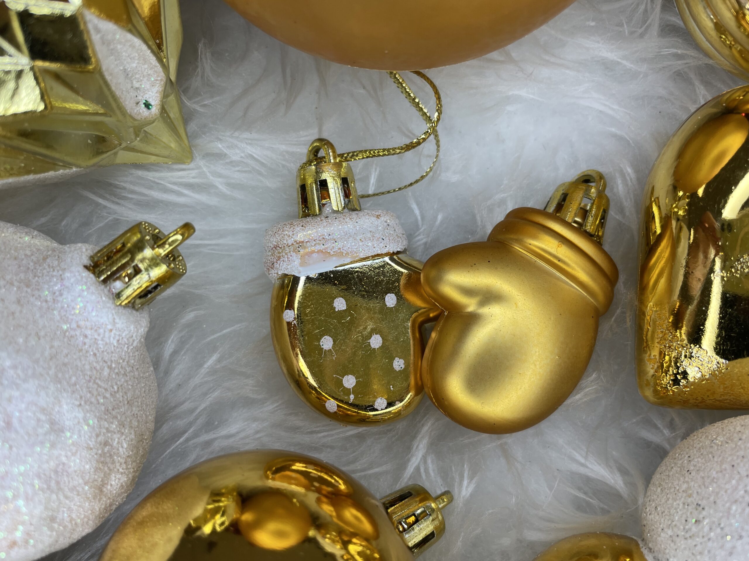 Set globuri si decoratiuni de Craciun, 155 piese, diverse dimensiuni, auriu