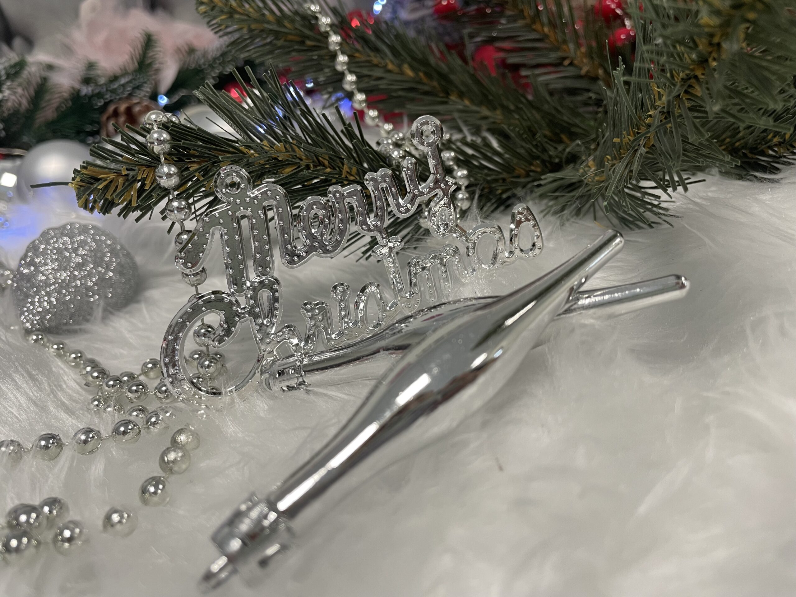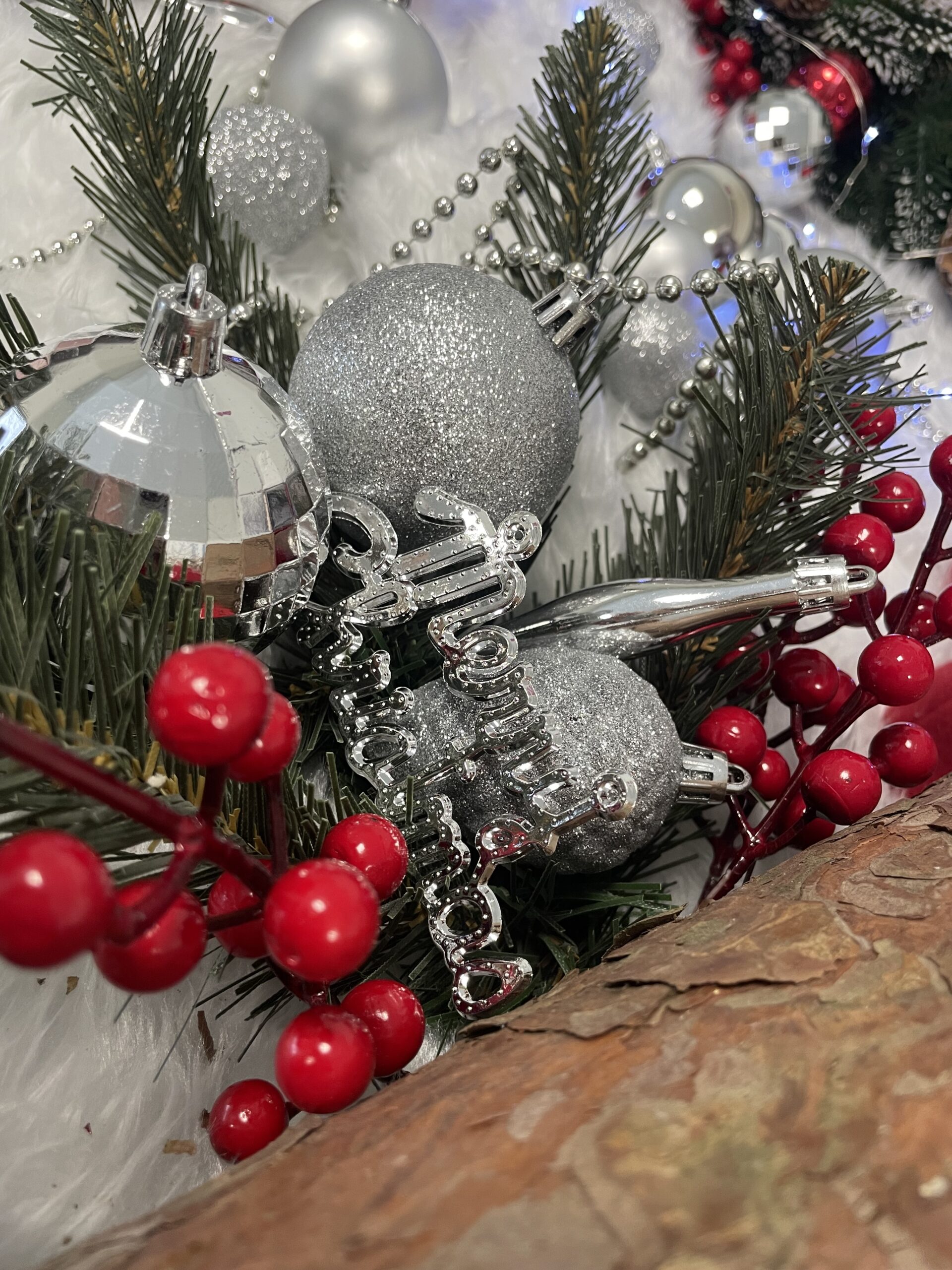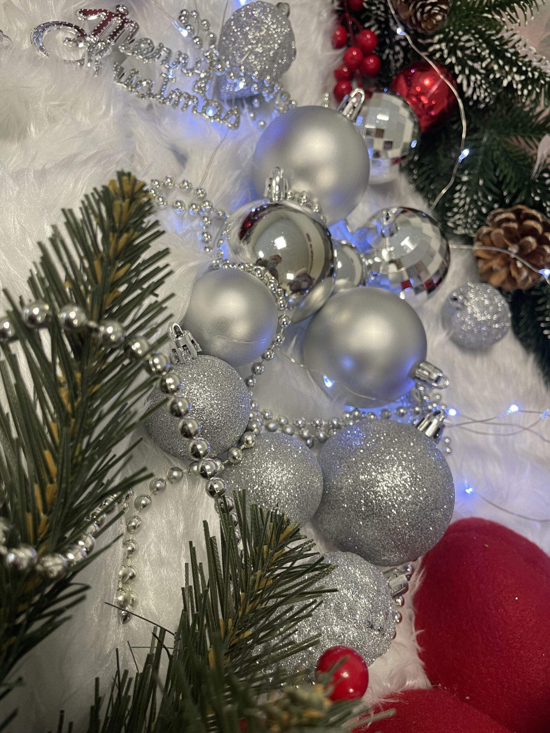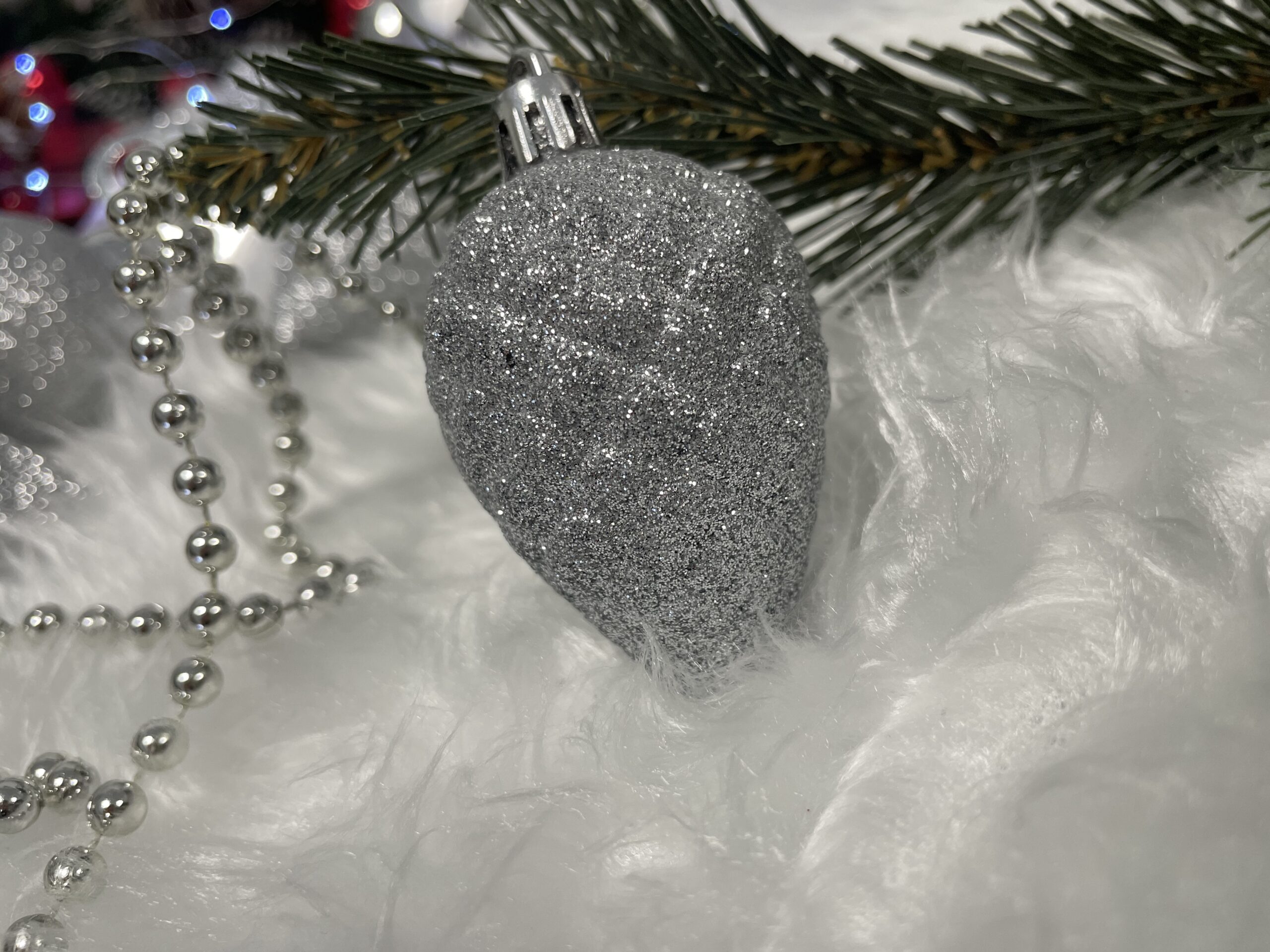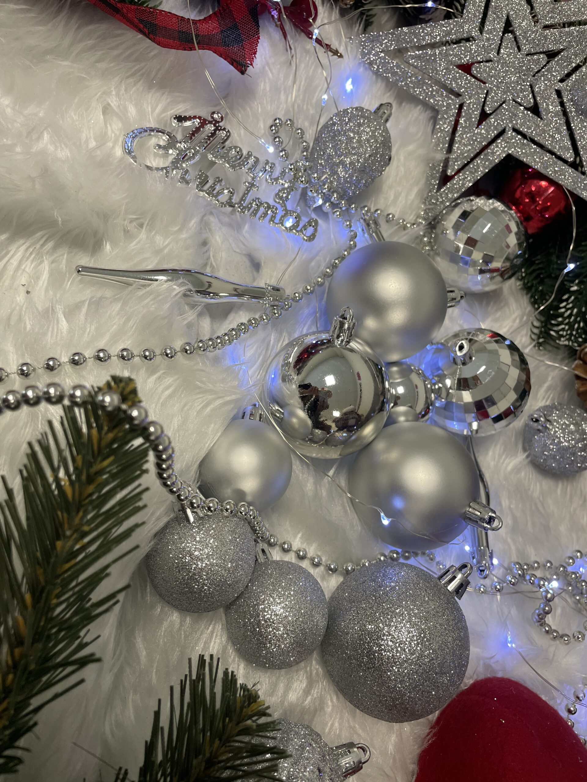 Set globuri si decoratiuni de Craciun, 51 piese, diverse dimensiuni, argintiu