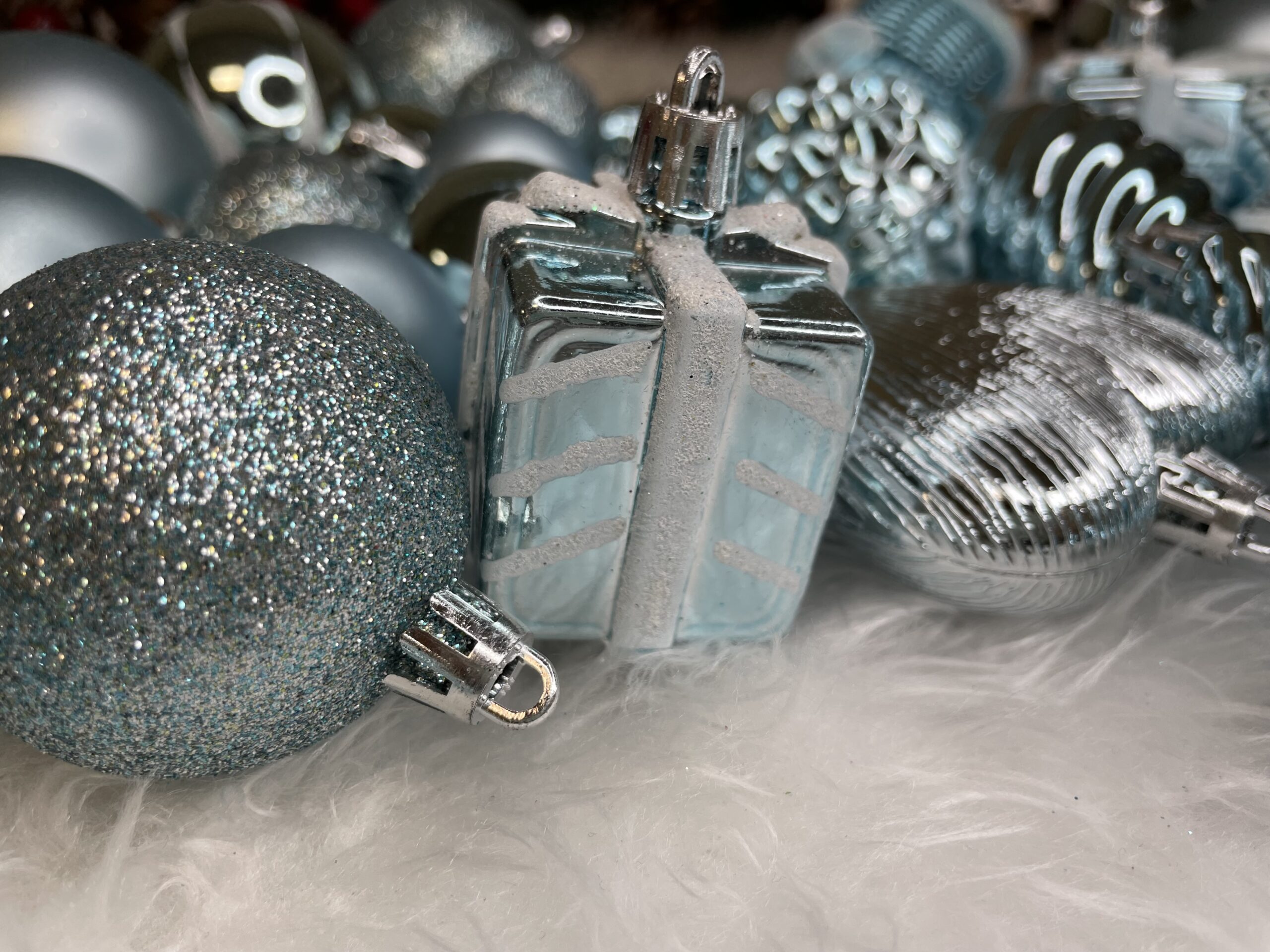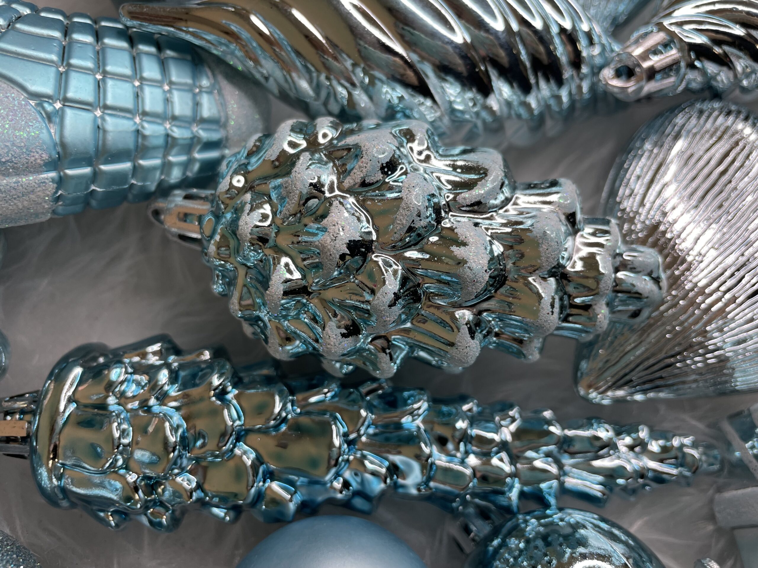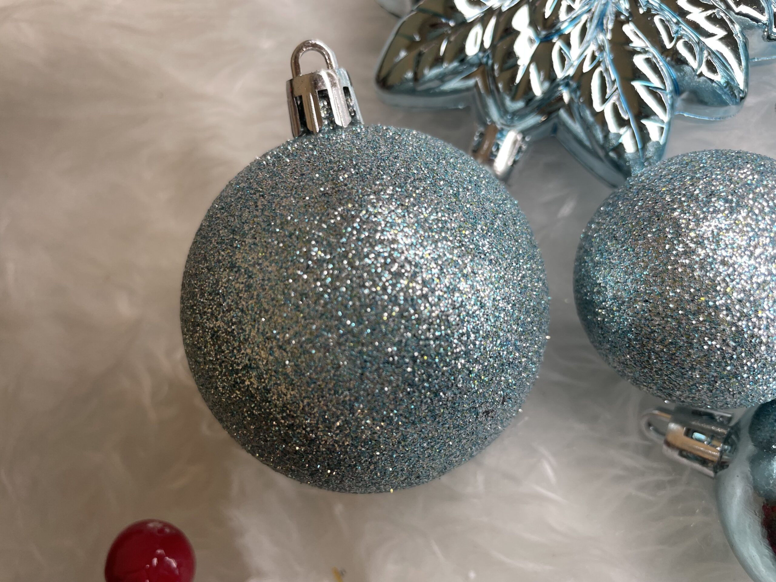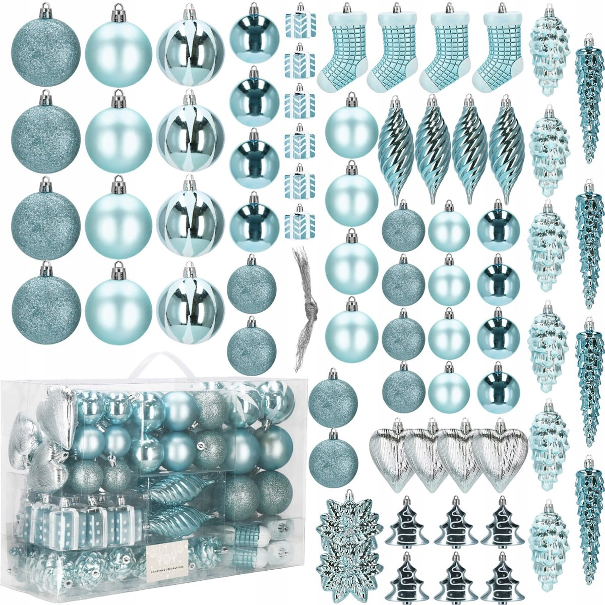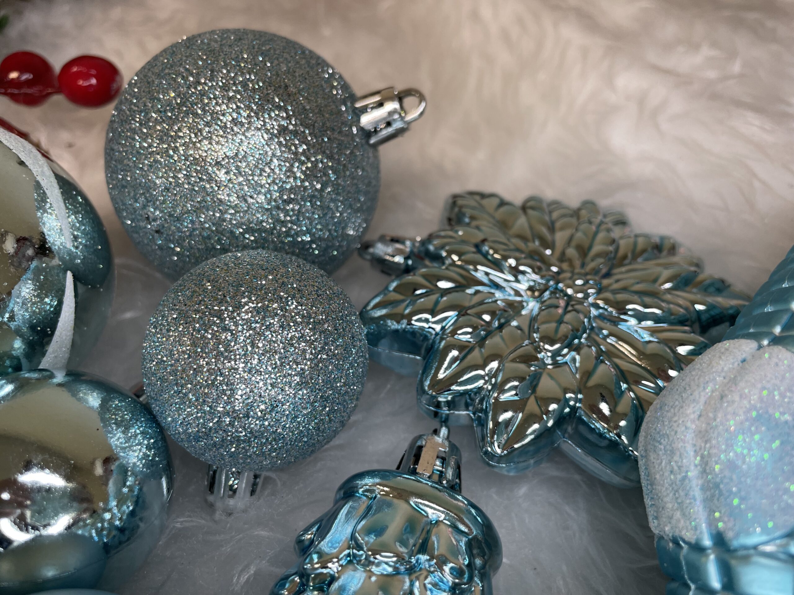 Set globuri si decoratiuni de Craciun, 72 piese, diverse dimensiuni, albastru