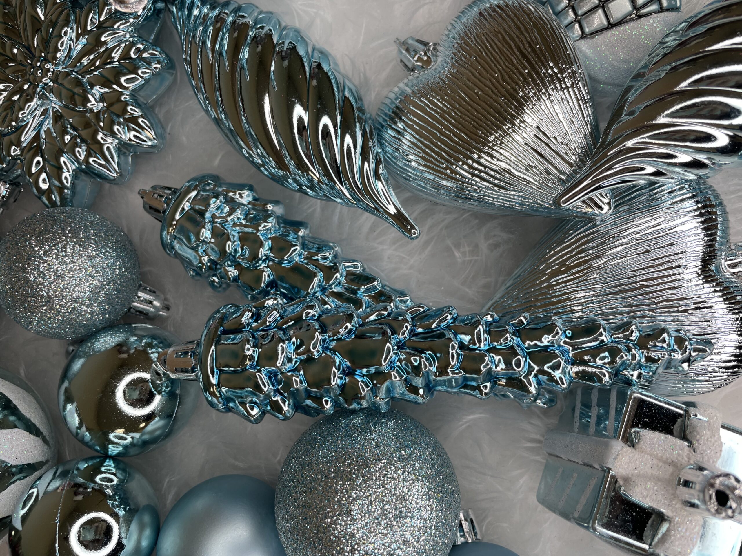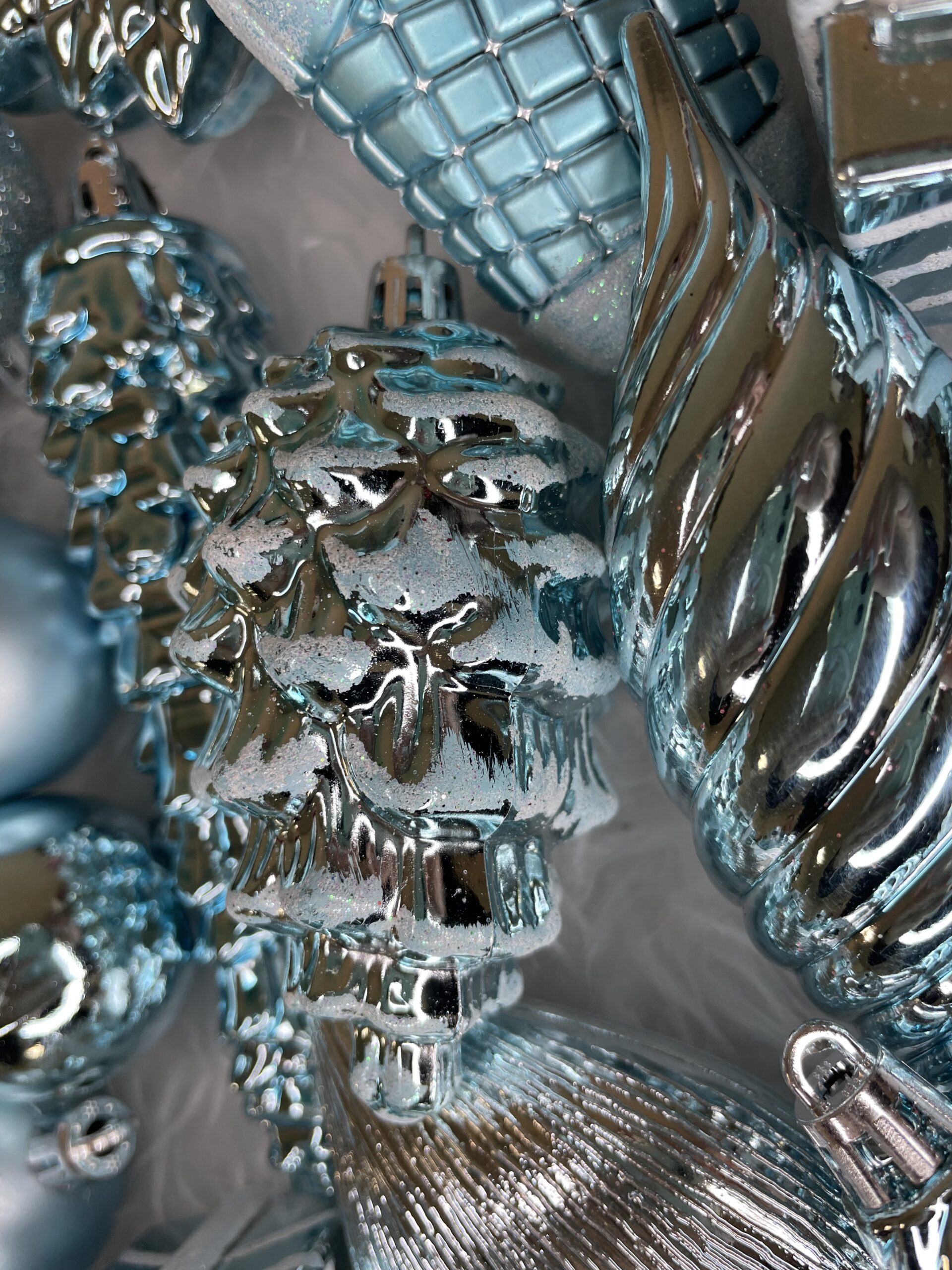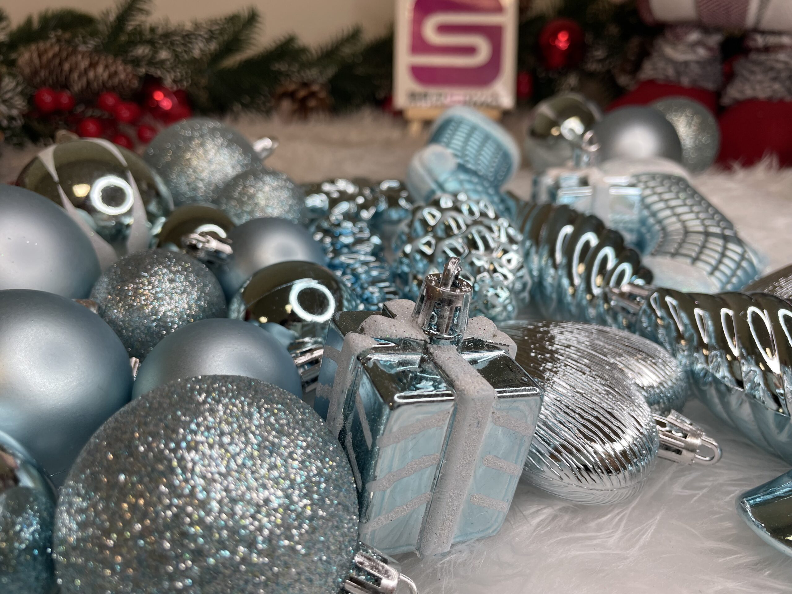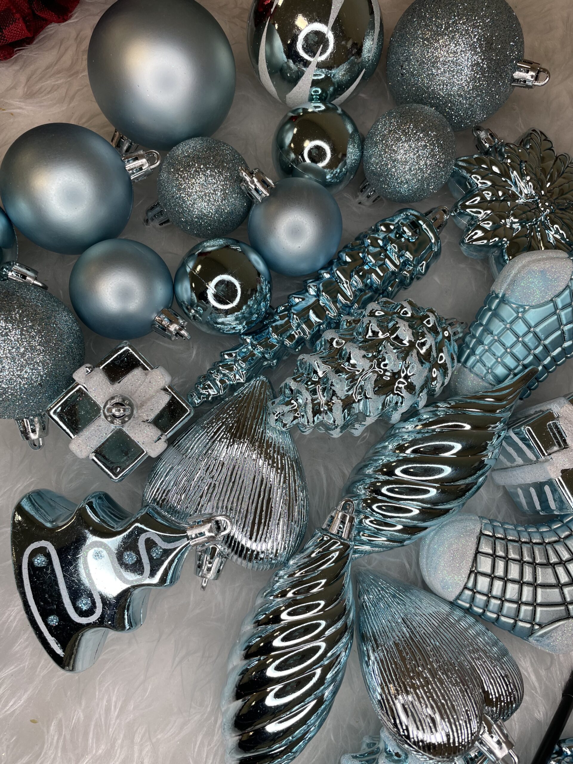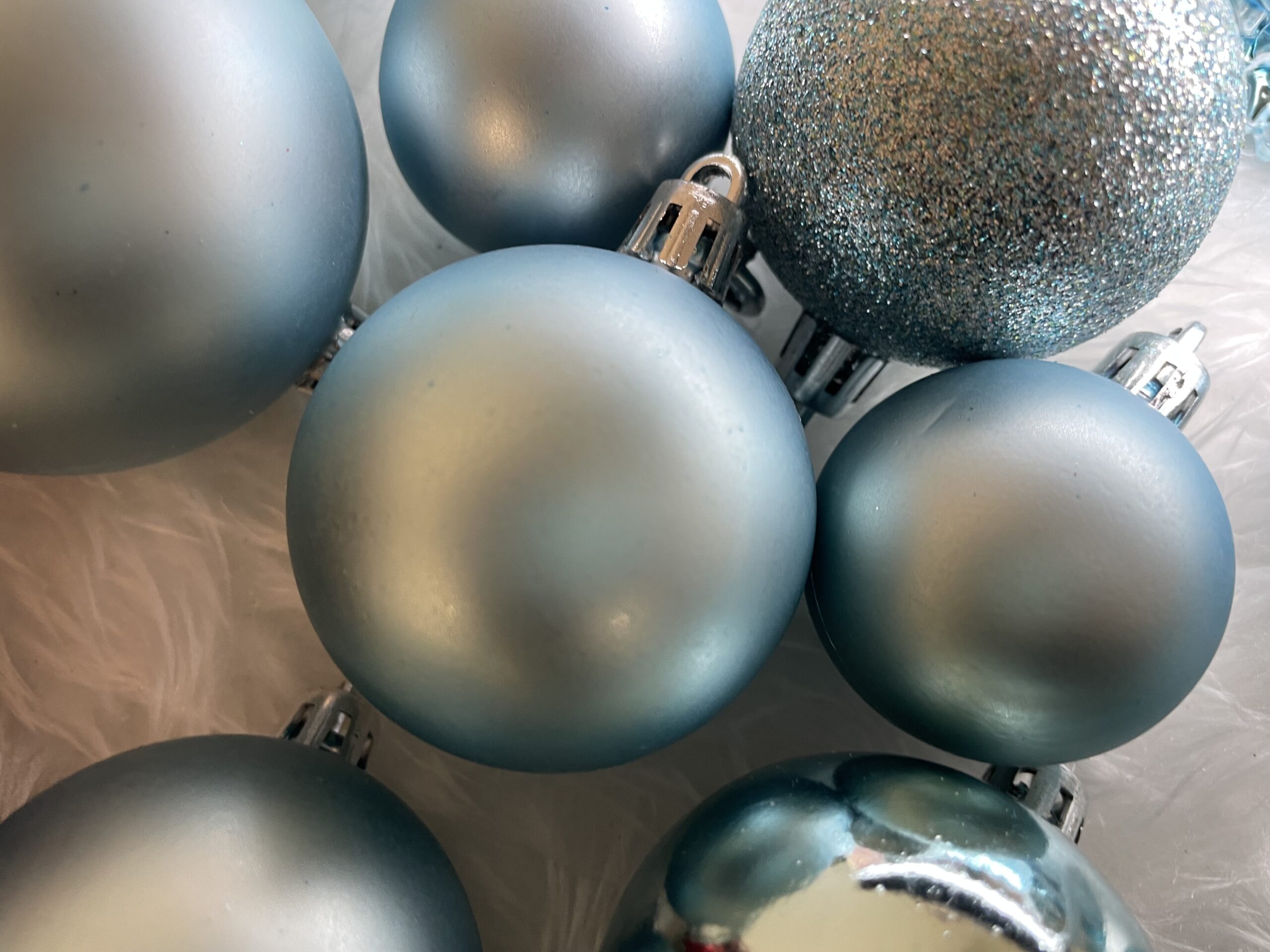 Set globuri si decoratiuni de Craciun, 72 piese, diverse dimensiuni, albastru