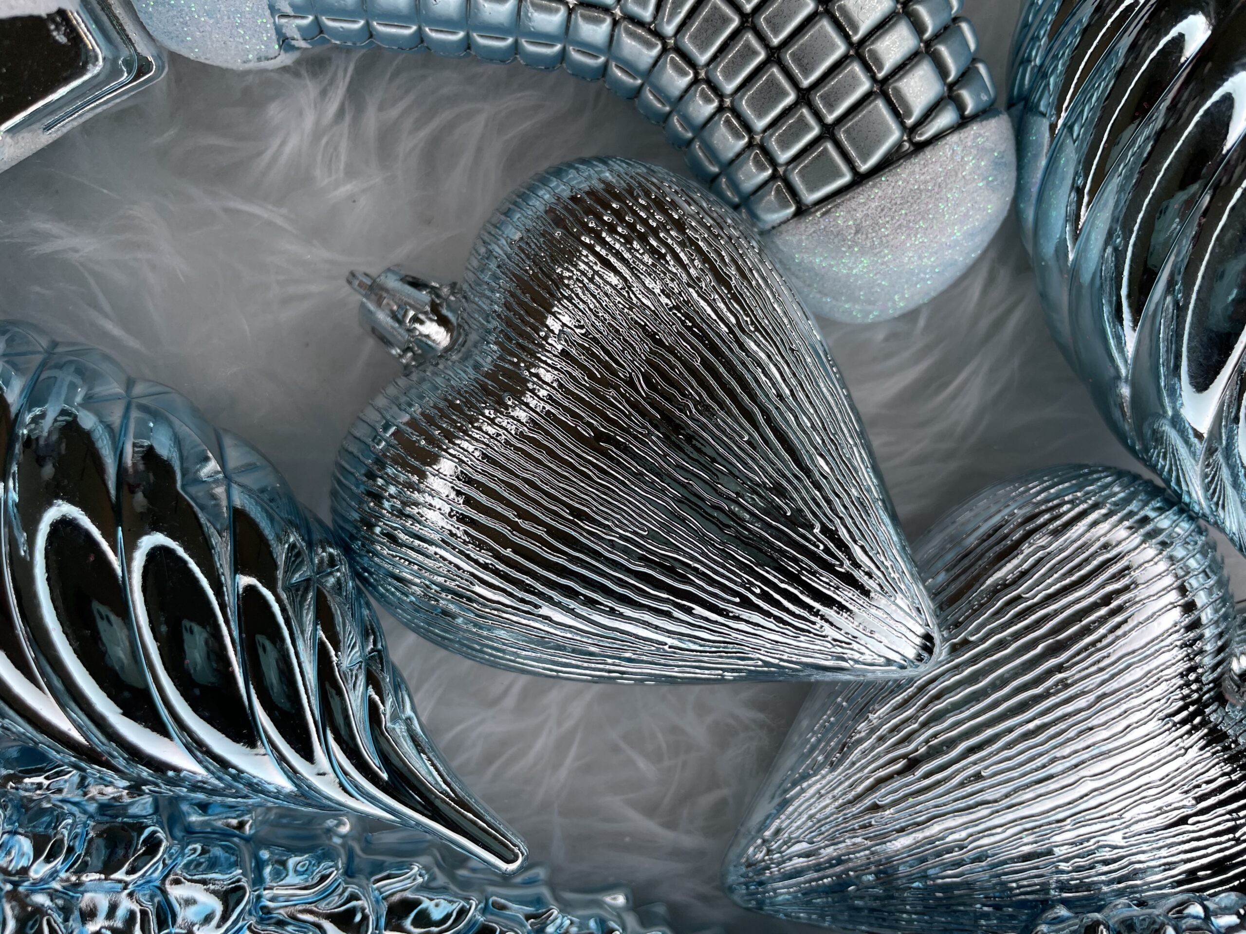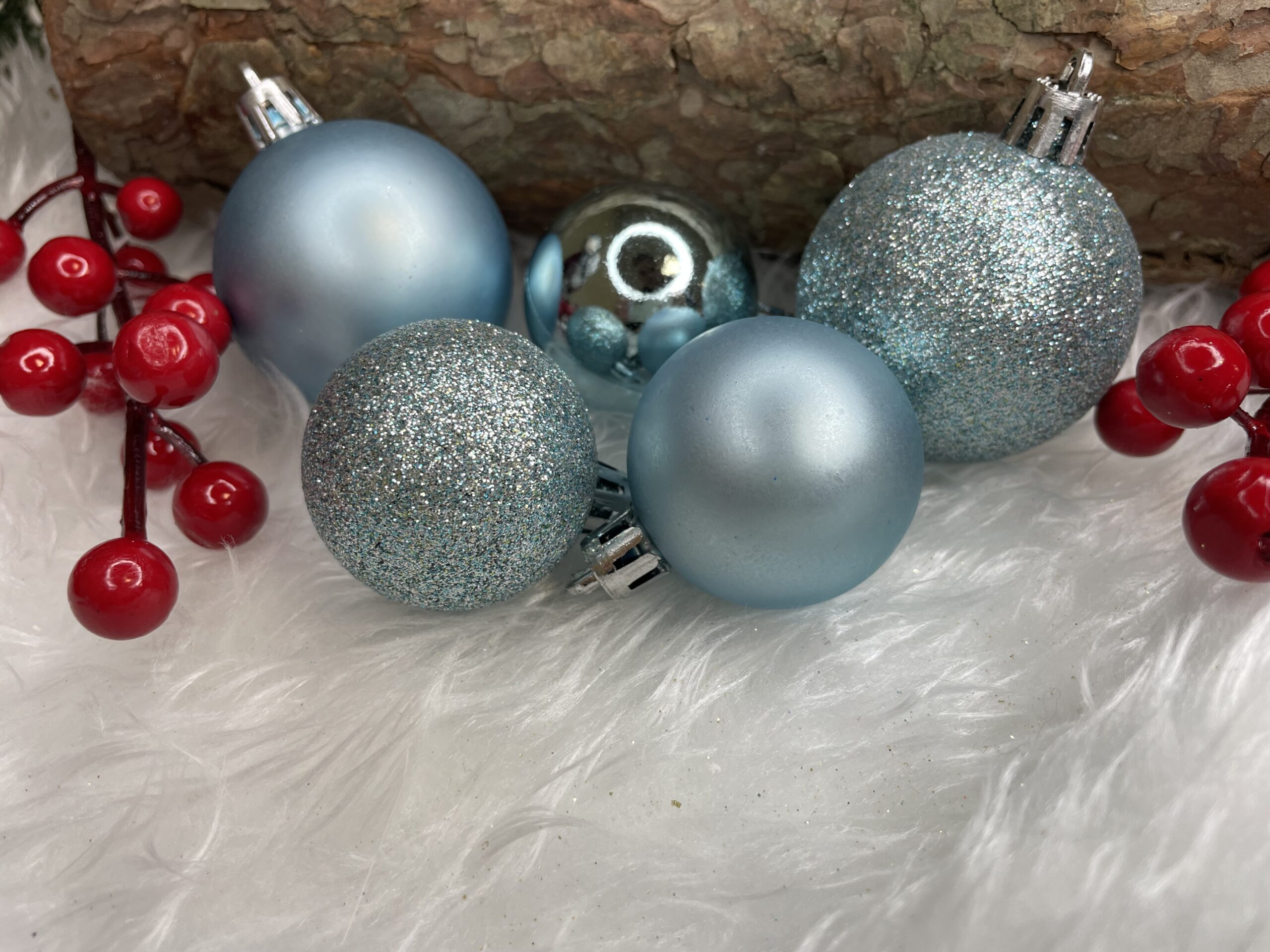 Globurile si decoratiunile dintr-un set cu o singura culoare va vor permite sa creati un decor minunat pentru brad. Arata frumos in timpul zilei si dupa intuneric, insotite de iluminat festiv. Setul include snururi care va permit sa agatati globurile rapid si usor in locul dorit. Designul din plastic creste siguranta datorita materialului incasabil. Alegerea lor in locul globurilor de sticla va contribui la siguranta celor mici din casa. Diversele dimensiuni va permit sa creati modele inedite de aranjare a bradului de Craciun. Culoare: albastru Material: plastic Cantitate: 72 piese Modele: 10 modele diferite incluse in set Diametru: diverse marimi Setul include urmatoarele piese 4x sosete - 10cm 6x brad - 7cm 4x Icicle - 13 cm 2x stele de mare - 8 cm 4x Inima - 7 cm 6x Conuri - 8 cm 6x Cadou - 4 cm 4x dungi alungite cu sclipici - 10 cm 4x Rotund mic (sclipici) - 4 cm 4x Rotund mic (mat) - 4 cm 4x Rotund mic (lucius) - 4 cm 4x rotund mediu (sclipici) - 5 cm 4x rotund mediu (mat) - 5 cm 4x rotund mediu (lucius) - 5 cm 4x Rotund mare (sclipici) - 6 cm 4x Rotund mare (mat) - 6 cm 4x Rotunzi mari (lucioase) - 6 cm Atentie! Numarul de piese din set poate varia + - 1 buc.