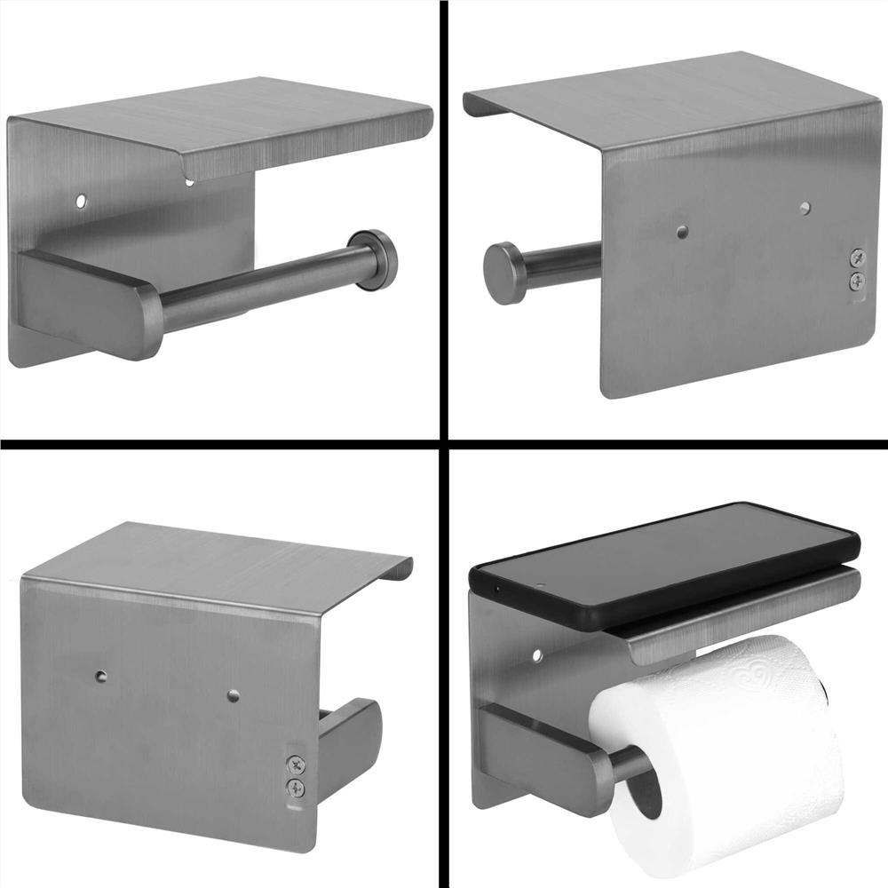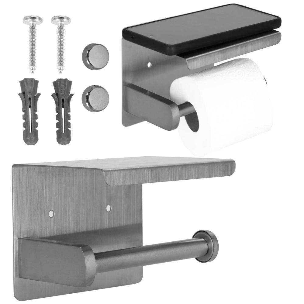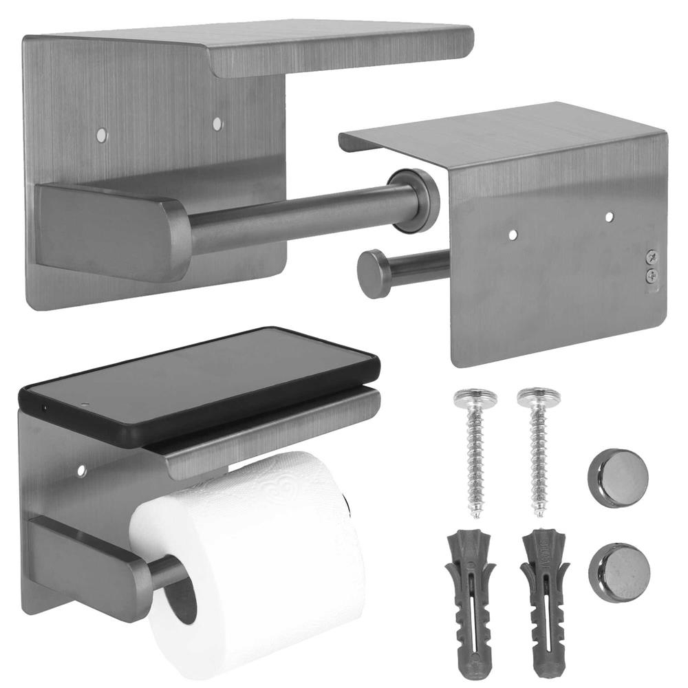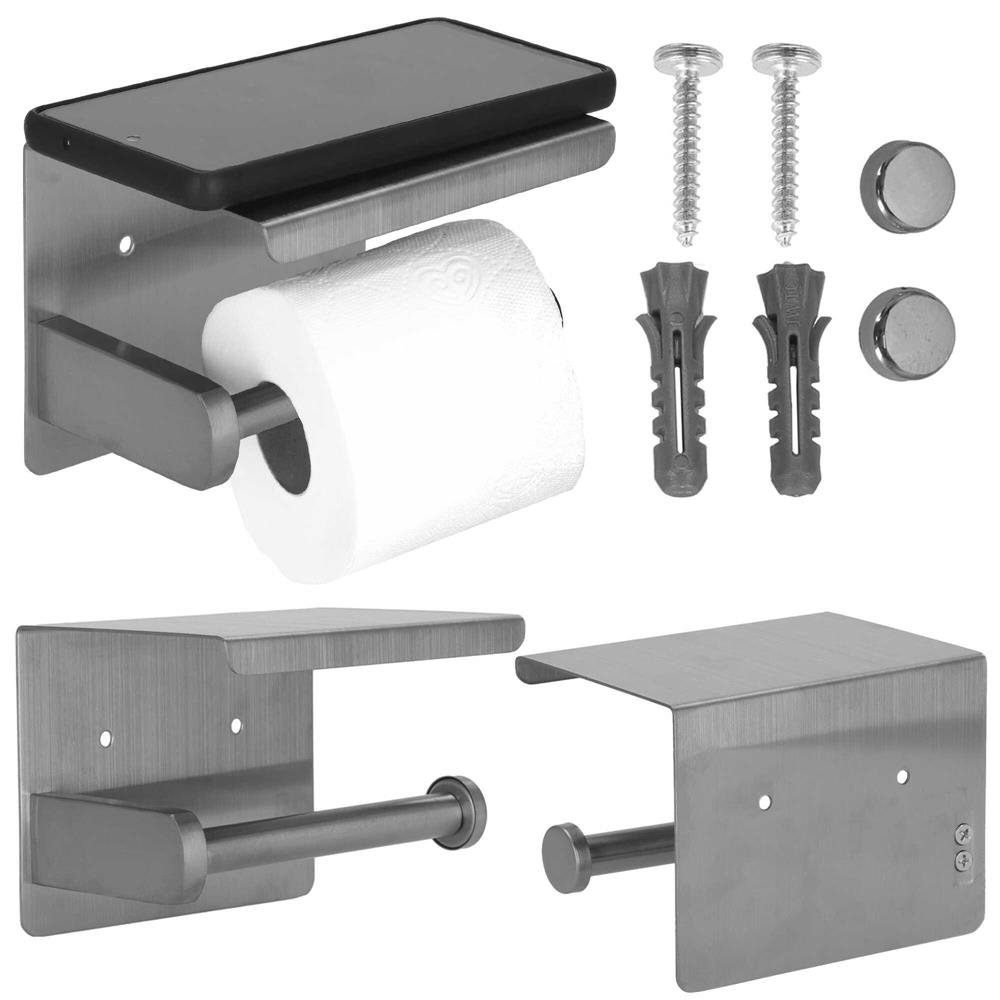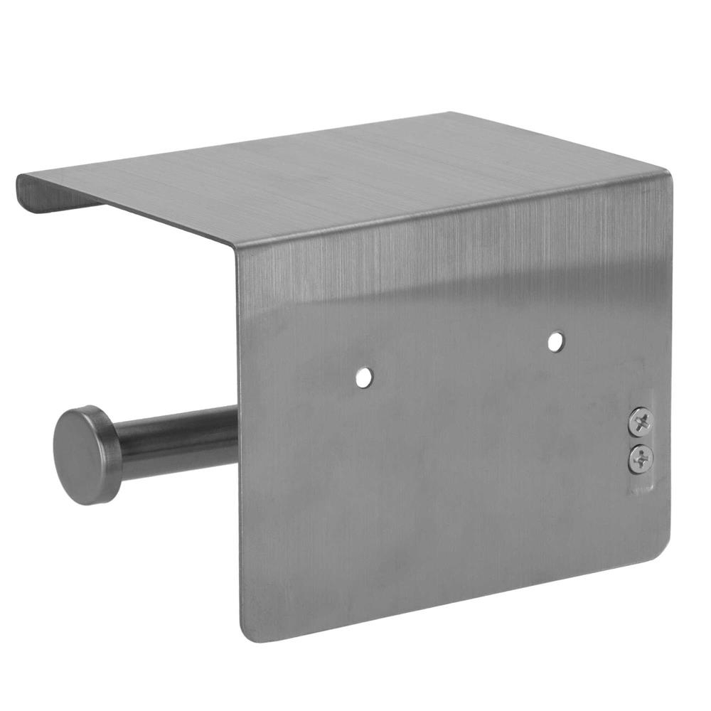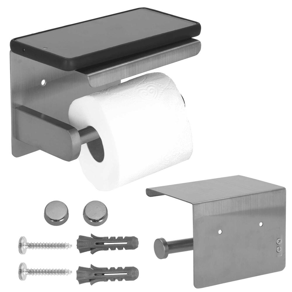 Suport hartie igienica din otel cu raft depozitare, sistem montare inclus, 13.5cm, argintiu lucios