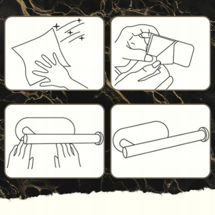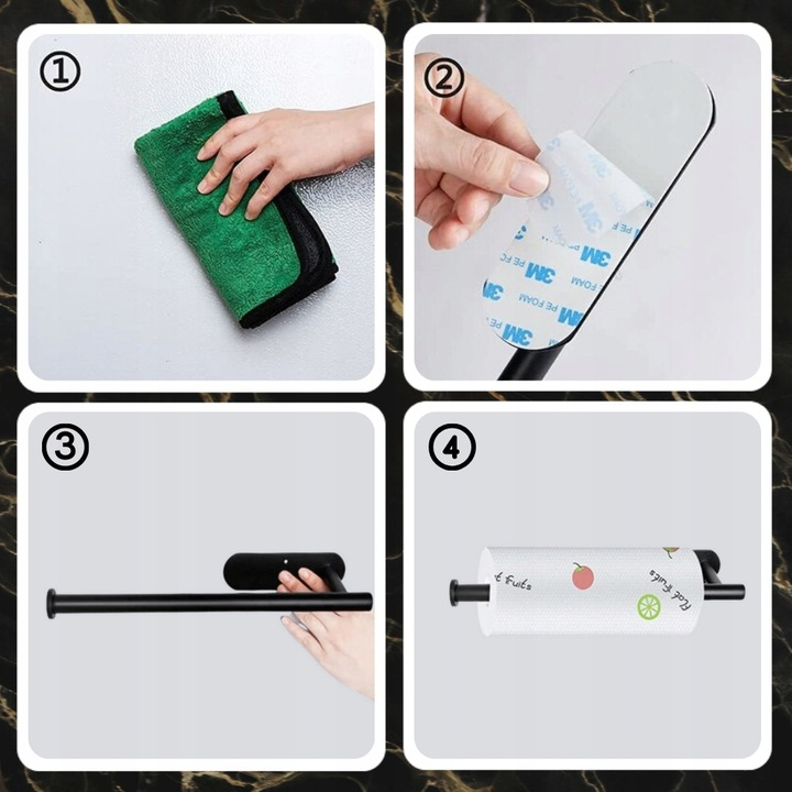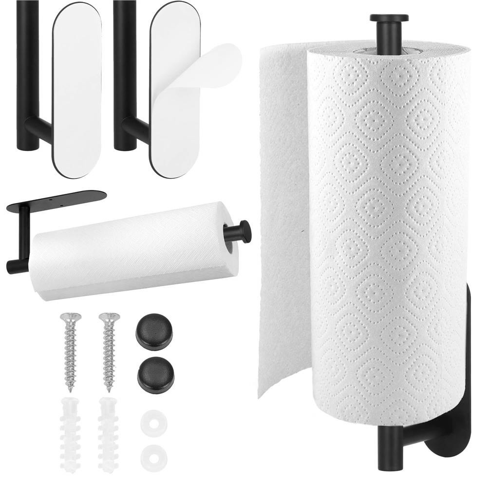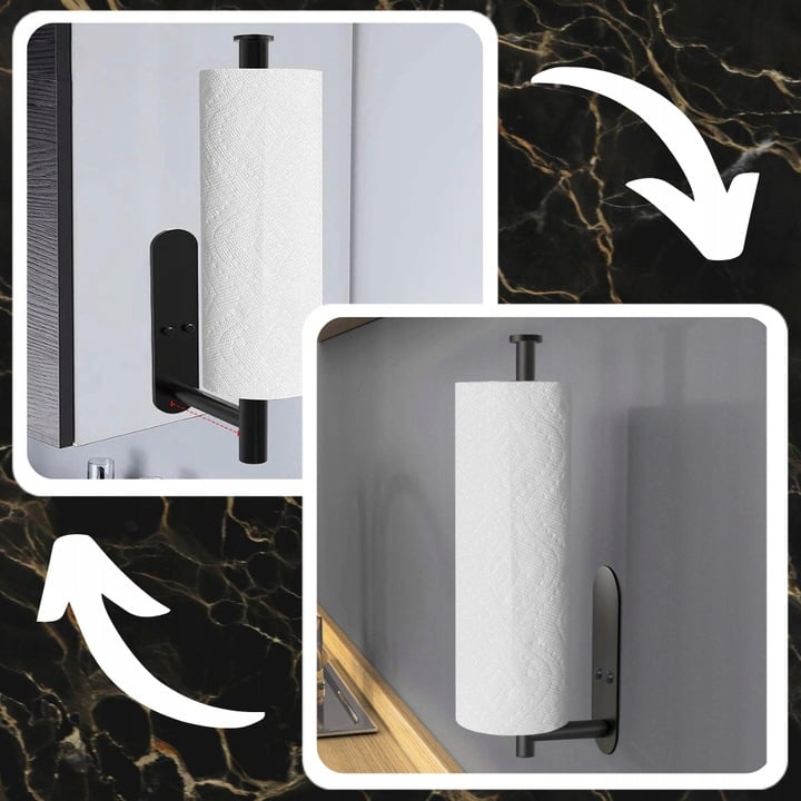 Material: otel inoxidabil Lungime: 33,5 cm Latime: 4,5 cm Adancime: 7 cm Culoare: negru Atasare: autoadeziva sau cu suruburi (incluse) Economisiti spatiu - Suportul pentru prosoape de hartie va poate ajuta sa economisiti spatiu prin plasarea lui pe perete sau pe dulap. Este usor de curatat Faciliteaza derularea rolei si o protejeaza impotriva umezelii Prosop de hartie intr-un loc la indemana Un suport negru solid pentru prosoape de hartie, care poate fi montat in doua moduri: de sub dulap si direct pe perete. Cu designul sau modern si functionalitatea sa, schimbarea unui prosop de hartie in bucatarie nu a fost niciodata mai usoara. Suportul pentru prosoape de hartie este solutia ideala pentru camera dumneavoastra. Suportul este foarte stabil si solid. In plus, este rapid si usor de instalat. Datorita simplitatii sale, se potriveste in multe aranjamente, atat moderne, cat si traditionale. Curatati zona in care doriti sa instalati suportul de hartie. Desprindeti folia protectoare de pe spate, plasati suportul in zona curatata si apasati pe suprafata timp de cateva secunde. Nu utilizati 24 de ore dupa instalare. Nu este potrivit pentru lipirea pe polistiren, materiale din spuma, suprafete acoperite cu un strat neaderent, materiale poroase.