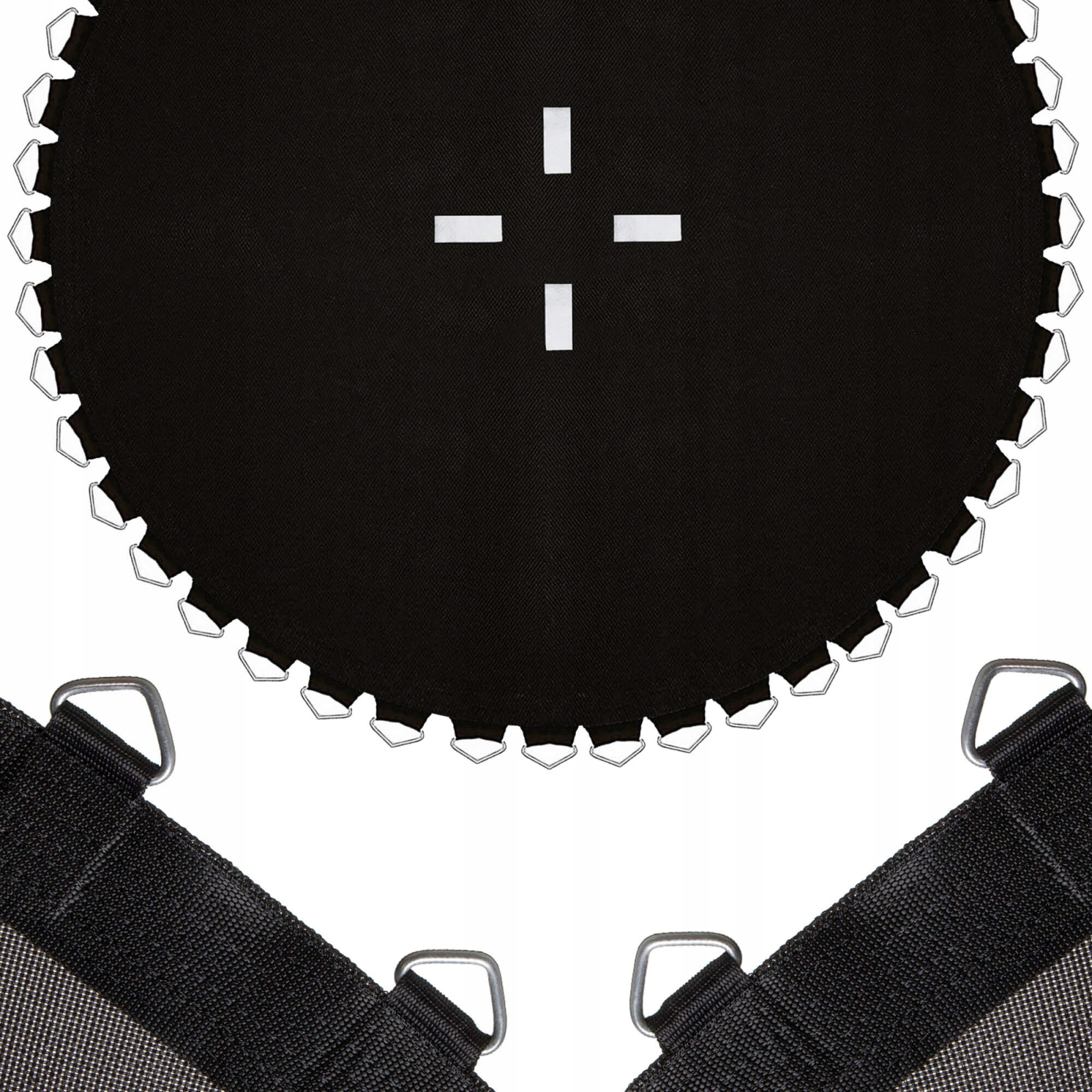 Suprafata de sarit pentru trambulina cu dimensiunea cadrului exterior de 396 cm 13FT a fost confectionat dintr-un material de polipropilena de inalta calitate, care garanteaza o siguranta ridicata. Se caracterizeaza prin rezistenta foarte mare la deteriorarea mecanica si schimbarea conditiilor meteorologice. Datorita dimensiunii sale universale, se potriveste trambulinelor multor marci care au diametru de 396 cm si 84 arcuri. Numarul de atasamente (carlige) este de 84 Material puternic din polipropilena­ Rezistent la UV Capsat de 8 ori Tesatura densa Carlige metalice solide (incluse)
