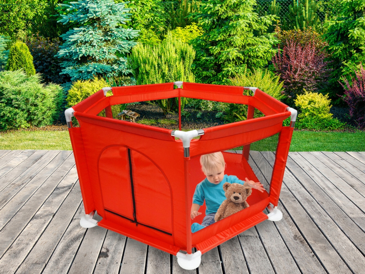 Tarc loc de joaca pentru copii sau bebe, material textil, rosu, 130x60cm