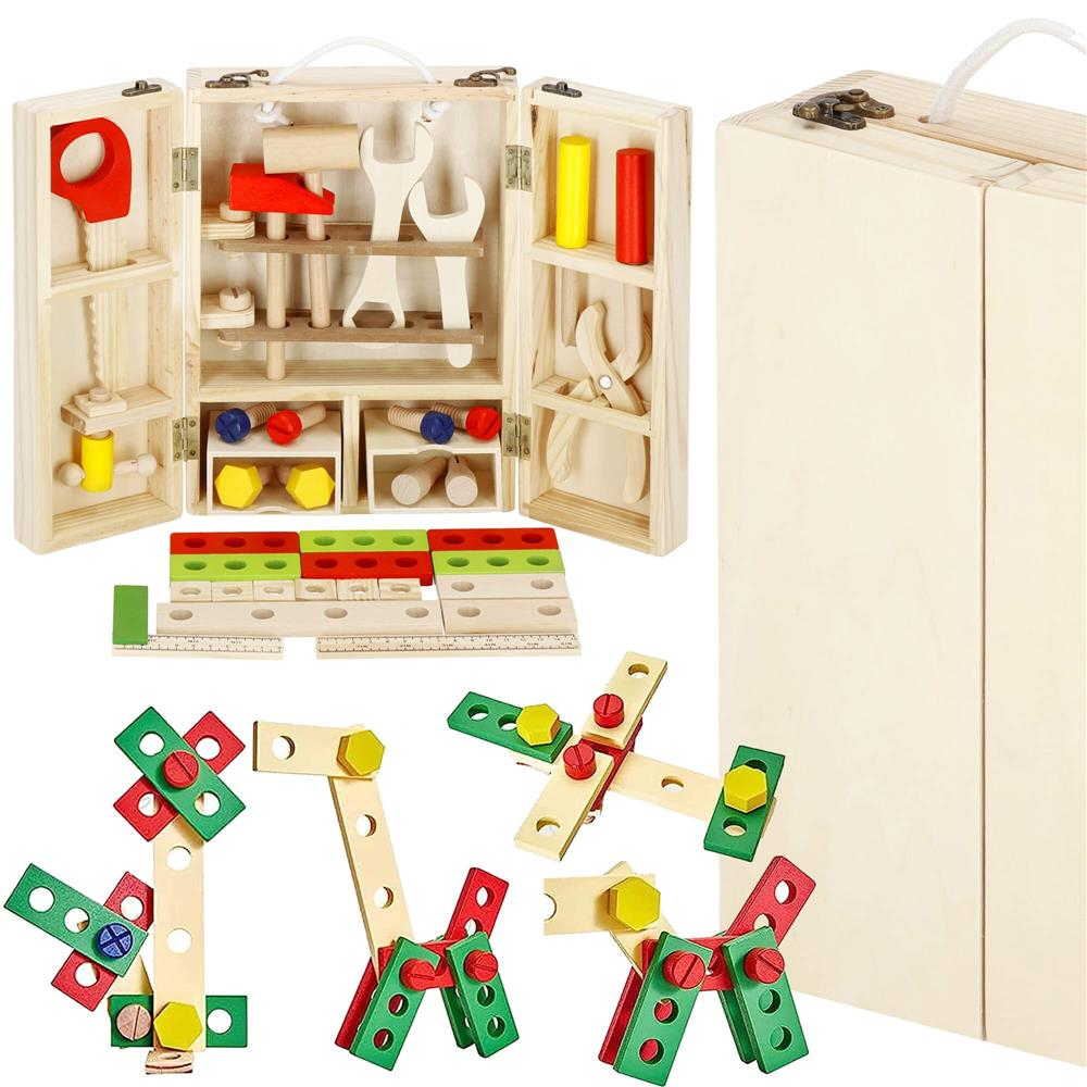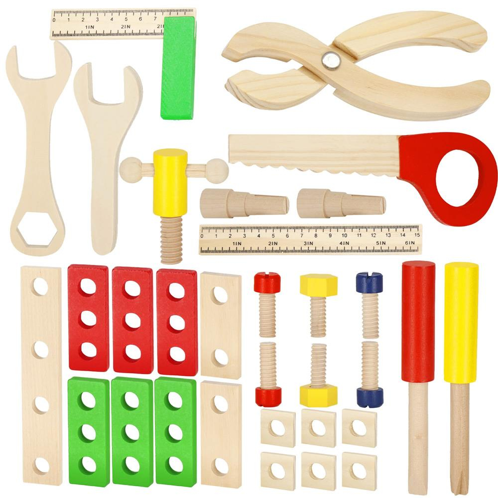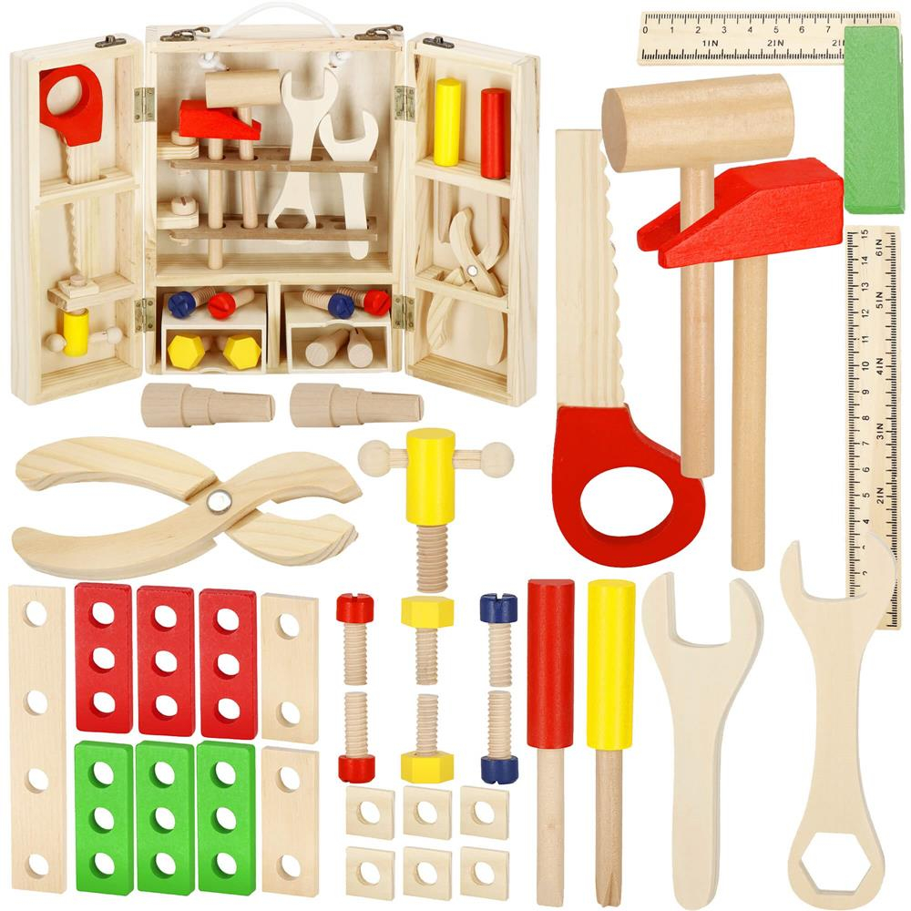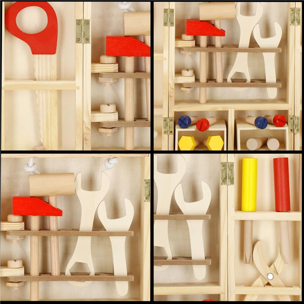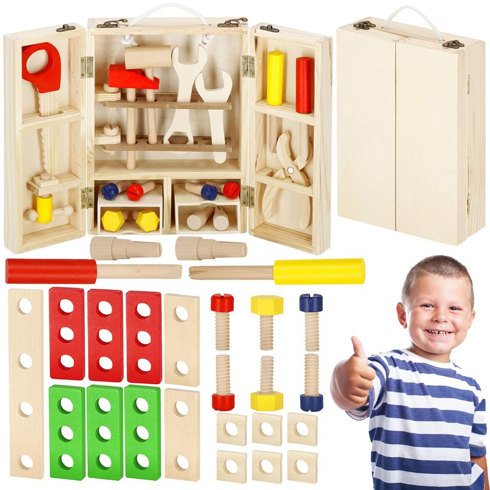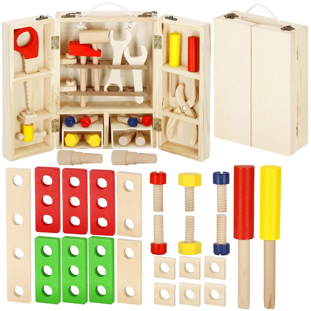 Trusa de unelte pliabila pentru copii din lemn natural , 26 unelte si accesorii
