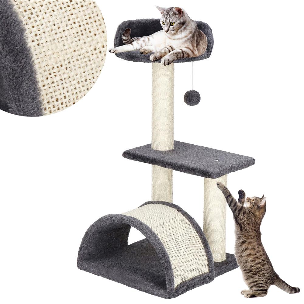 Ansamblu de joaca pentru pisici, cu loc pentru zgariat, ascuns, culcus, minge, 67cm, crem
